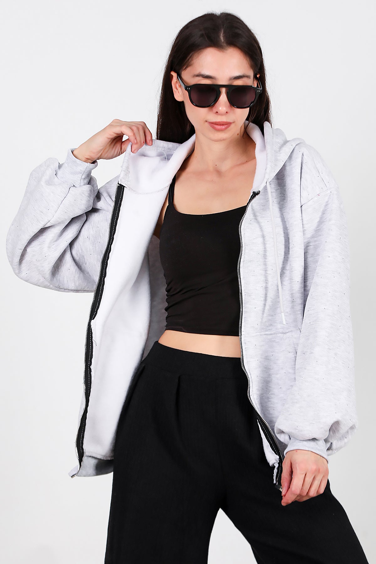Kadın Leoparlı Kapşonlu Peluş Ceket Krem