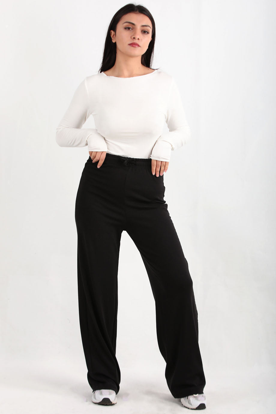 Curvebelt Büyük Beden Arka Bel Lastikli Pileli Pantolon Siyah