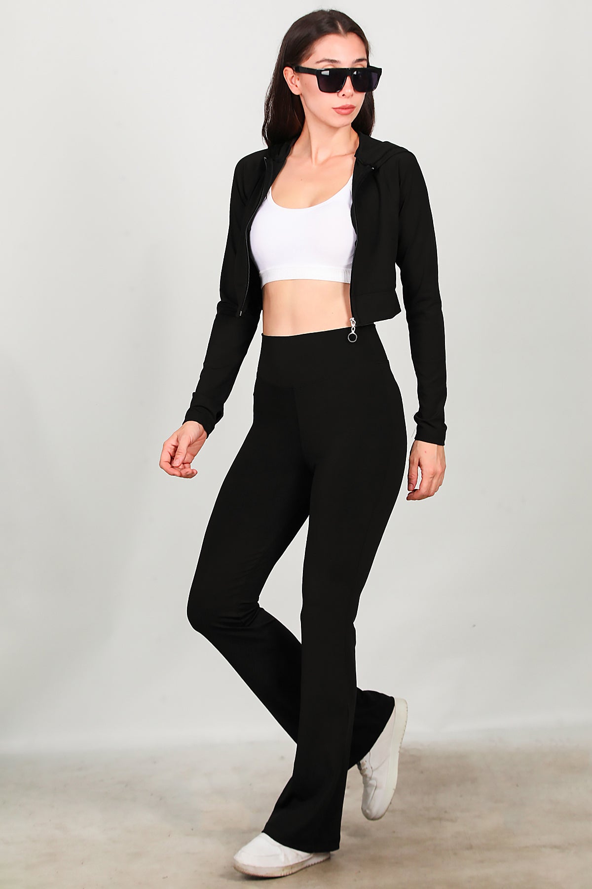 Kadın Fermuarlı Kapşonlu Sweat Siyah