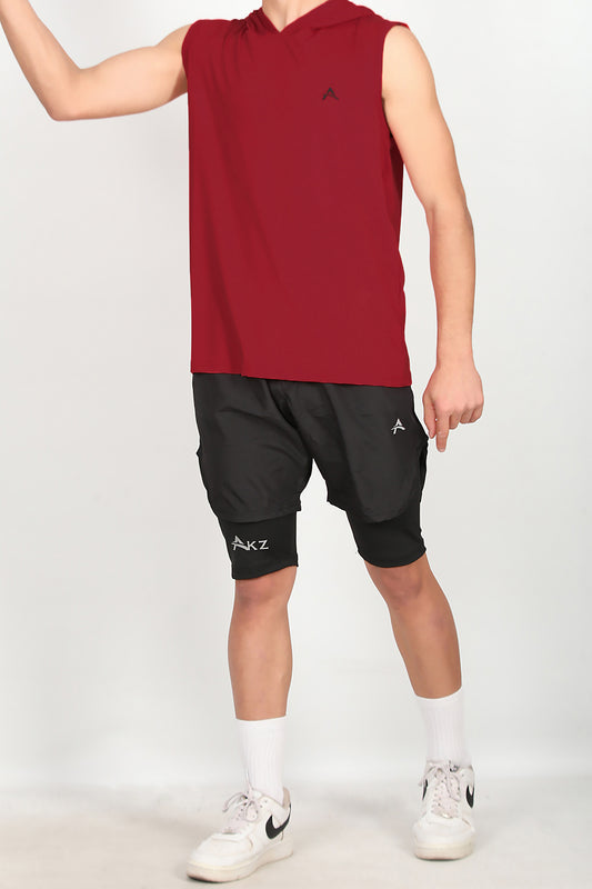 Erkek Kapşonlu Kolsuz T-shirt Kırmızı