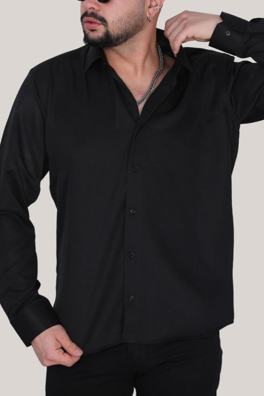 Erkek Patlı Gömlek Yaka T-shırt Siyah