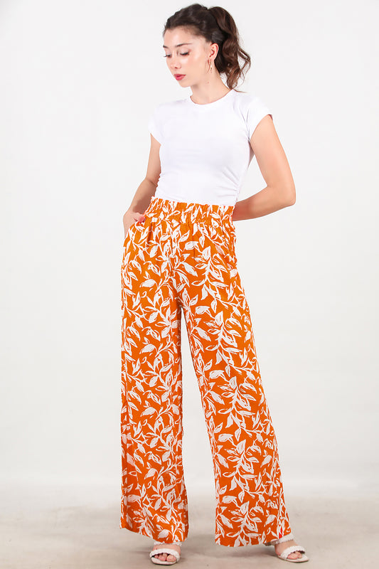 Kadın Desenli Bol Paça Pantolon Turuncu