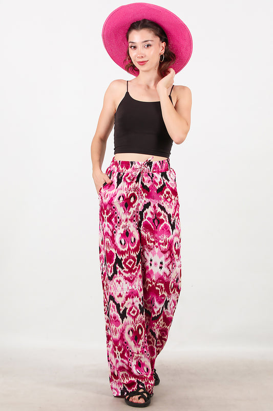 Kadın Desenli Bol Paça Pantolon Fuşya