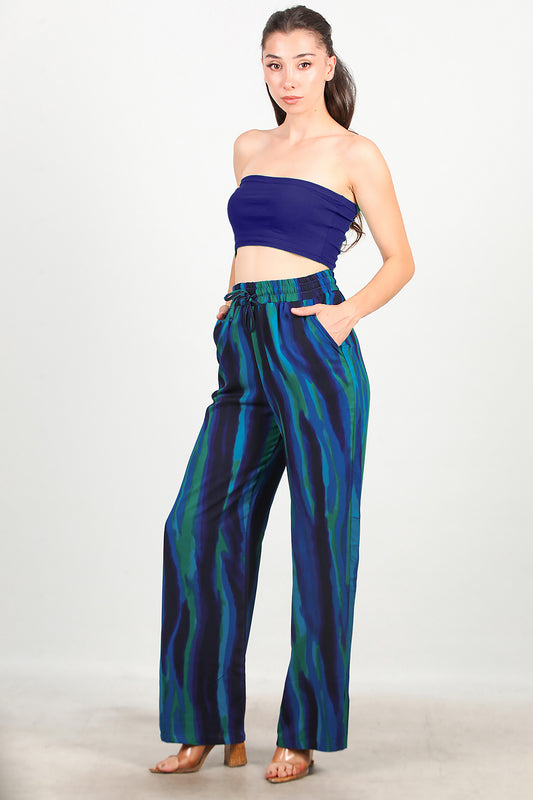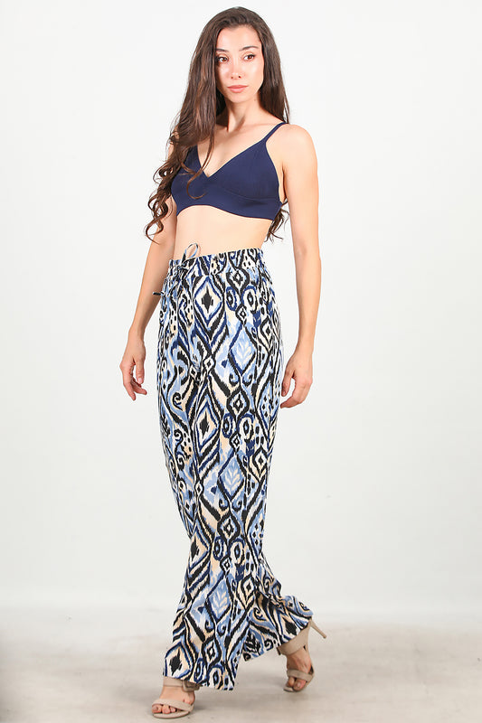 Kadın Desenli Bol Paça Pantolon Lacivert