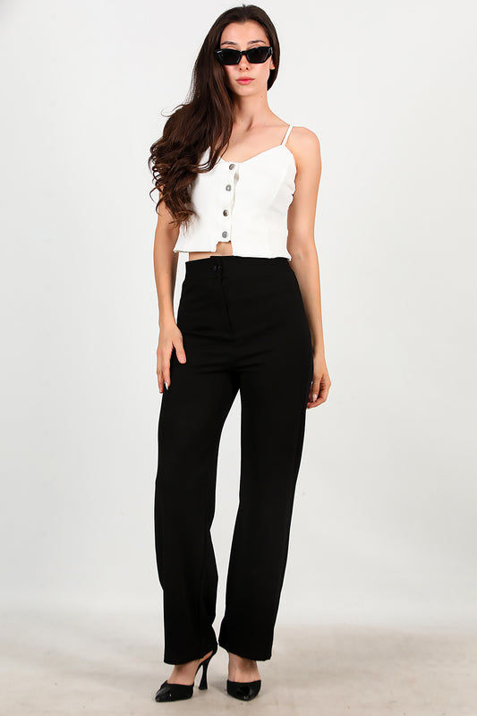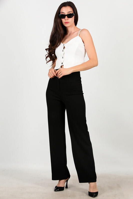 Kadın Palazzo Krep Kumaş Pantolon Siyah
