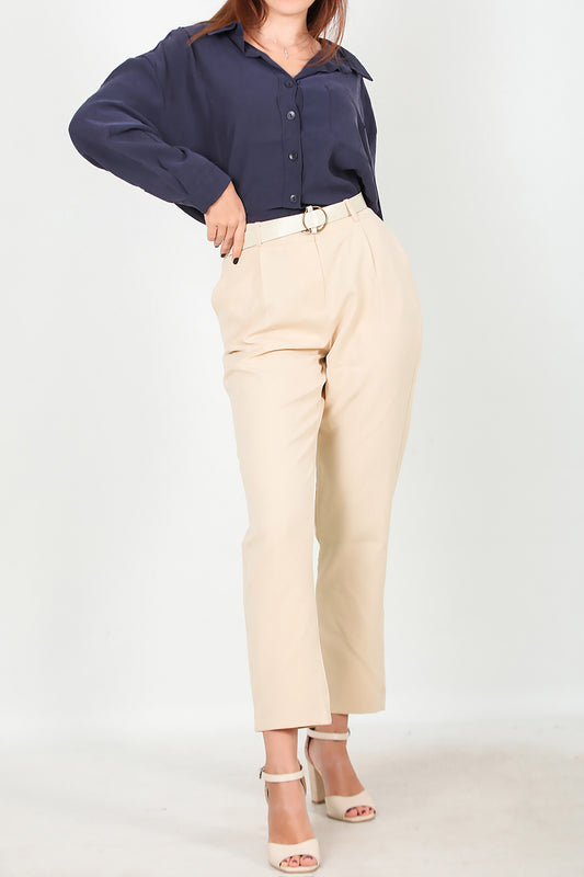 Kadın Kemerli Brit Detay Çimalı Bol Paça Pantolon