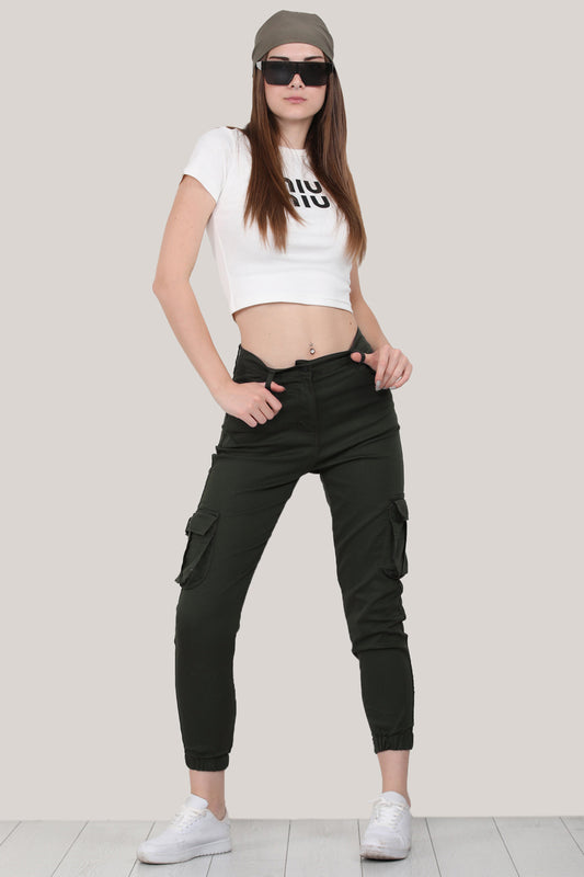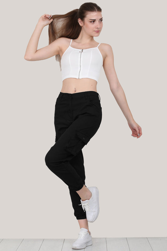 Kadın Kargo Cepli Geniş Pantolon Siyah