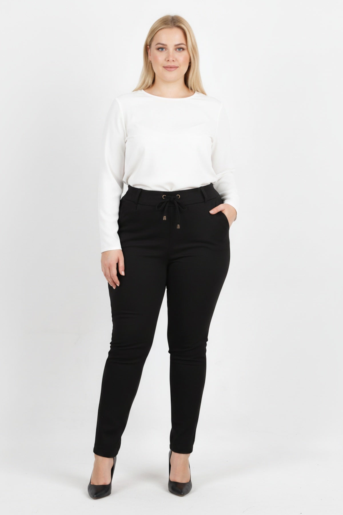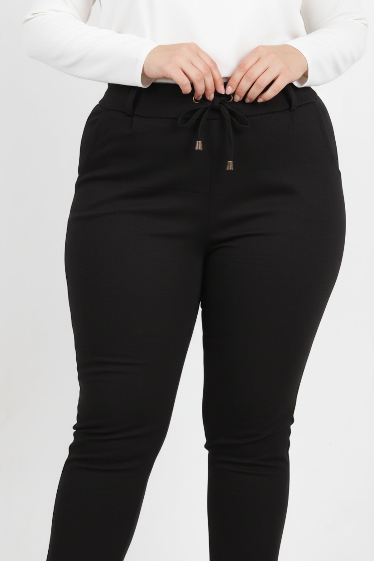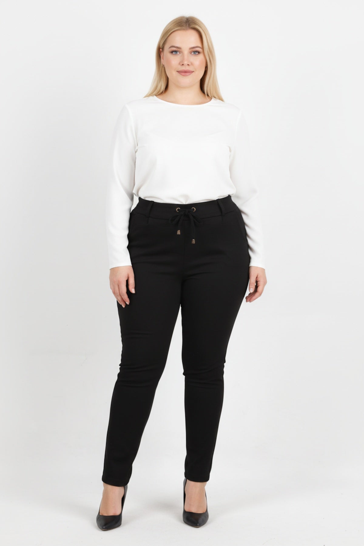 Büyük Beden Arka Bel Lastikli Pantolon Siyah