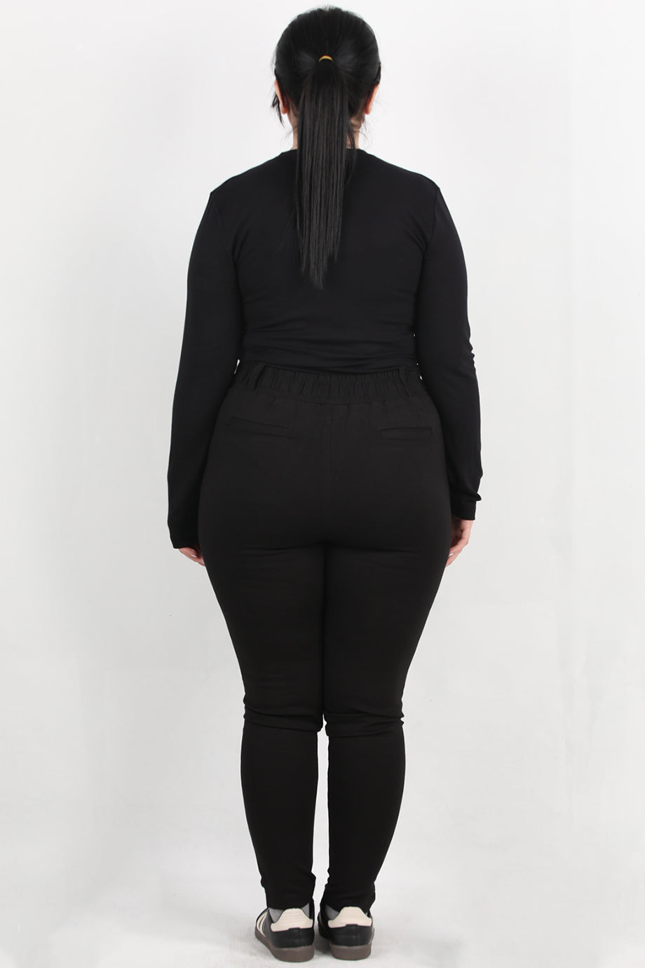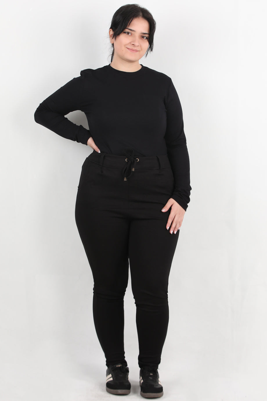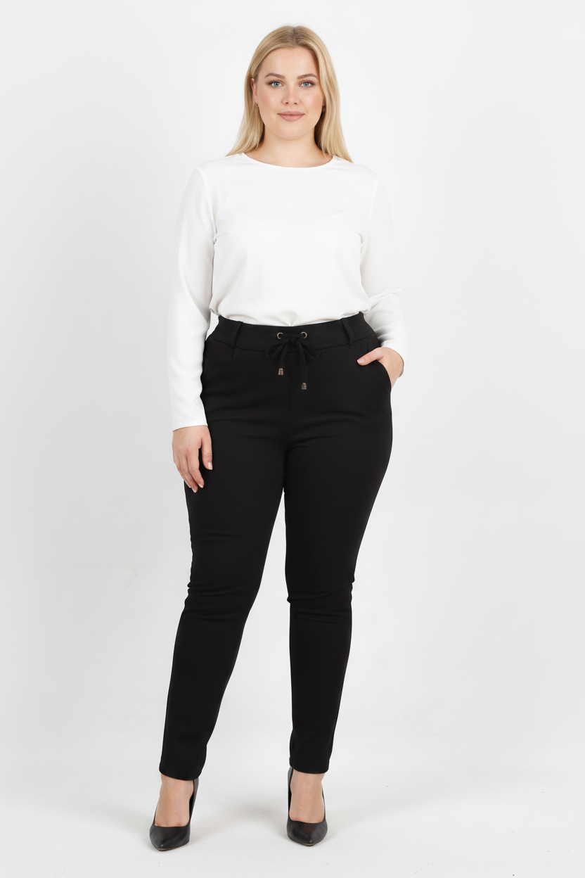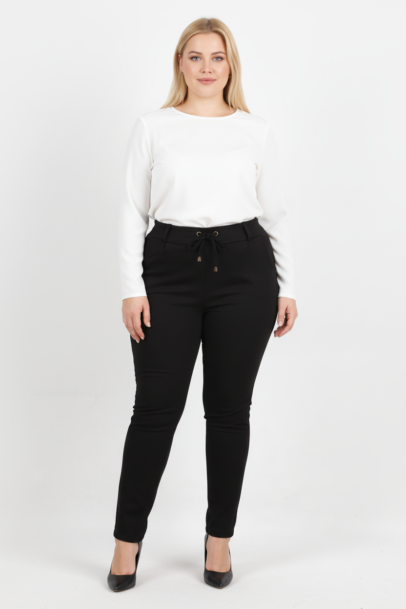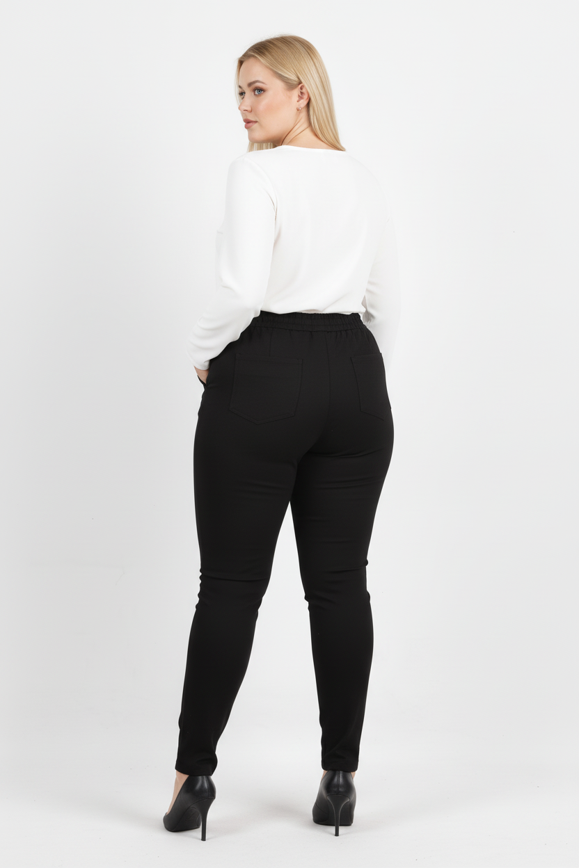 Comforta Büyük Beden Arka Bel Lastikli Pantolon Siyah