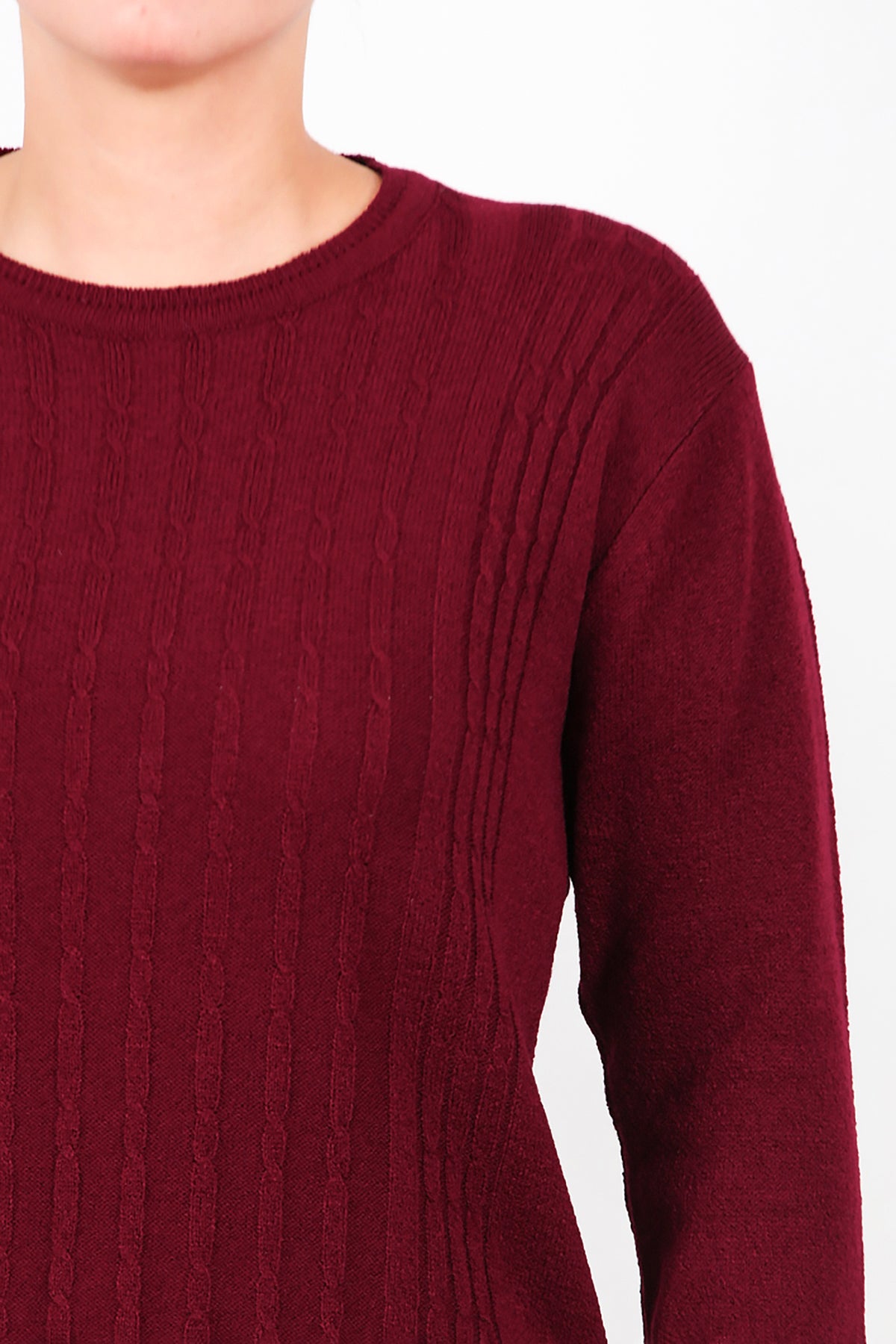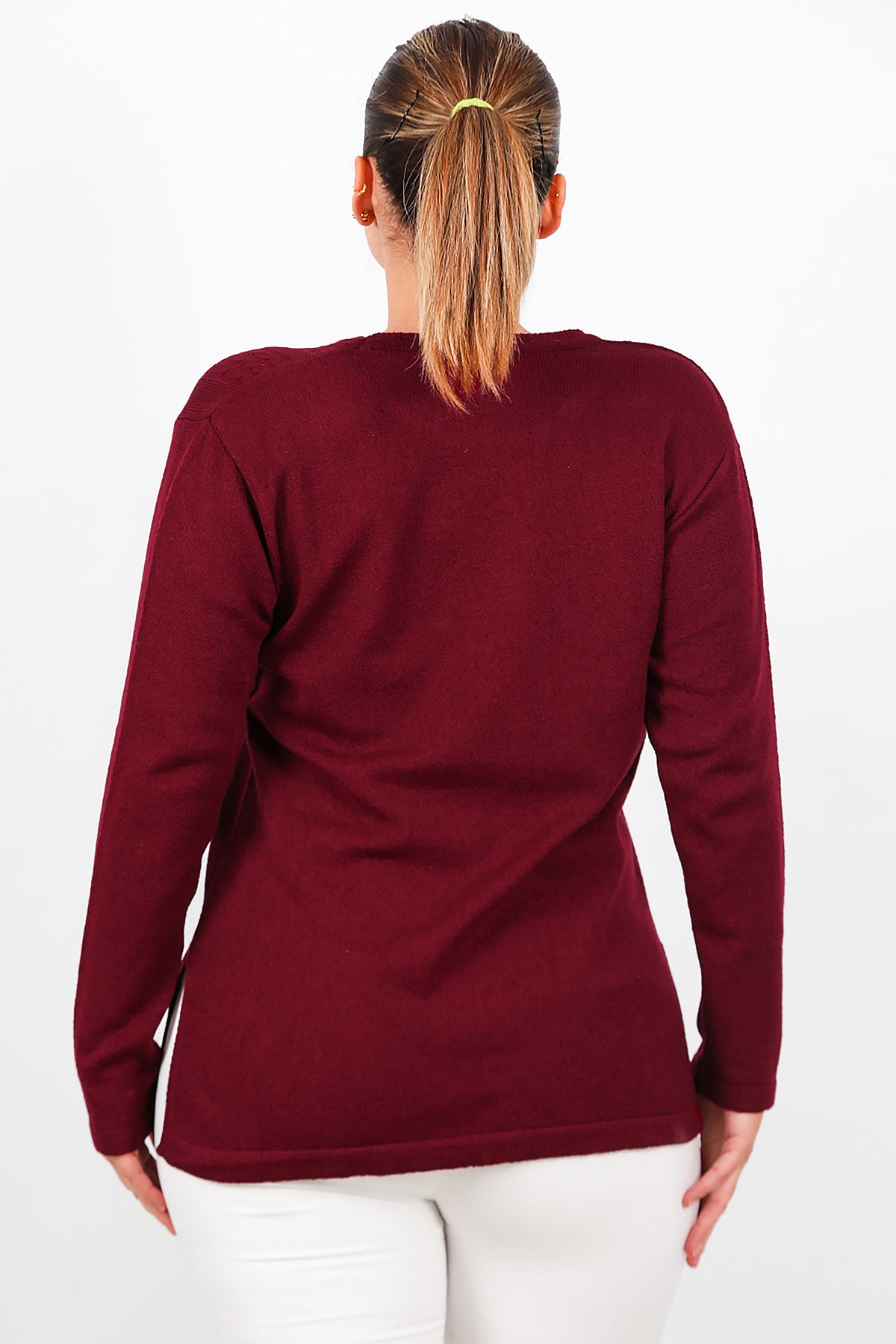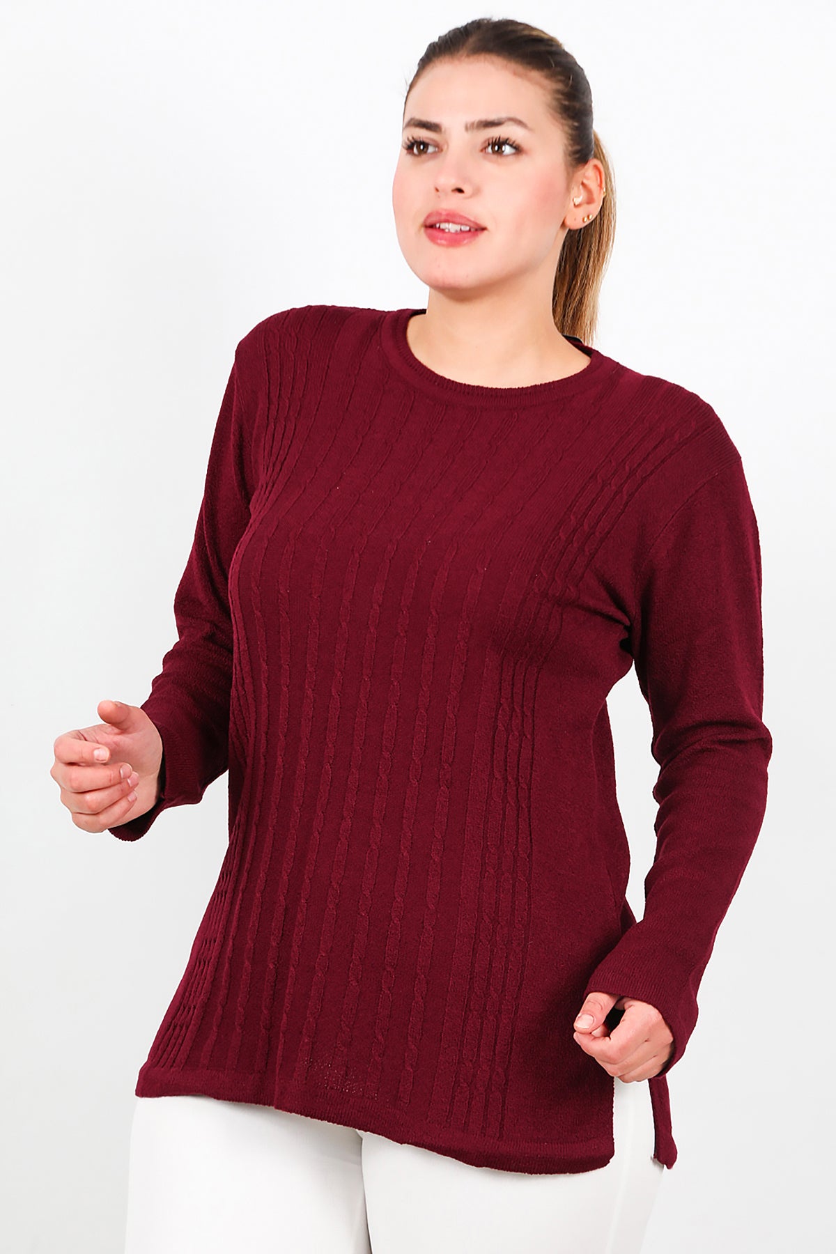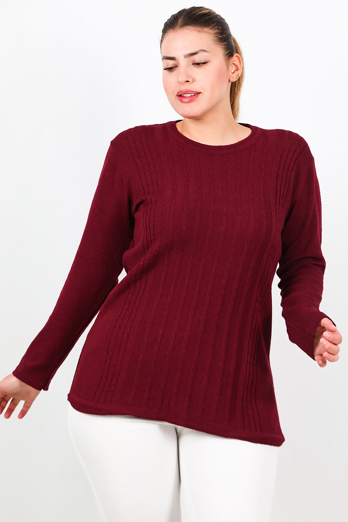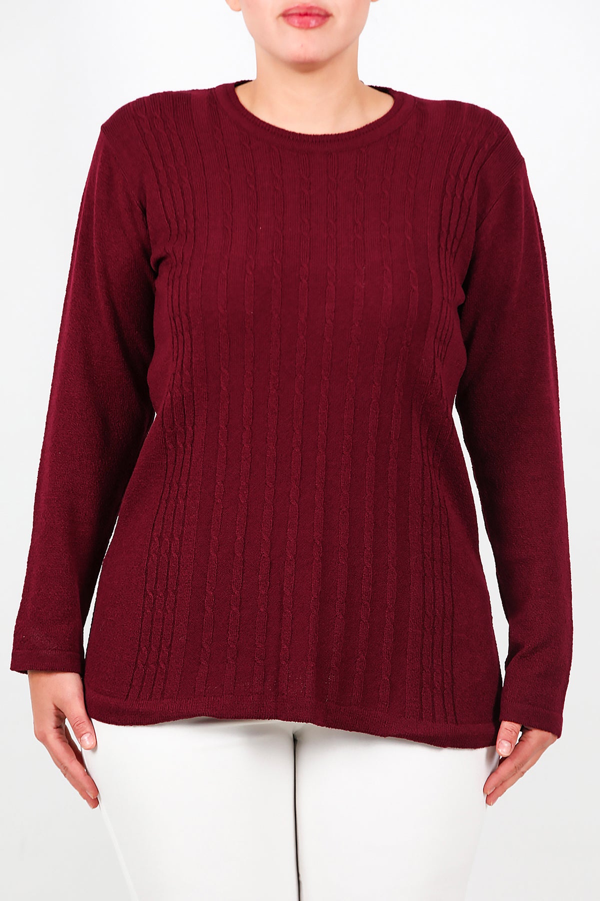 Büyük Beden Bisiklet Yaka Triko Bluz Bordo