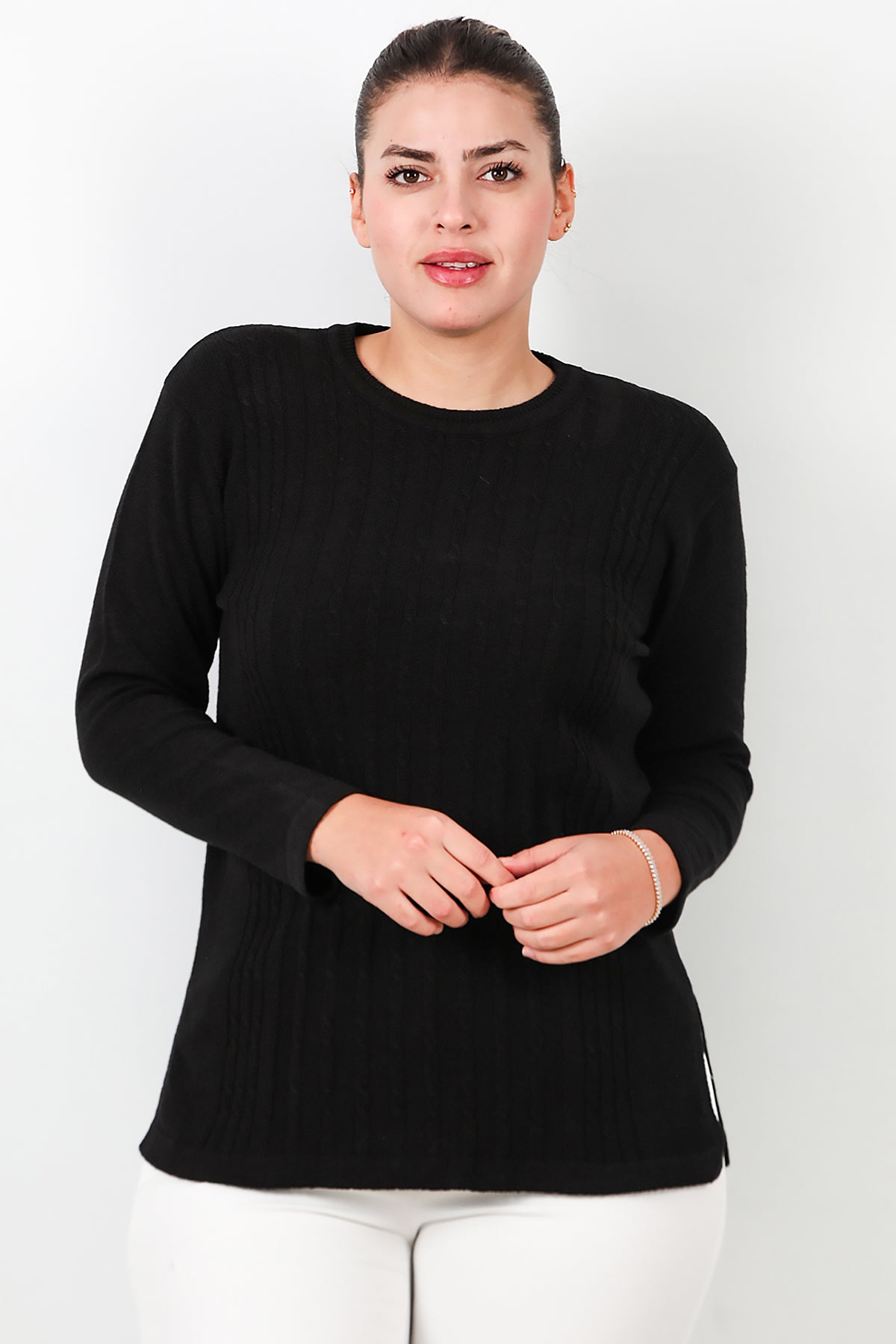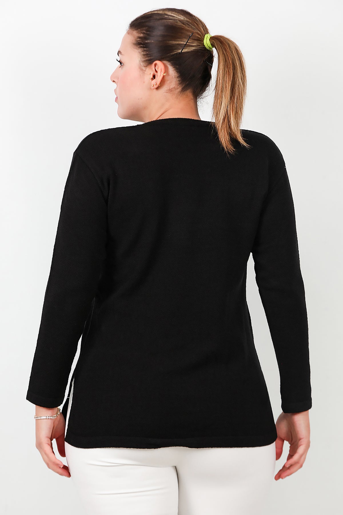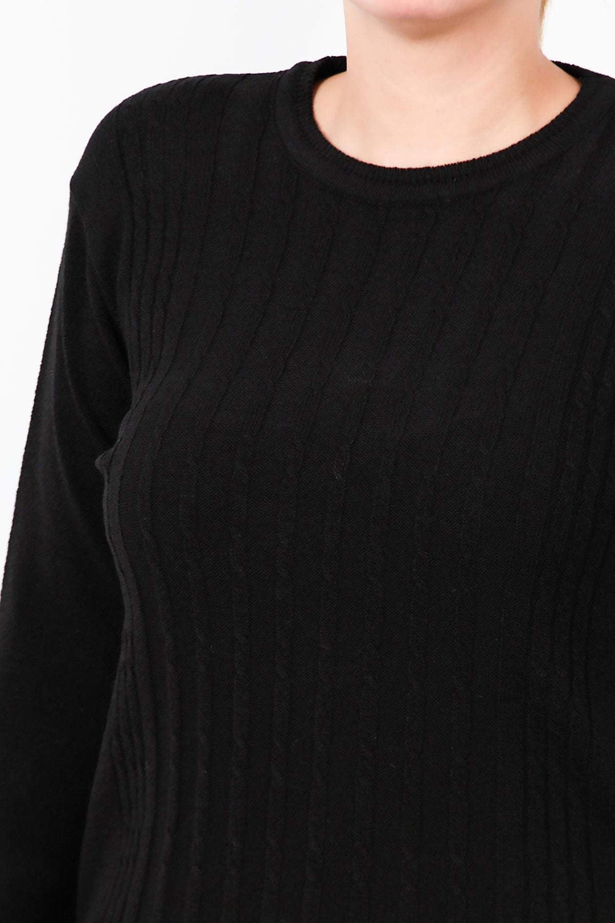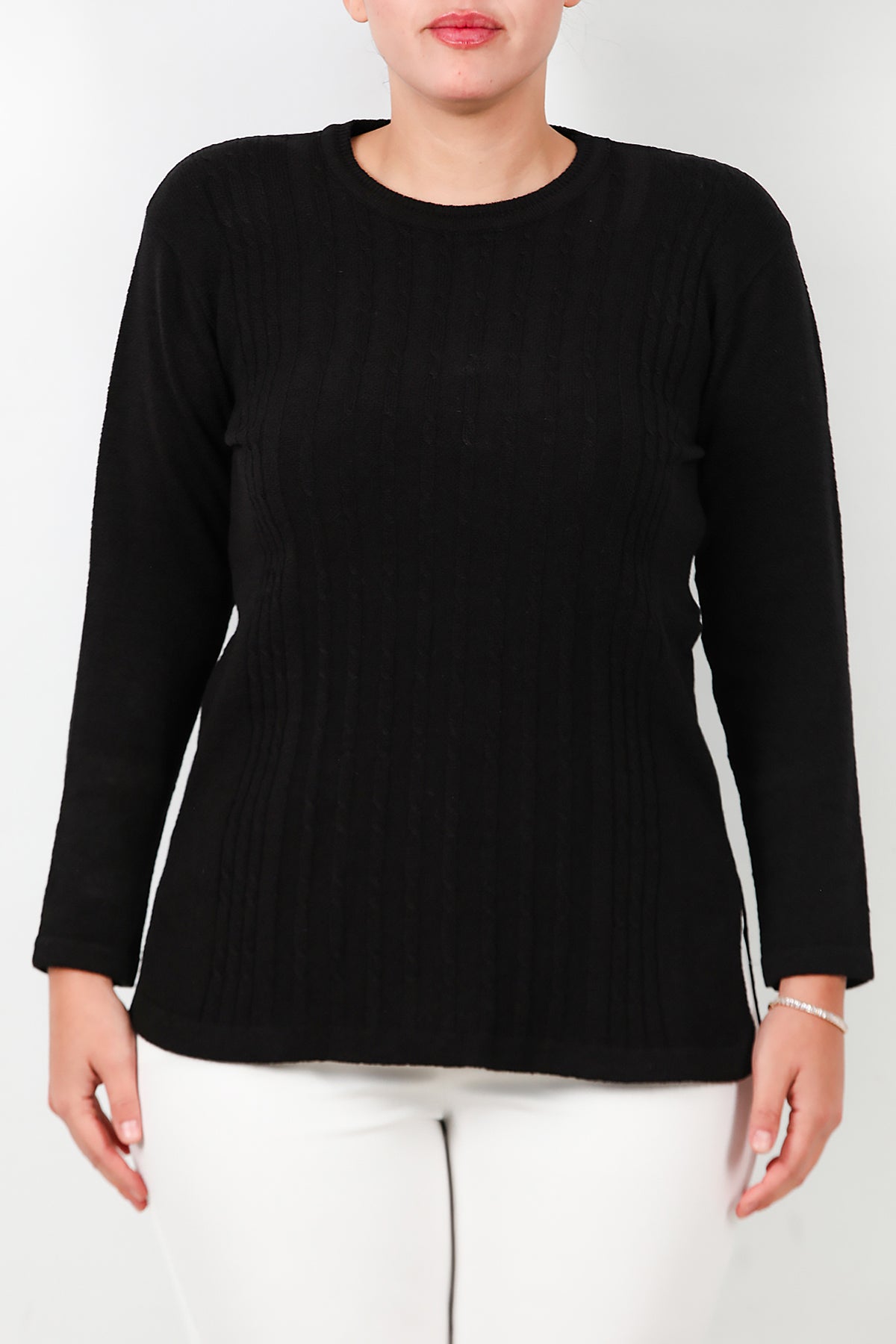 Büyük Beden Bisiklet Yaka Triko Bluz Siyah