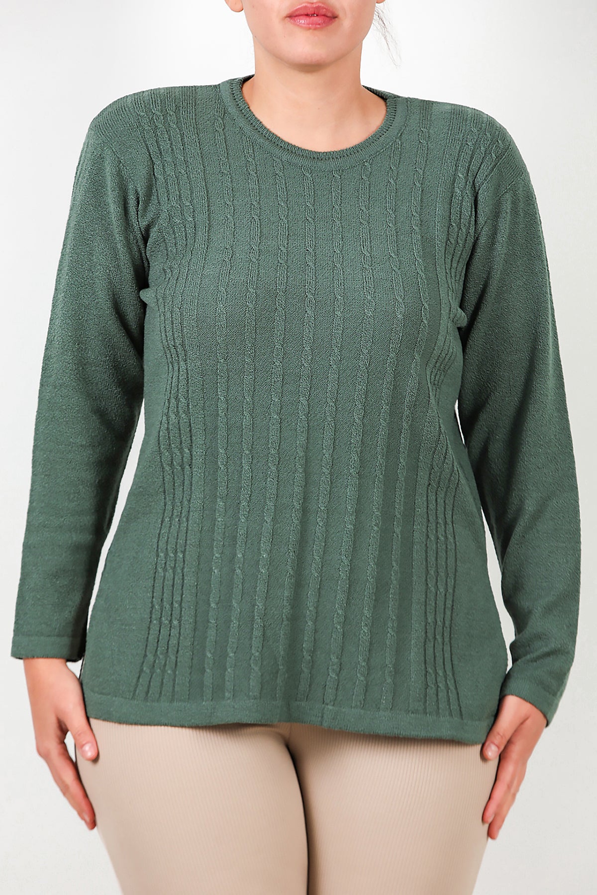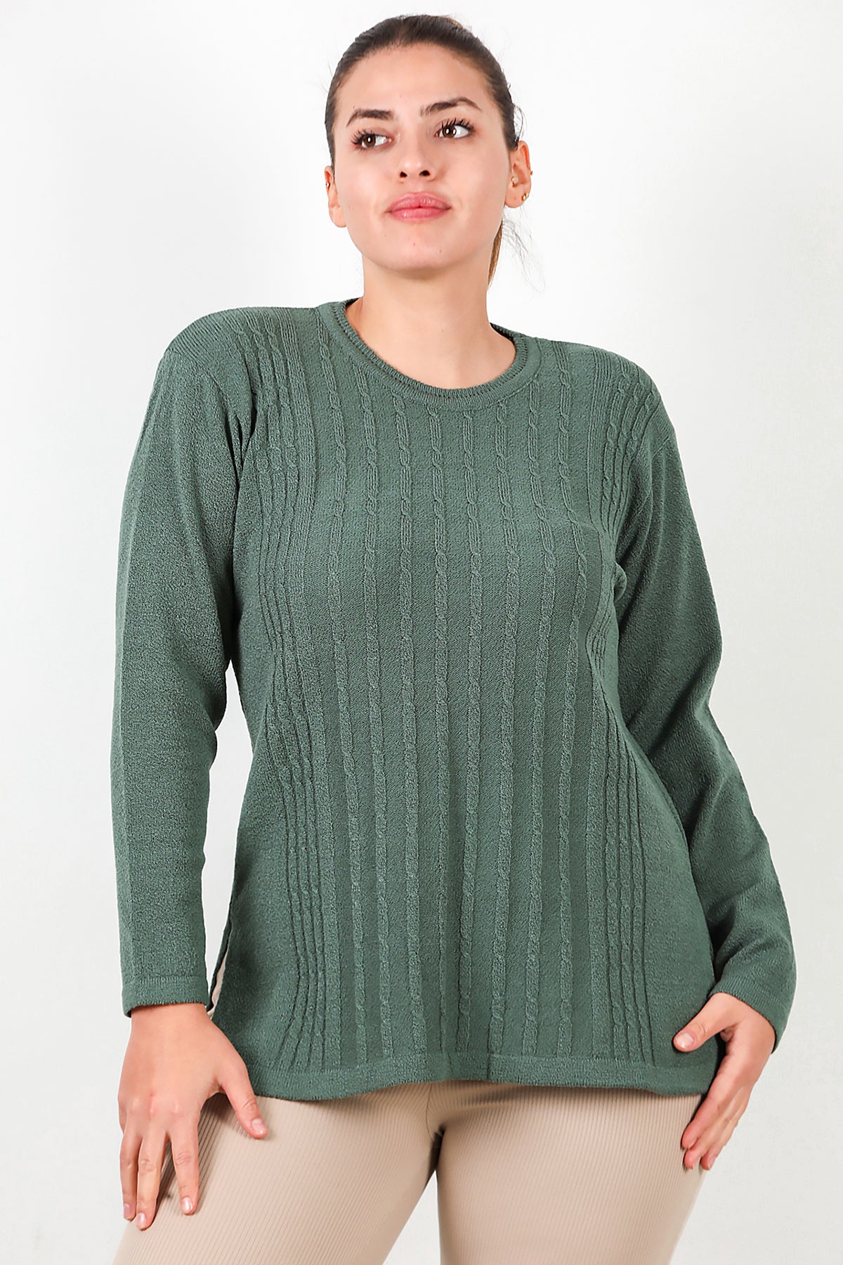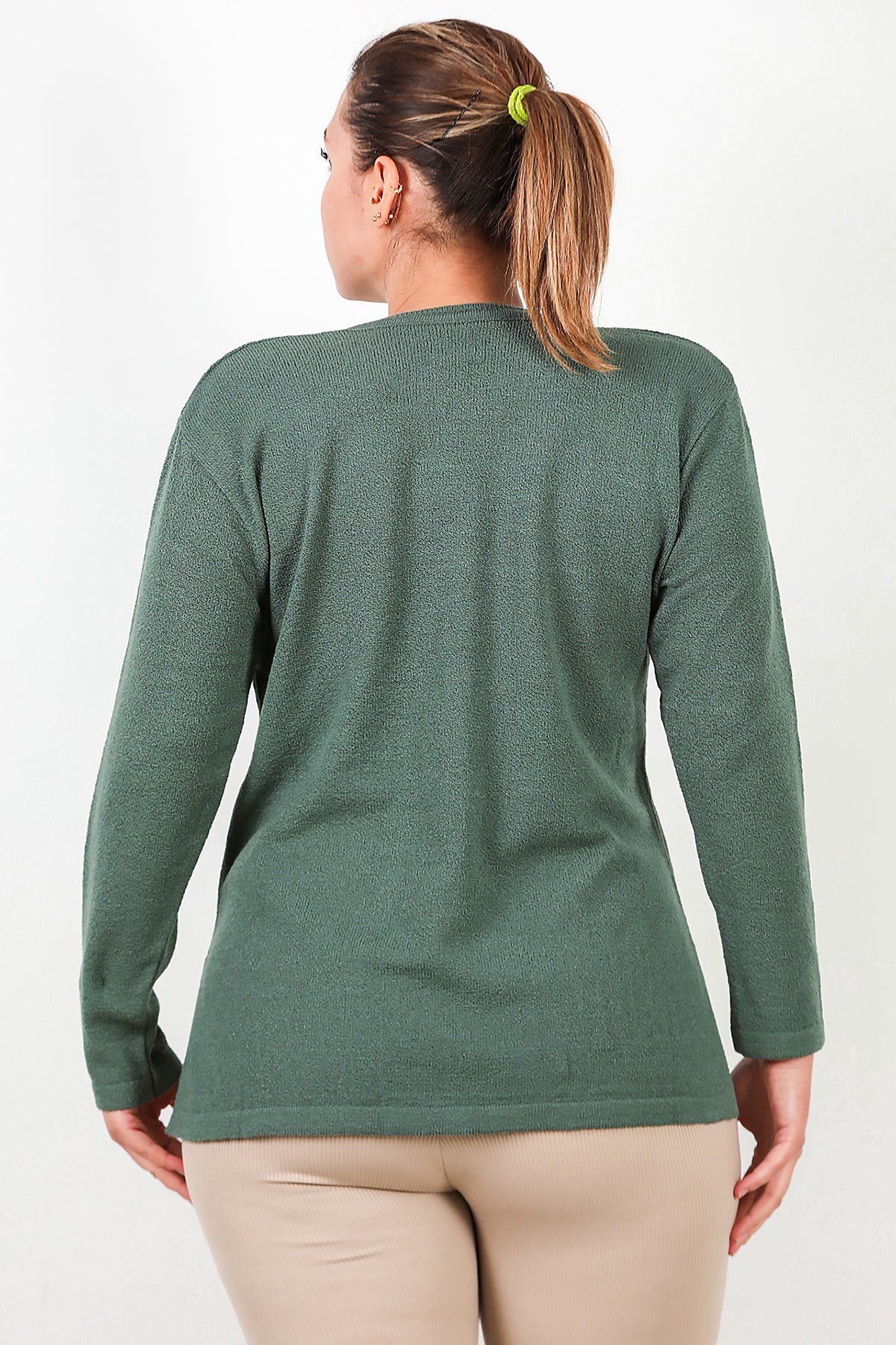 Büyük Beden Bisiklet Yaka Triko Bluz Yeşil