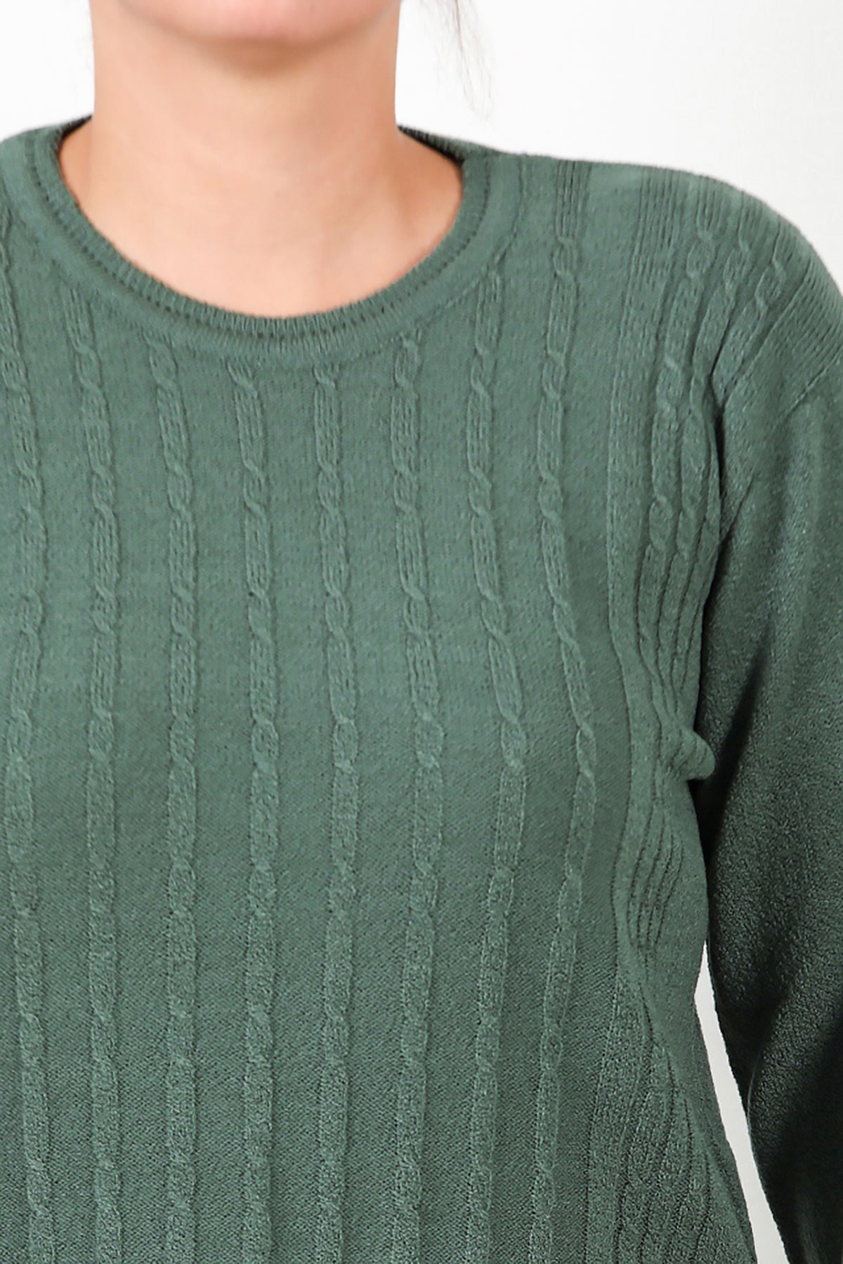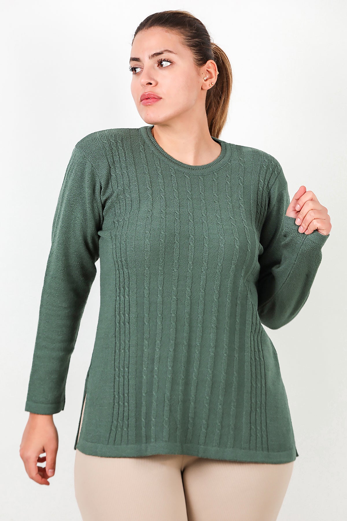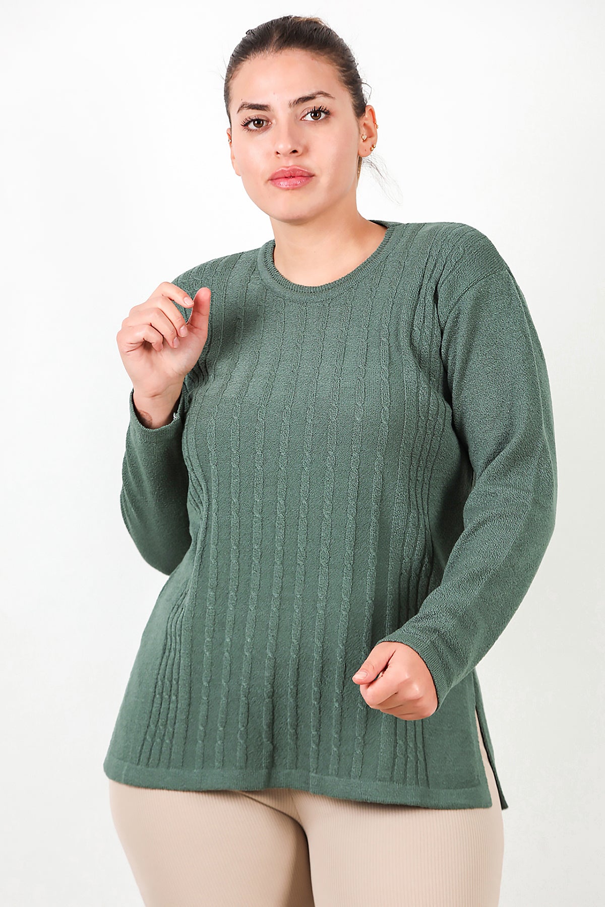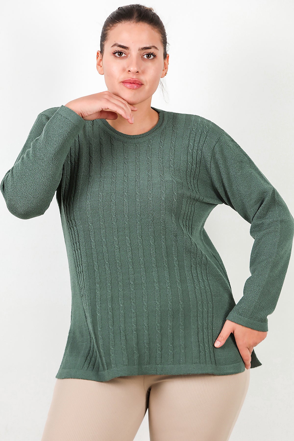 Büyük Beden Bisiklet Yaka Triko Bluz Yeşil