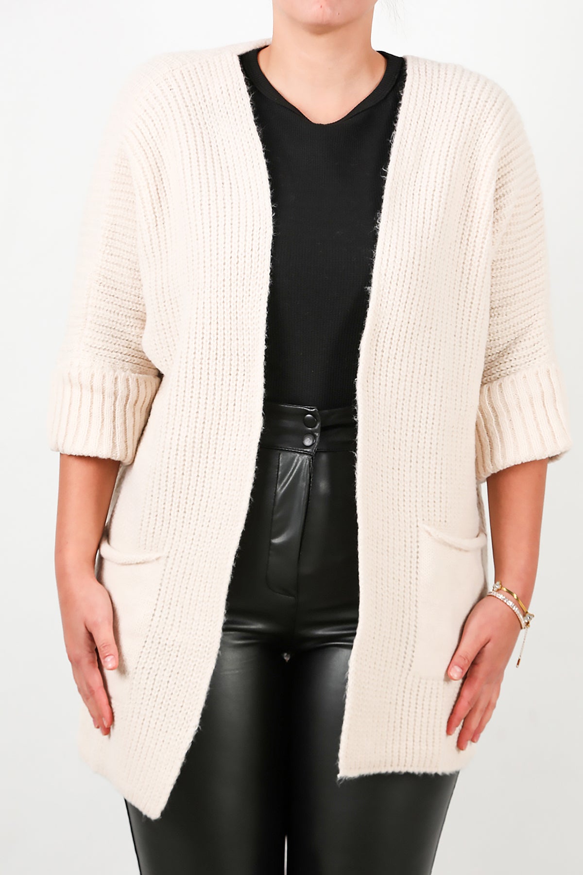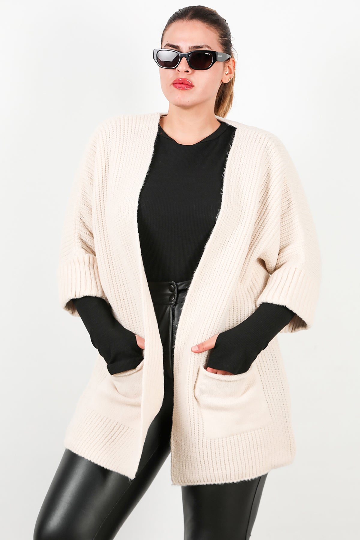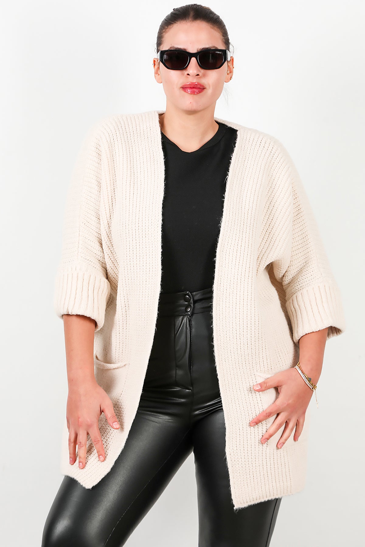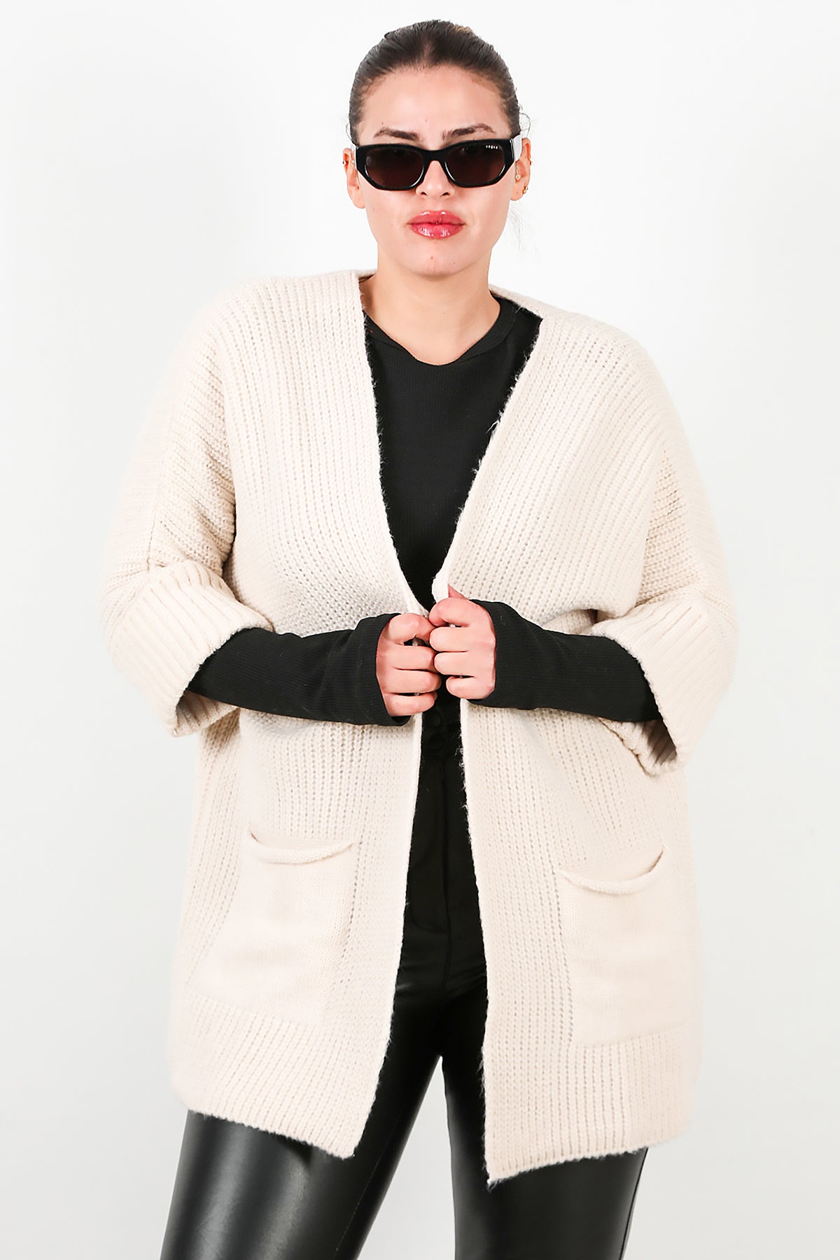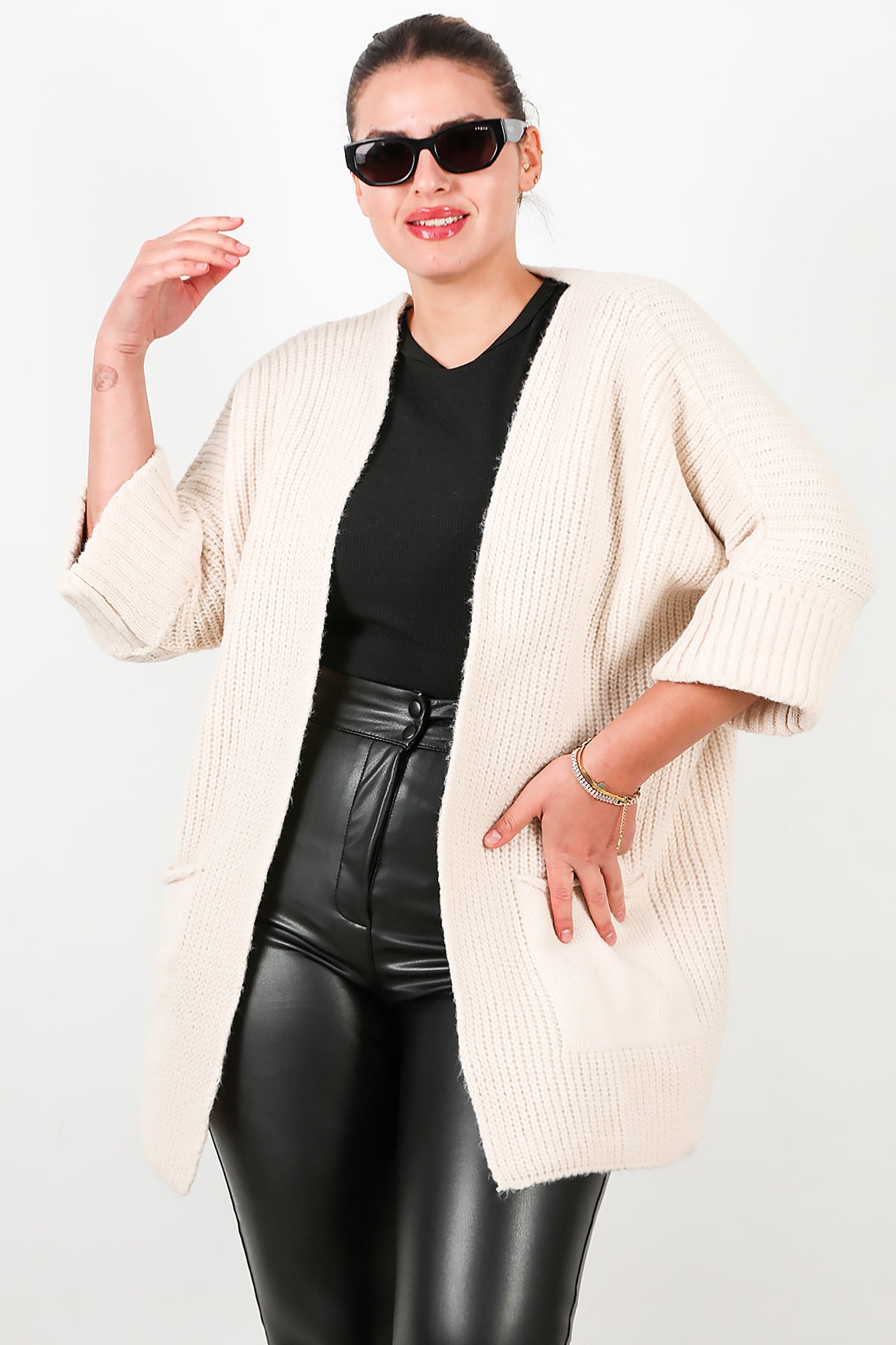 Büyük Beden Cepli Hırka Taş