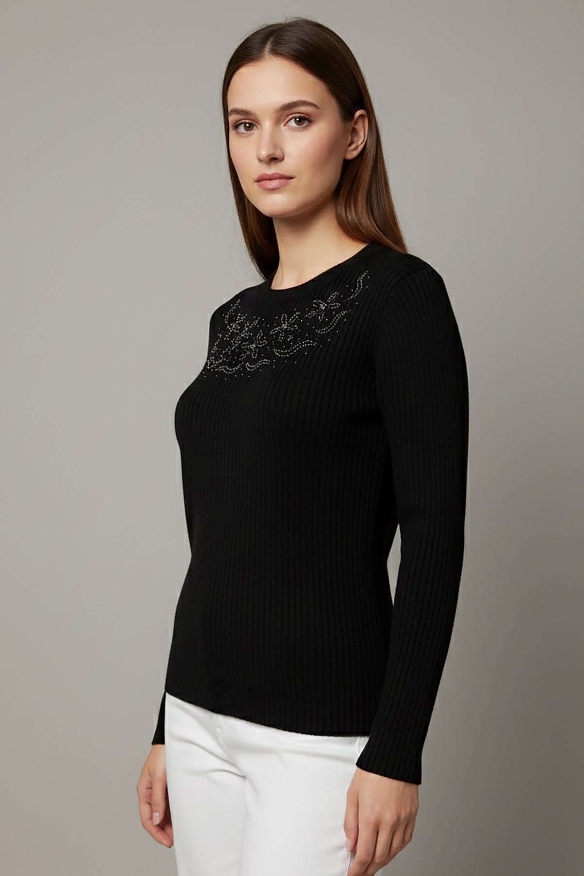 Büyük Beden Çiçek Taş İşlemeli Bluz Siyah