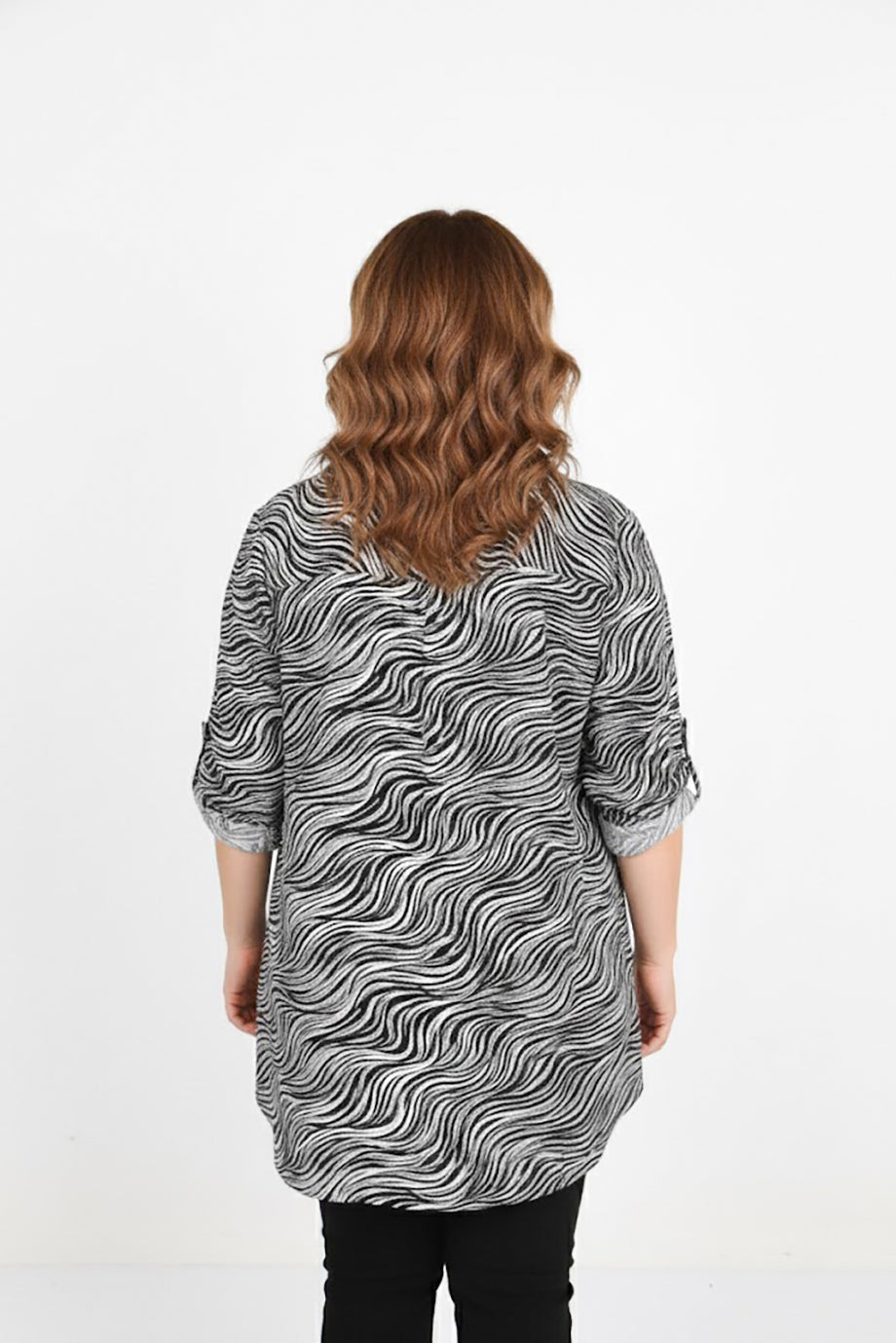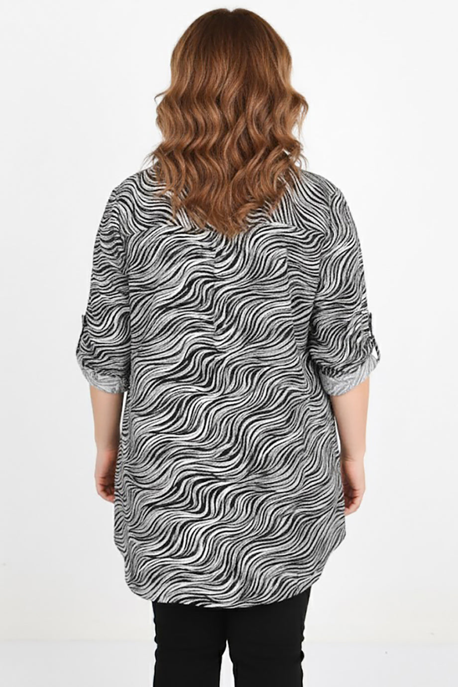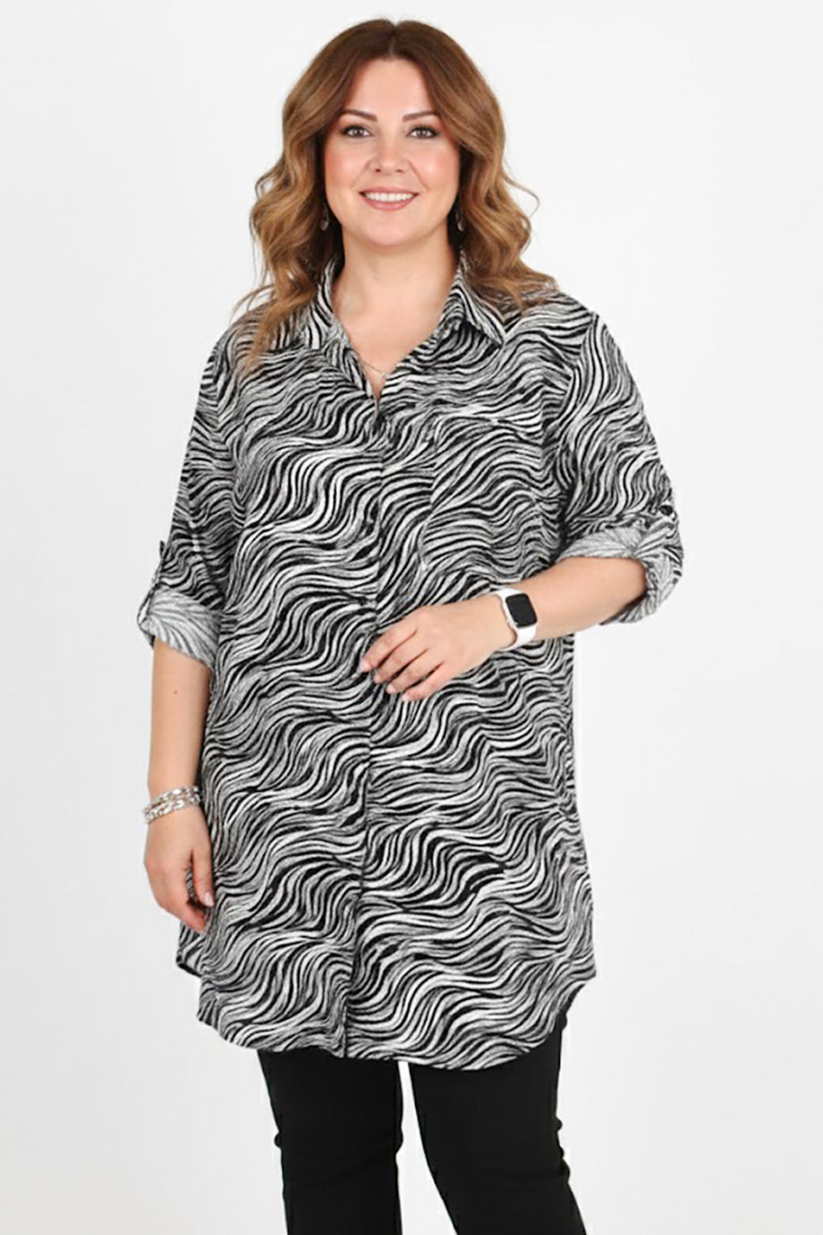 Modline Büyük Beden Desenli Kol Katlamalı Gömlek Ekru