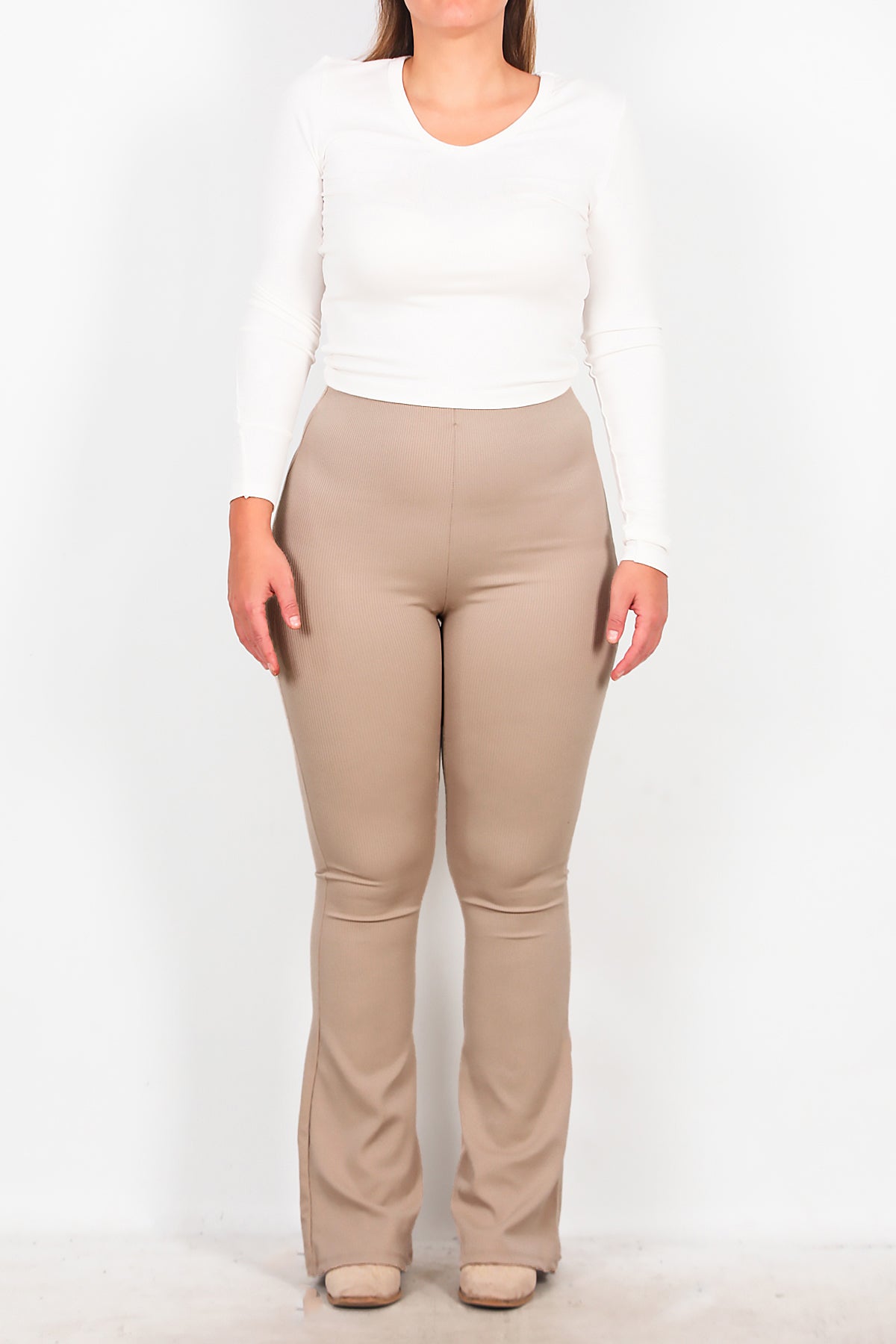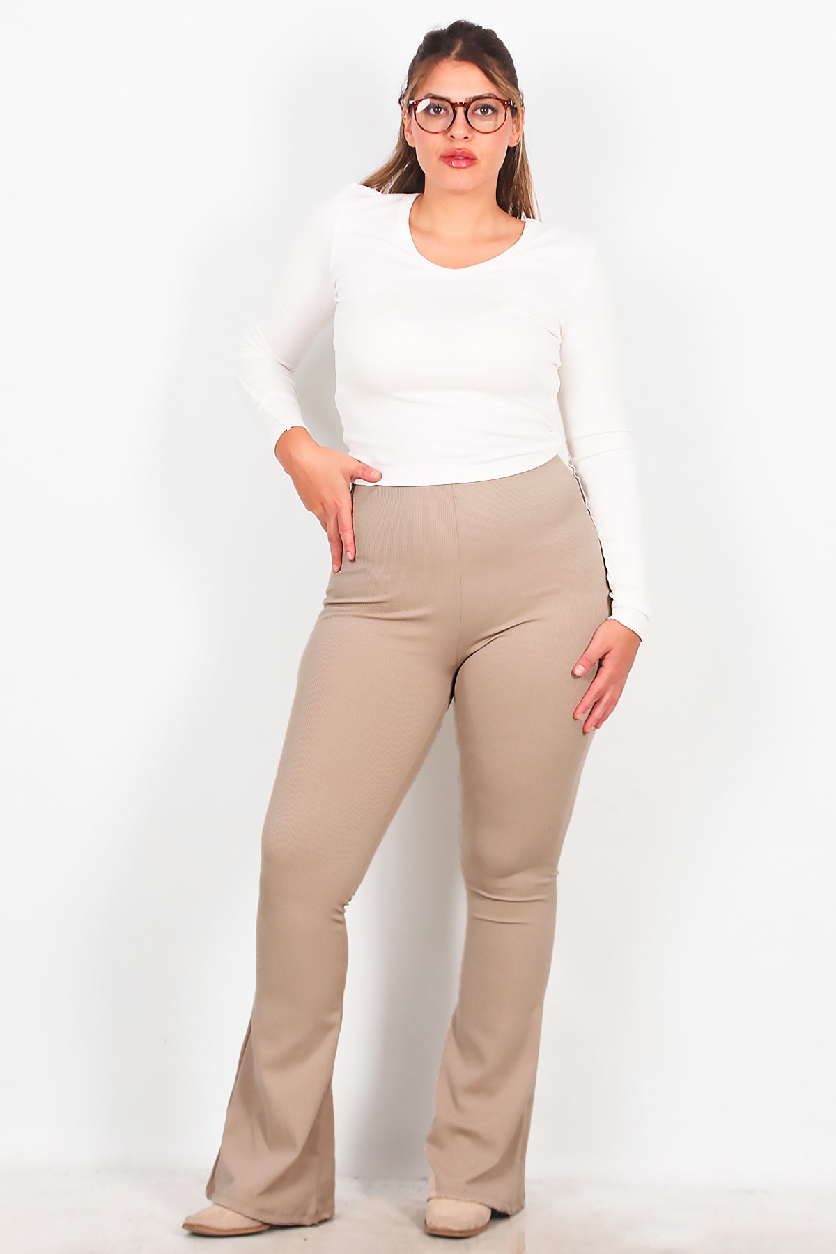 Büyük Beden Fitilli İspanyol Paça Tayt Bej