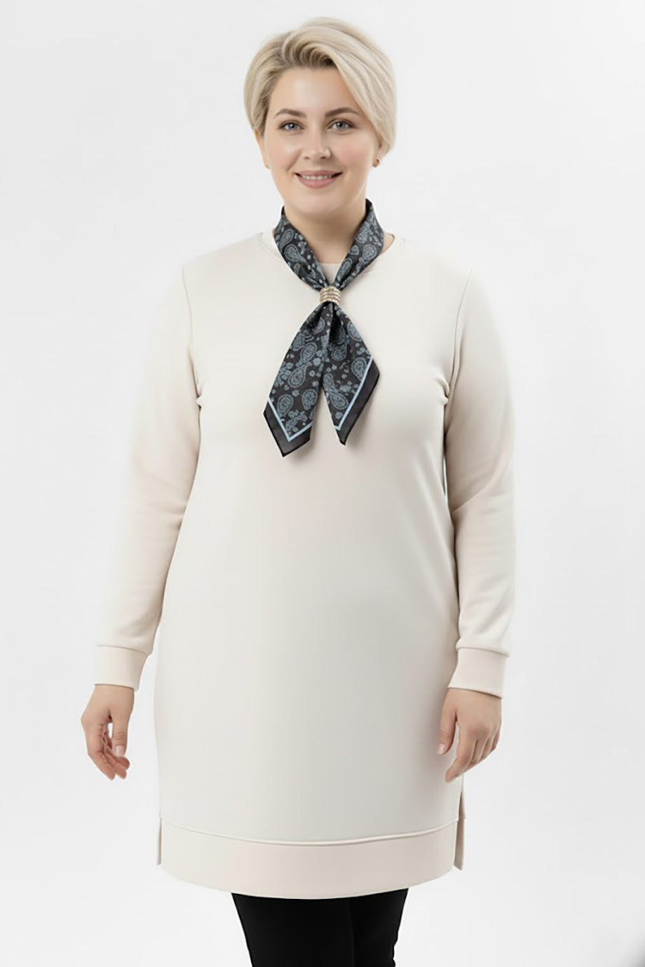 Scarfmode Büyük Beden Fularlı Tunik Ekru
