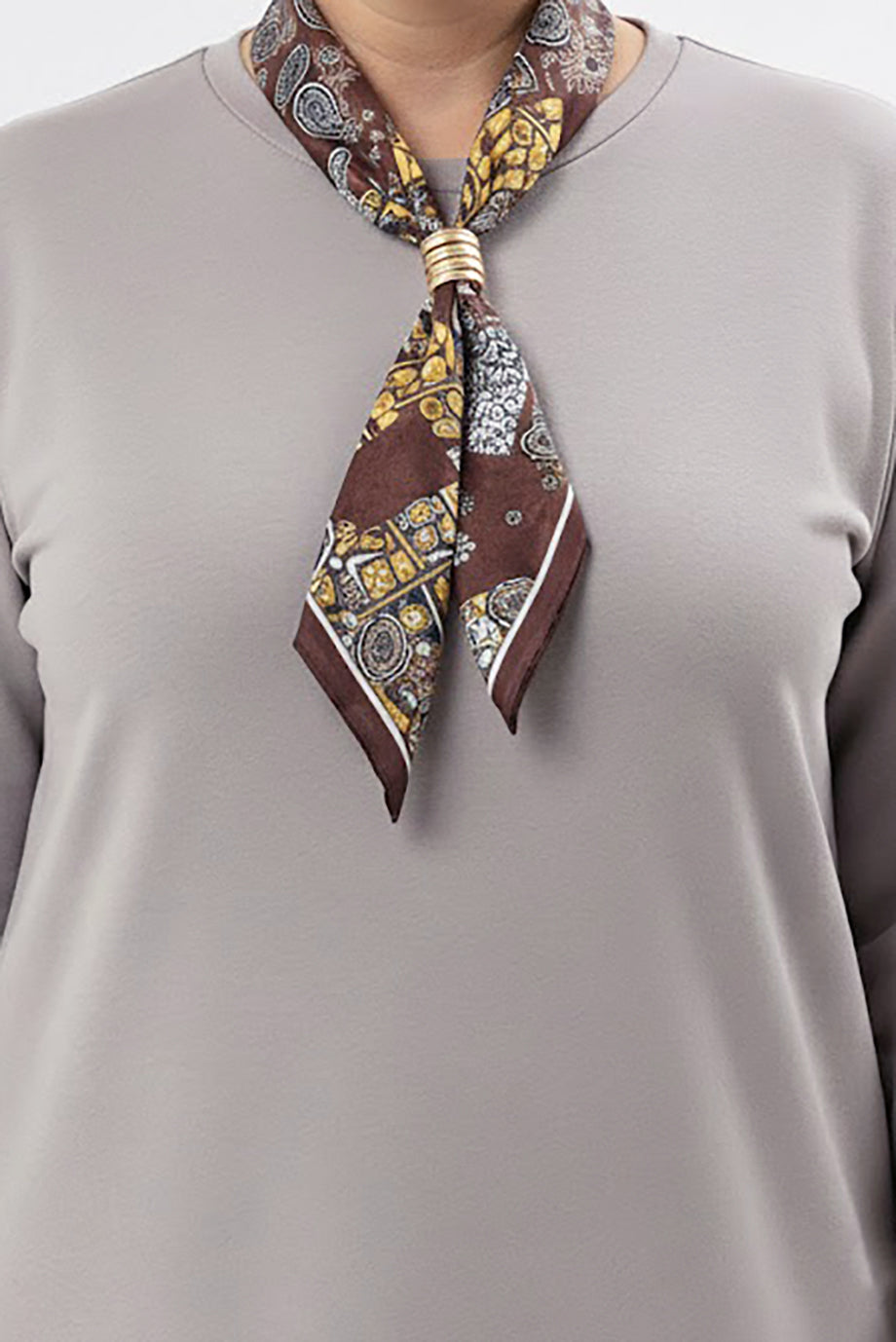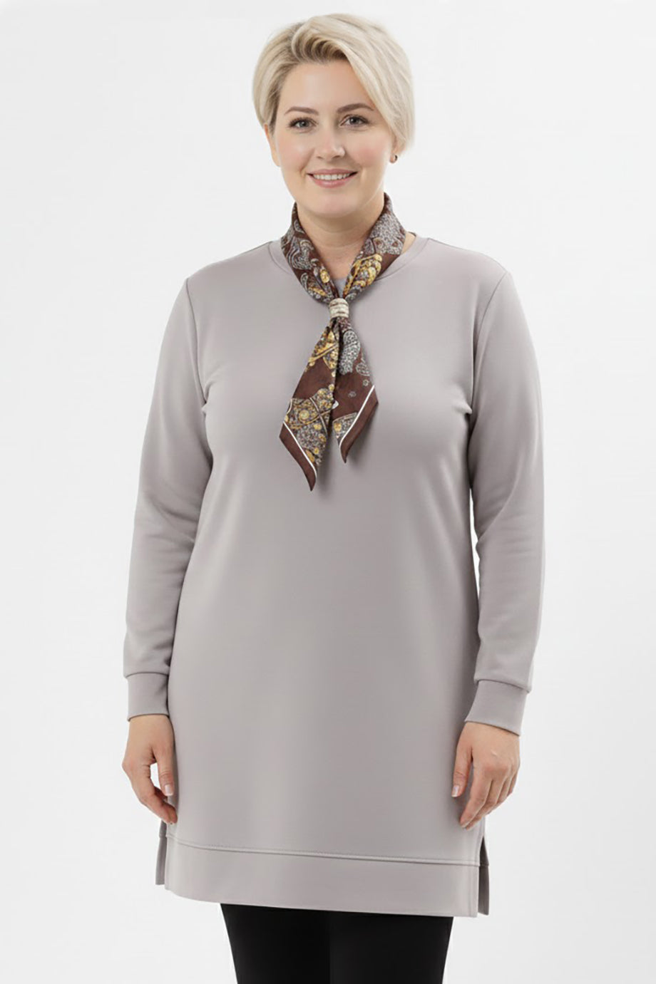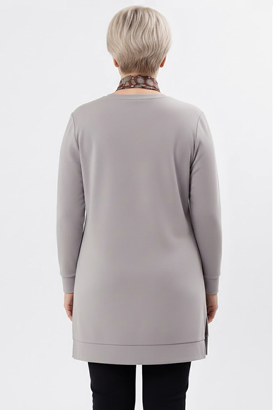 Scarfmode Büyük Beden Fularlı Tunik Gri