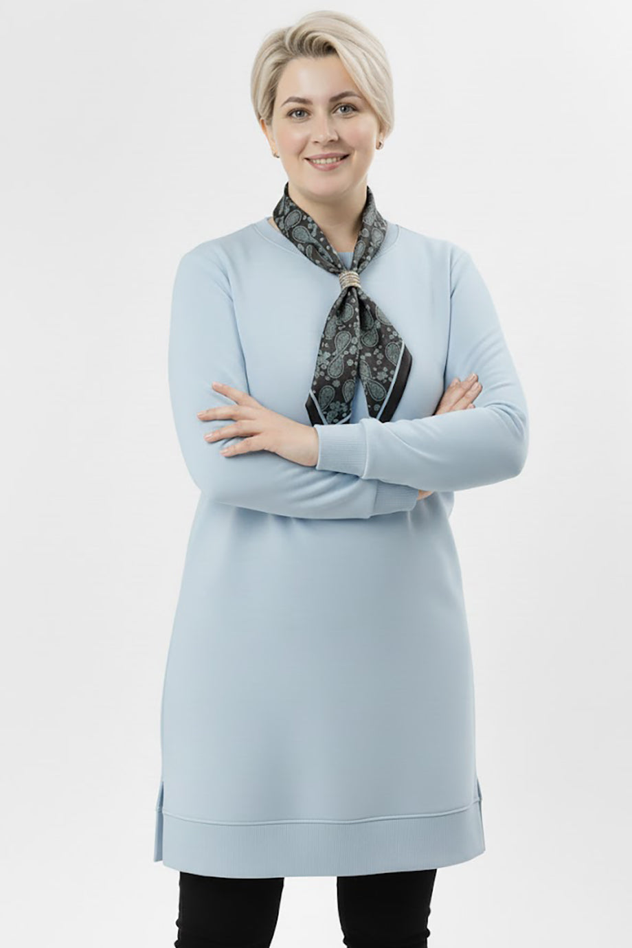 Scarfmode Büyük Beden Fularlı Tunik Mavi