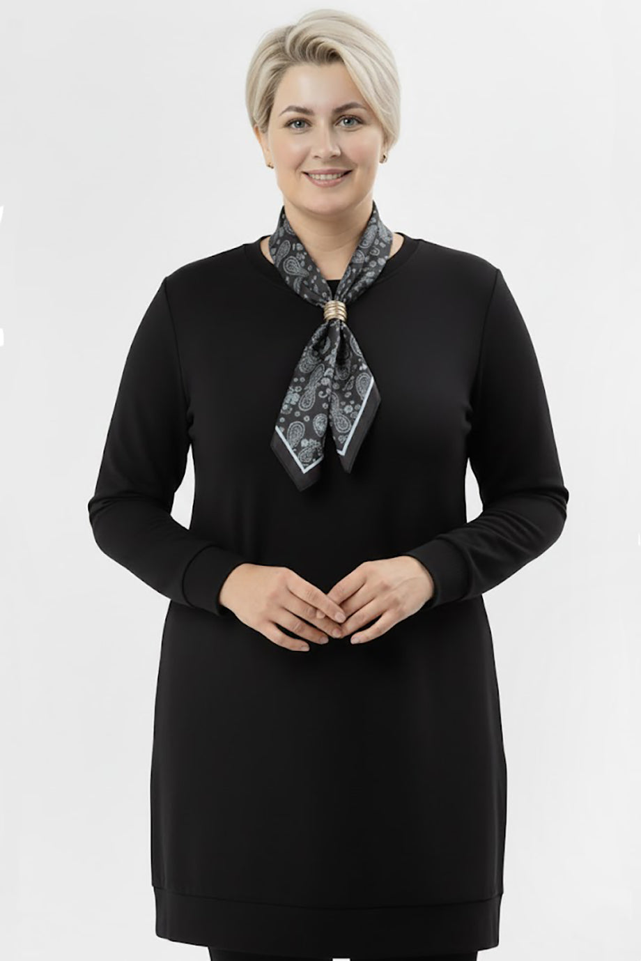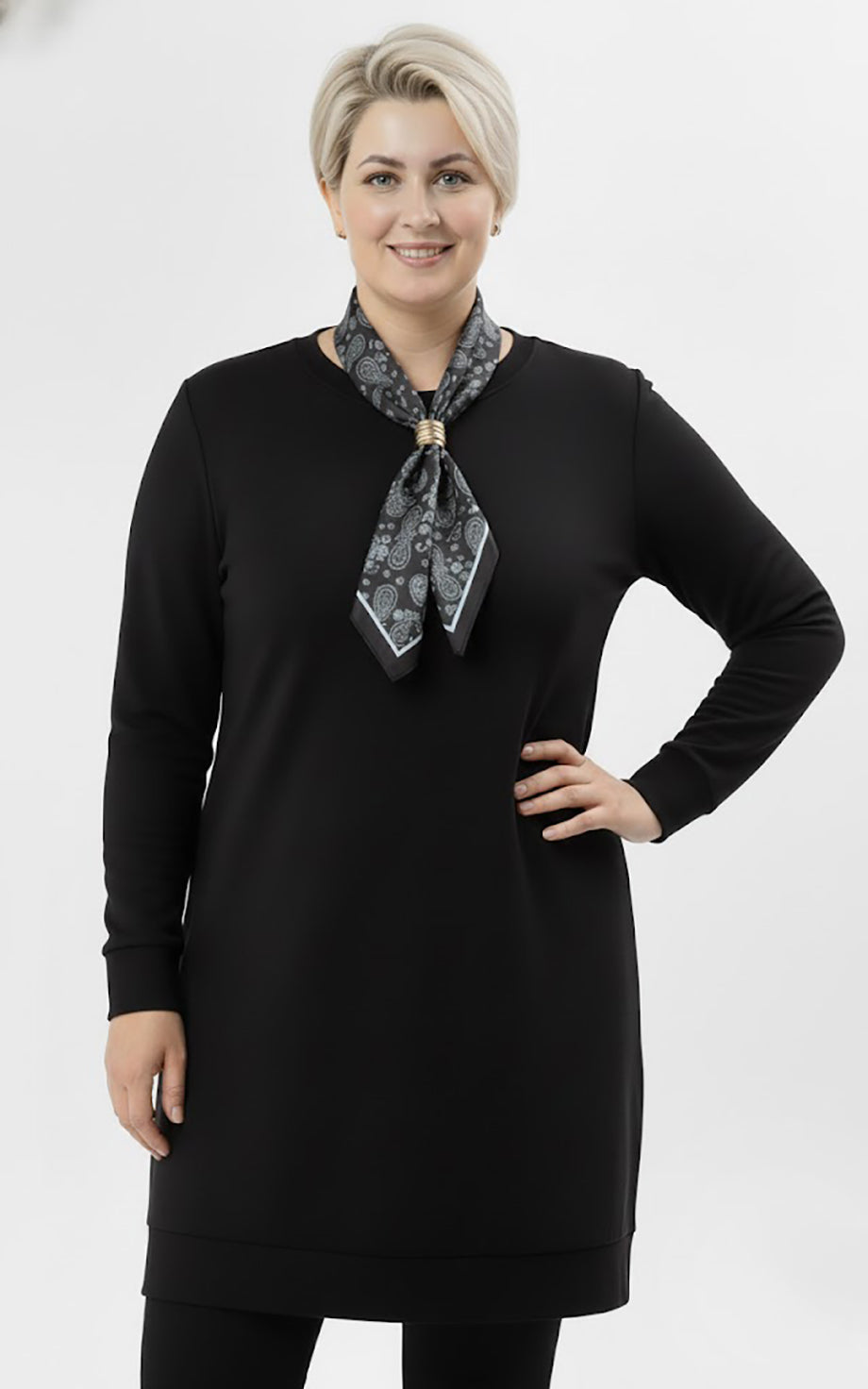 Scarfmode Büyük Beden Fularlı Tunik Siyah