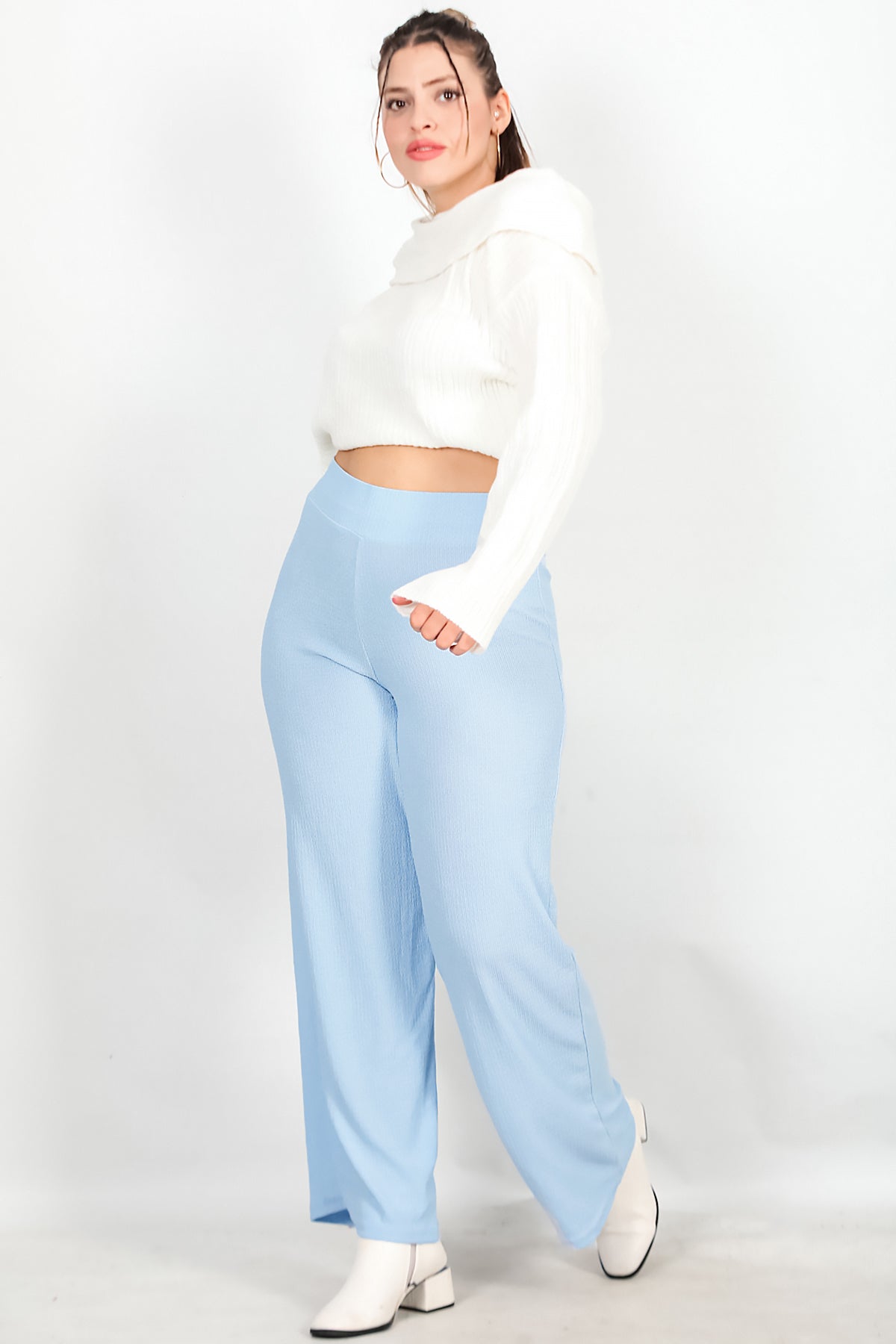 Büyük Beden Kalın Kemerli Bürümcük Pantolon Mavi