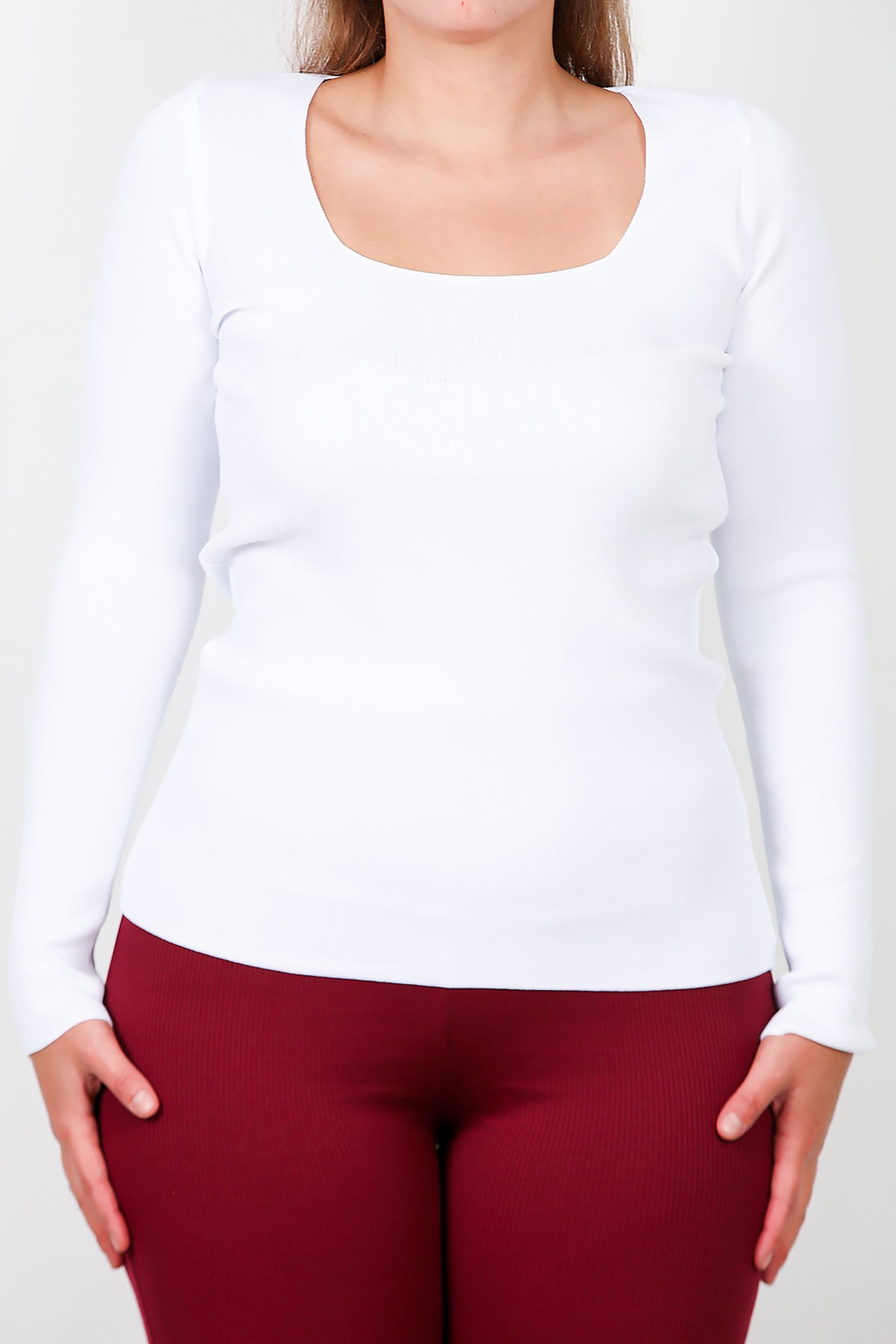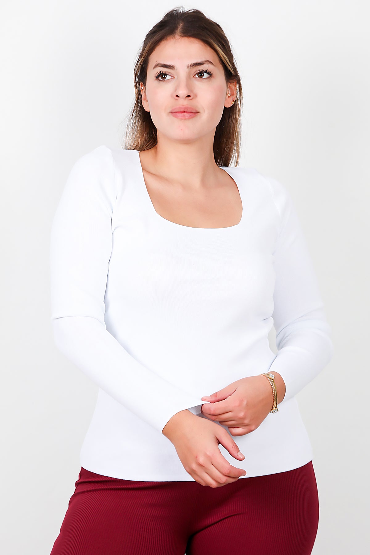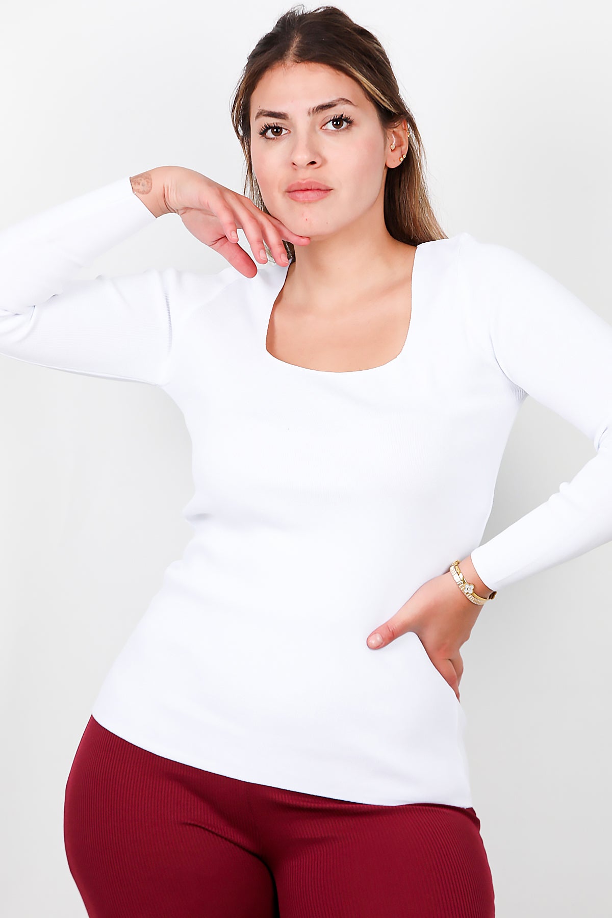 Büyük Beden Kare Yaka Uzun Kol Bluz Ekru