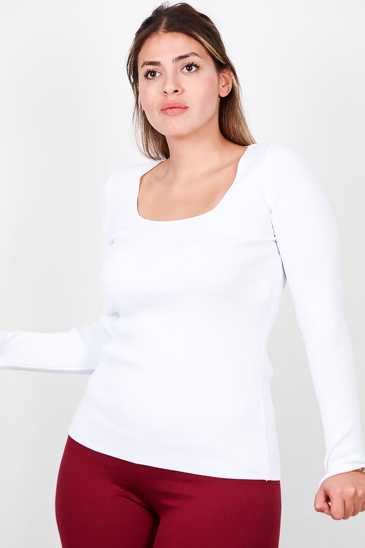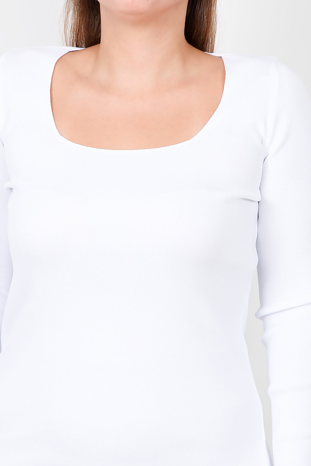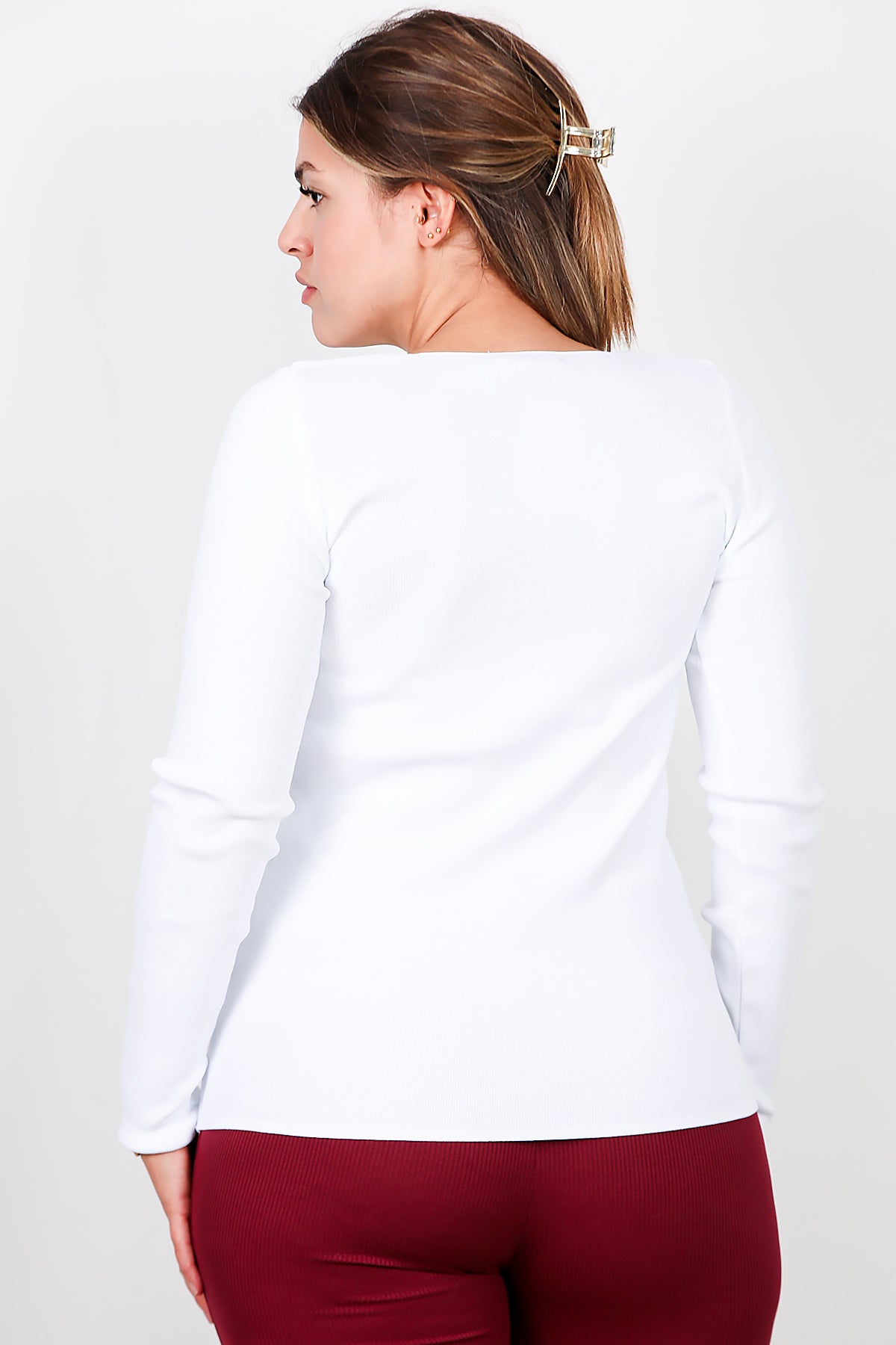 Büyük Beden Kare Yaka Uzun Kol Bluz Ekru