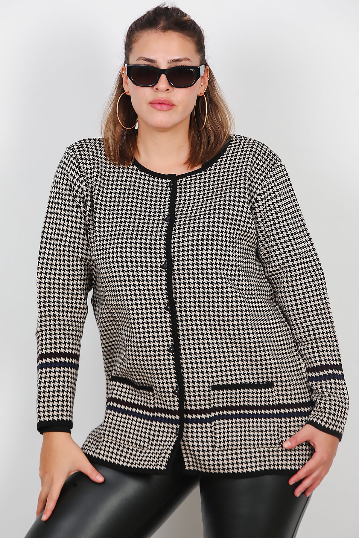 Büyük Beden Kazayağı Çift Cepli Hırka Siyah