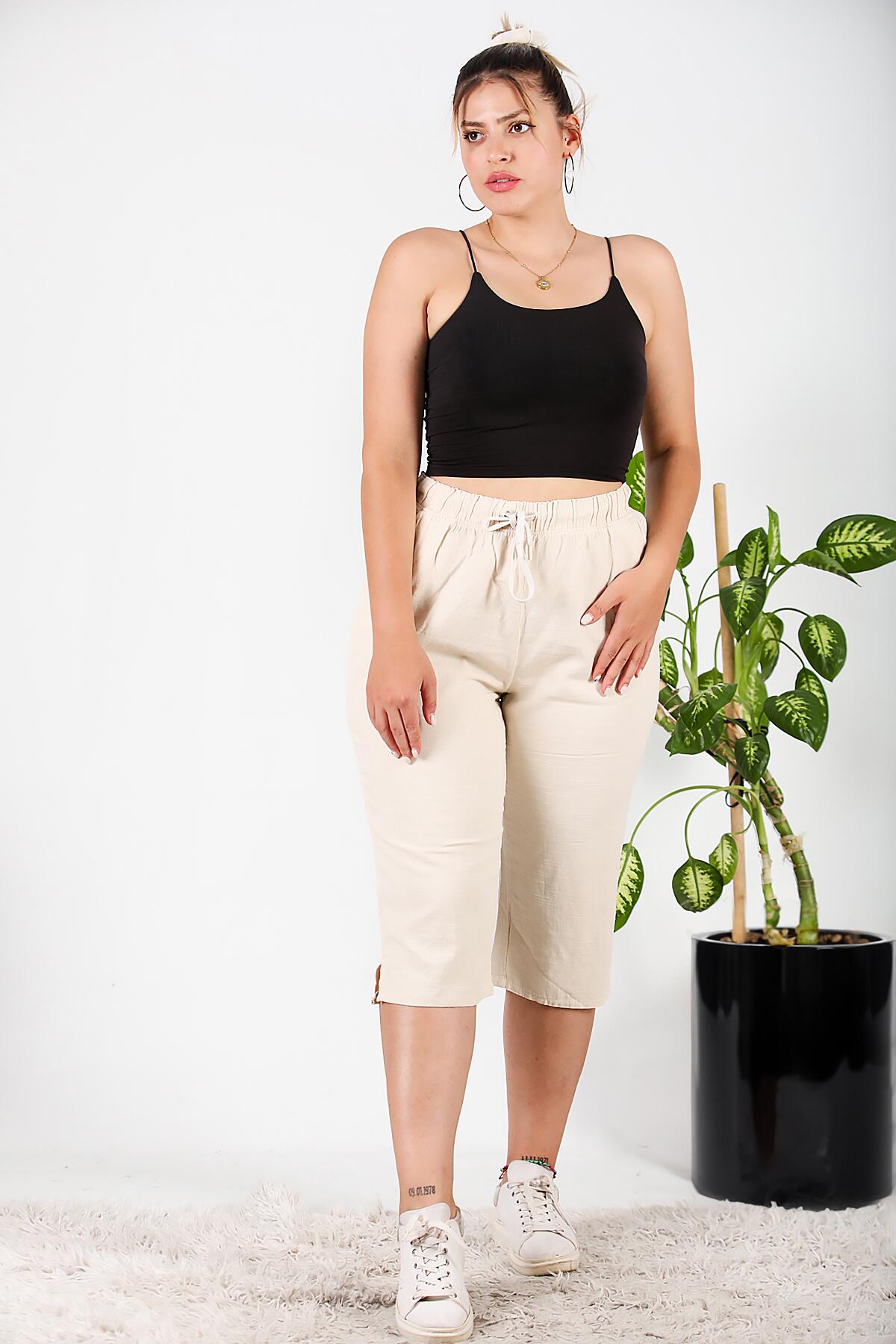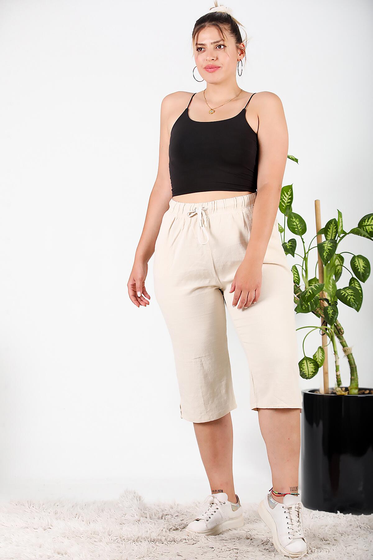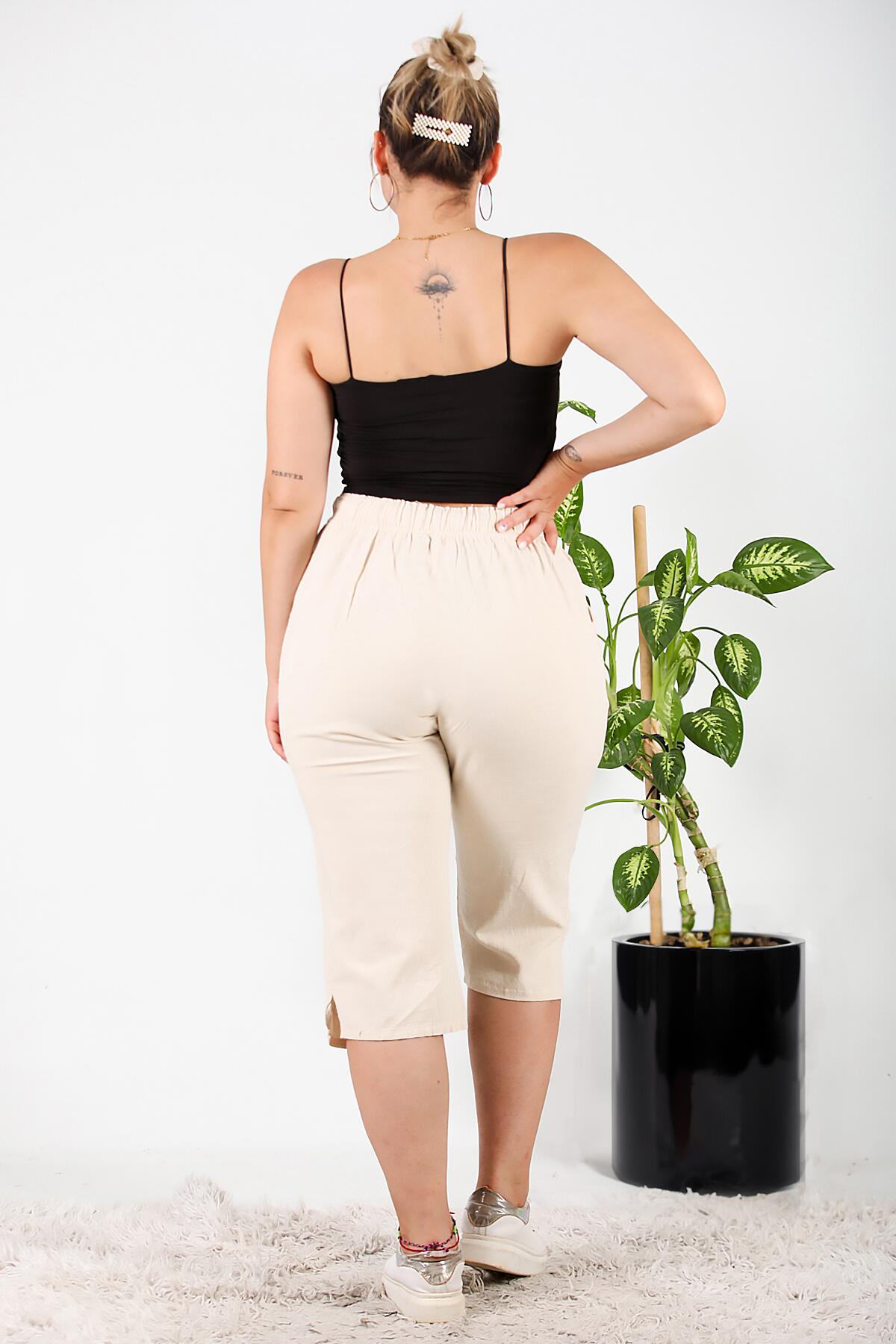 Büyük Beden Keten Kapri