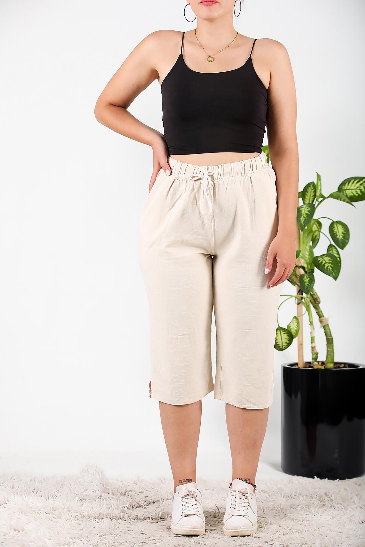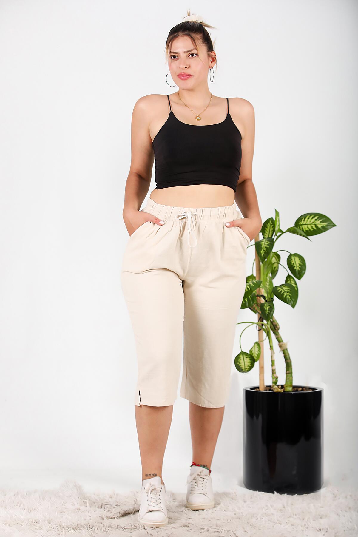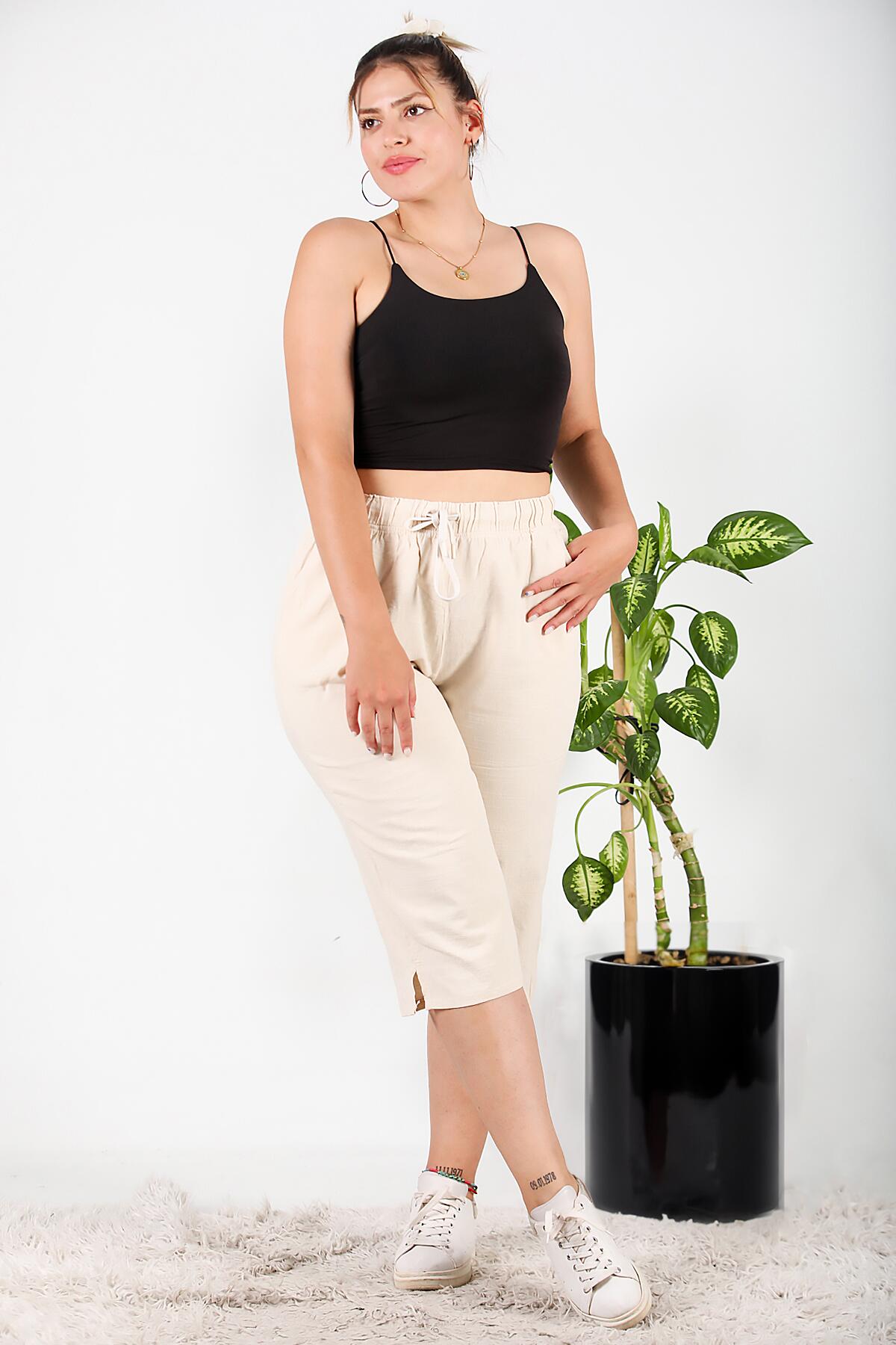 Büyük Beden Keten Kapri