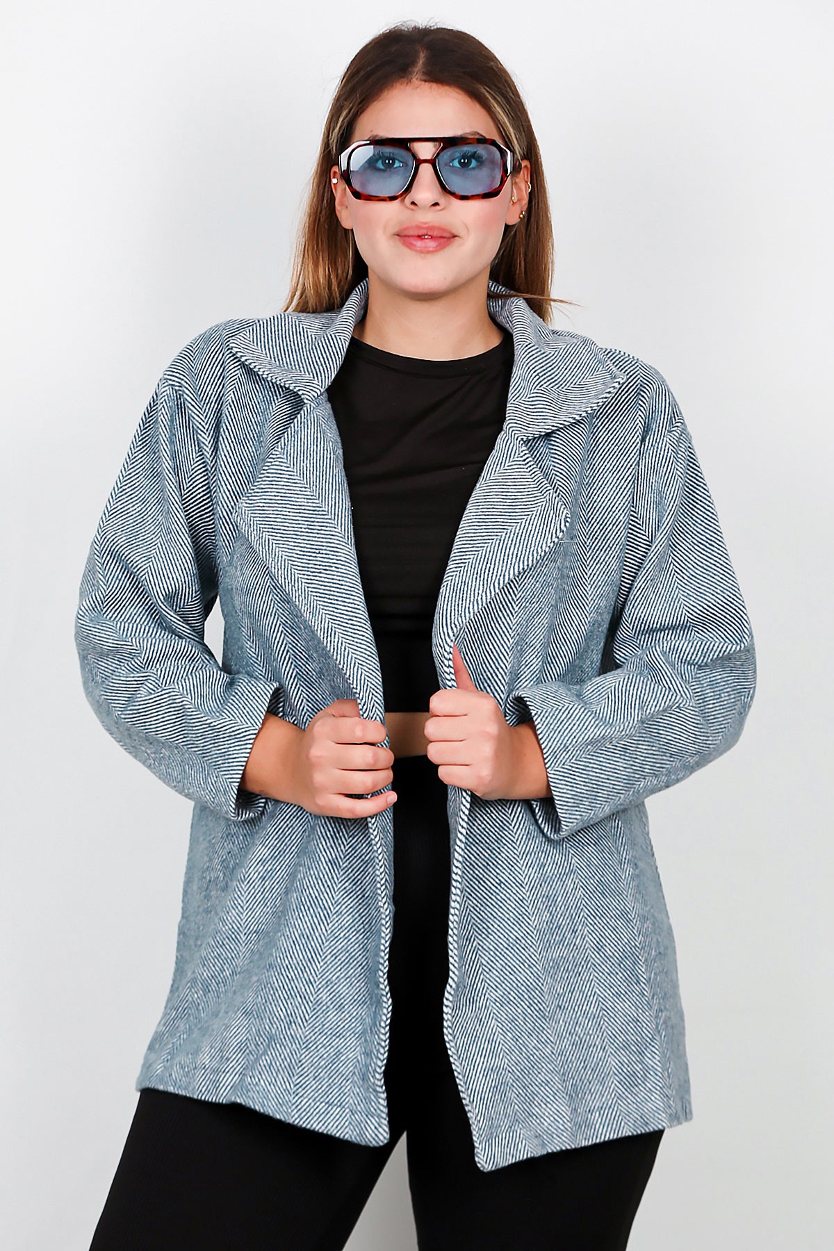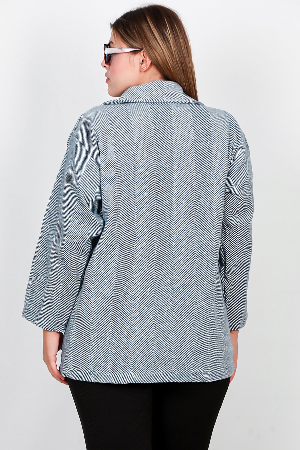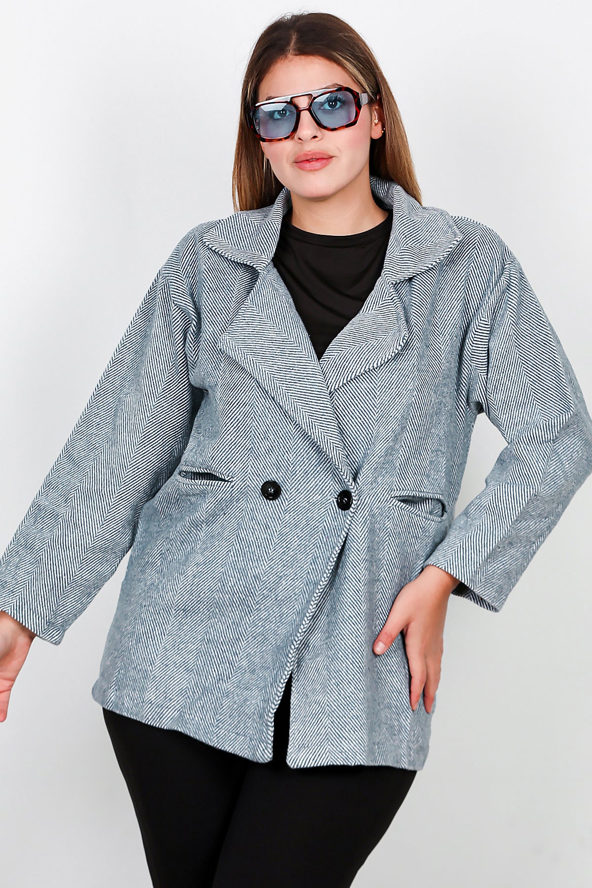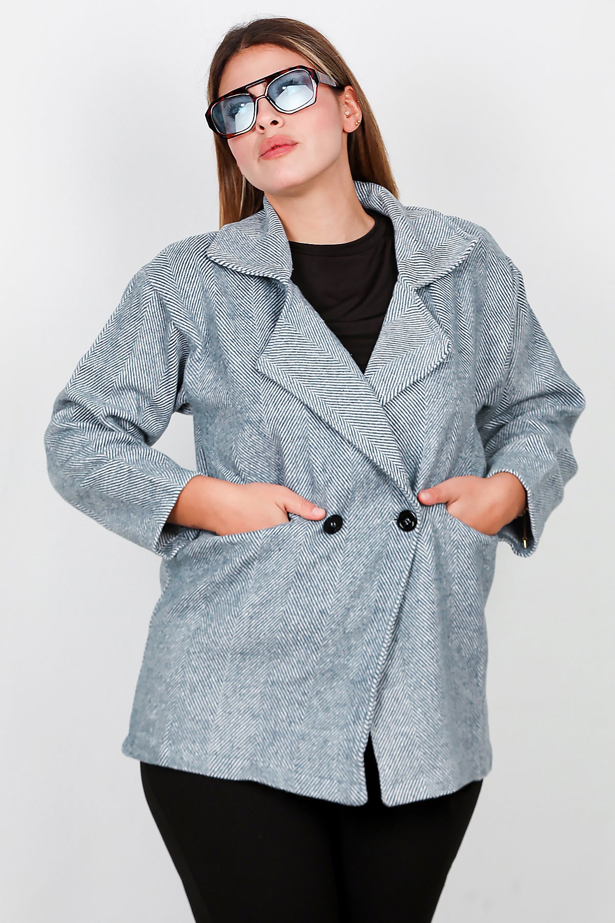 Büyük Beden Kısa Kaşe Kaban İndigo