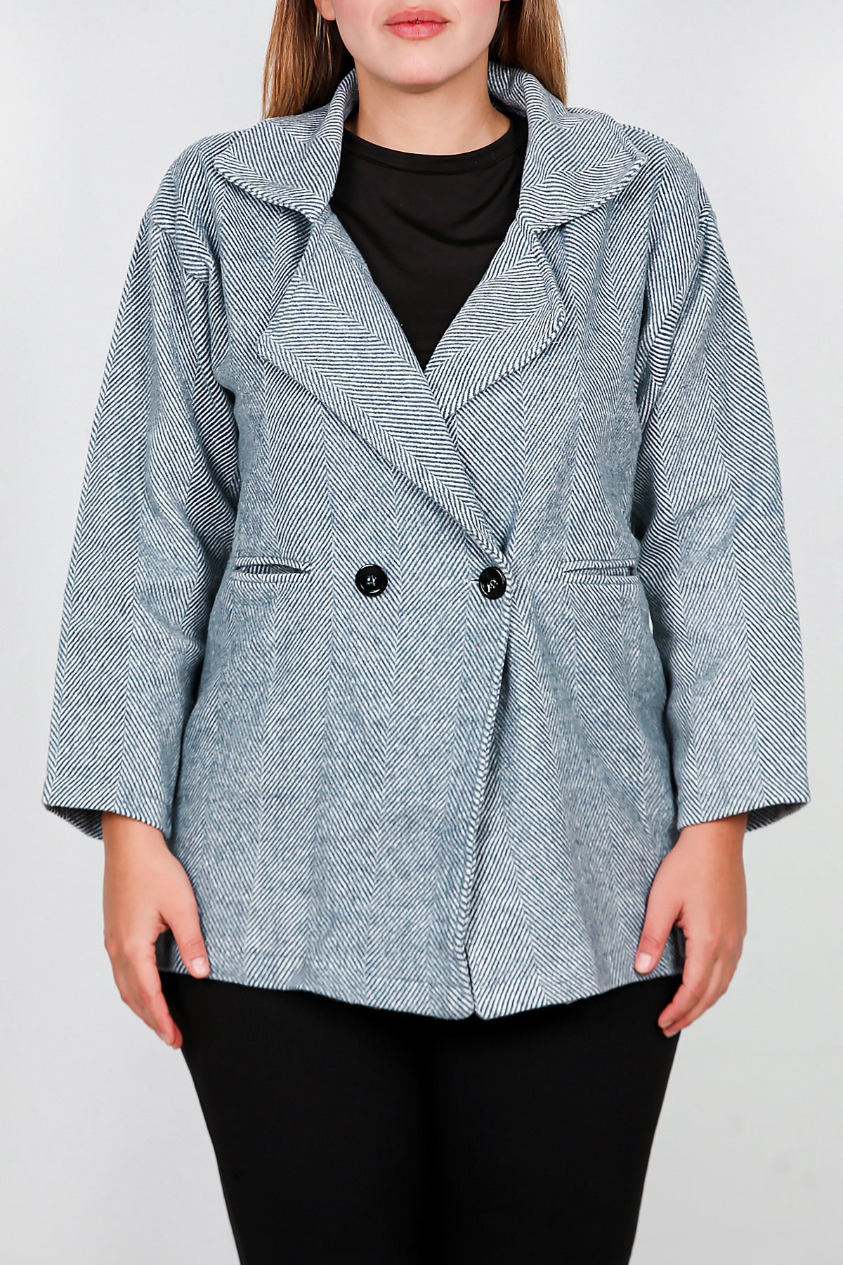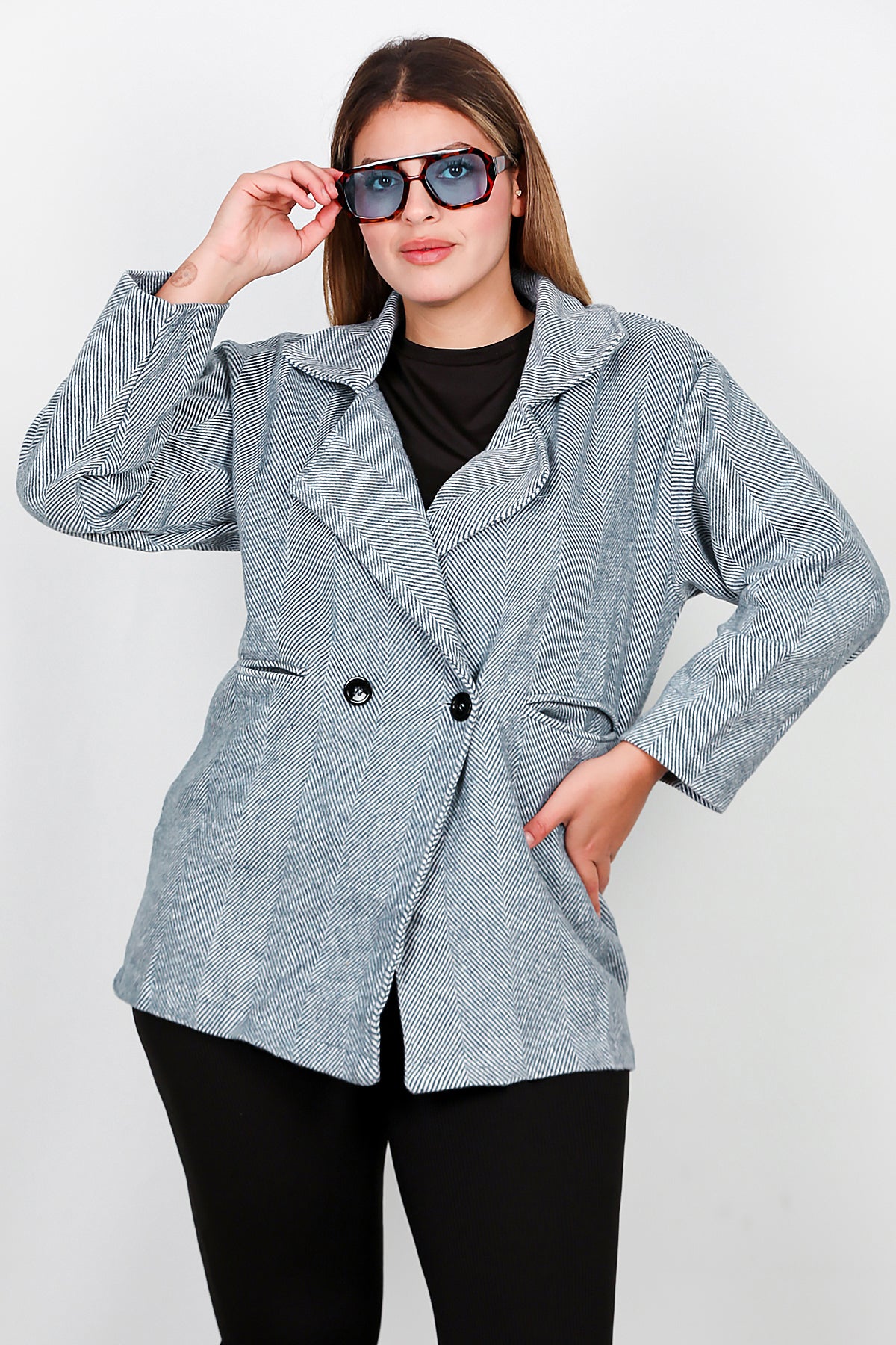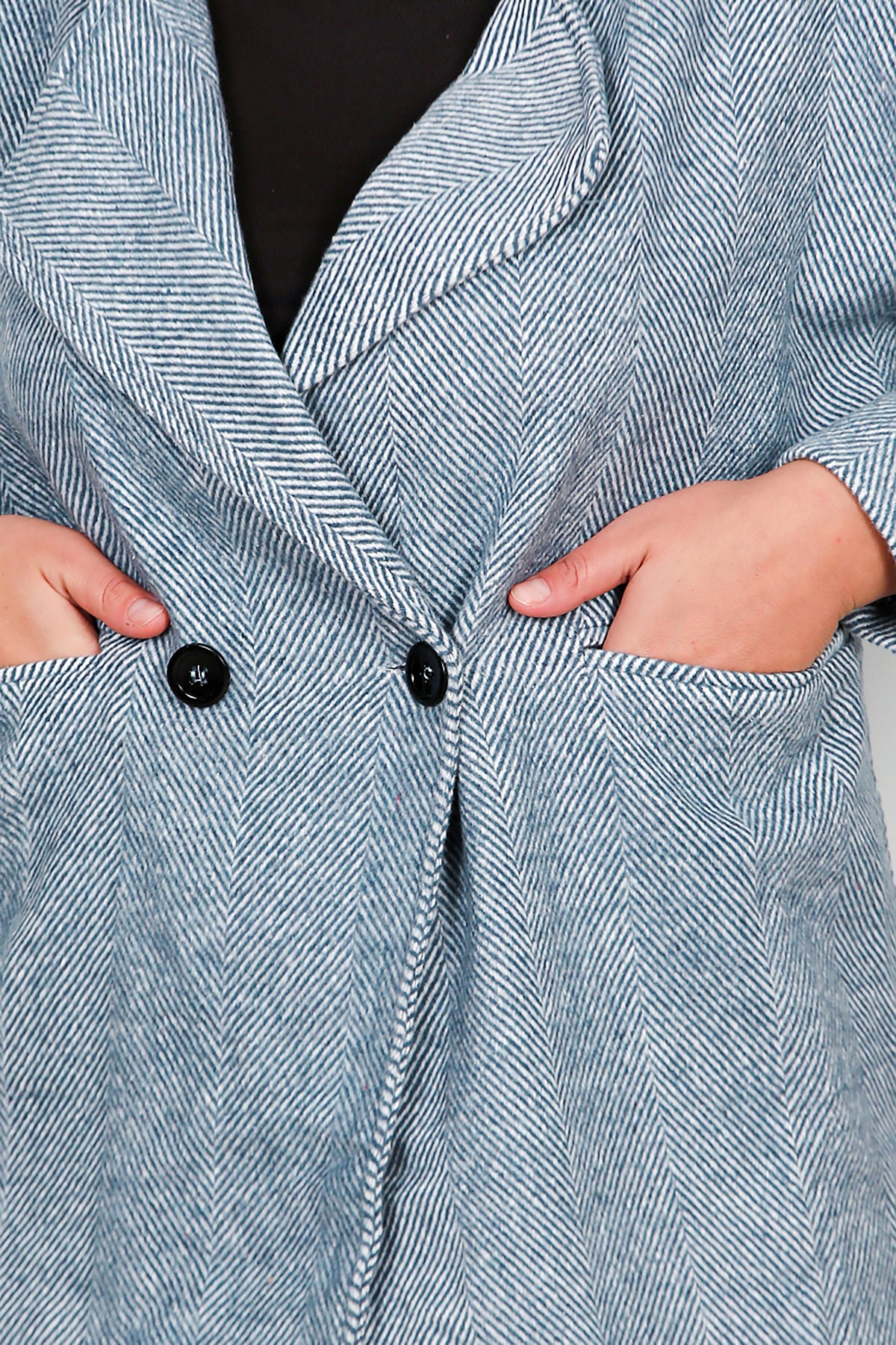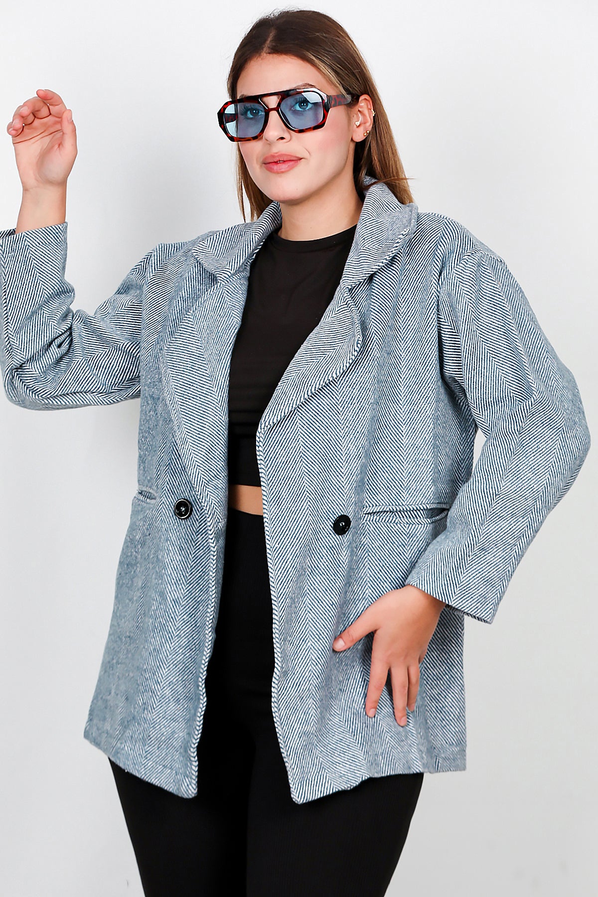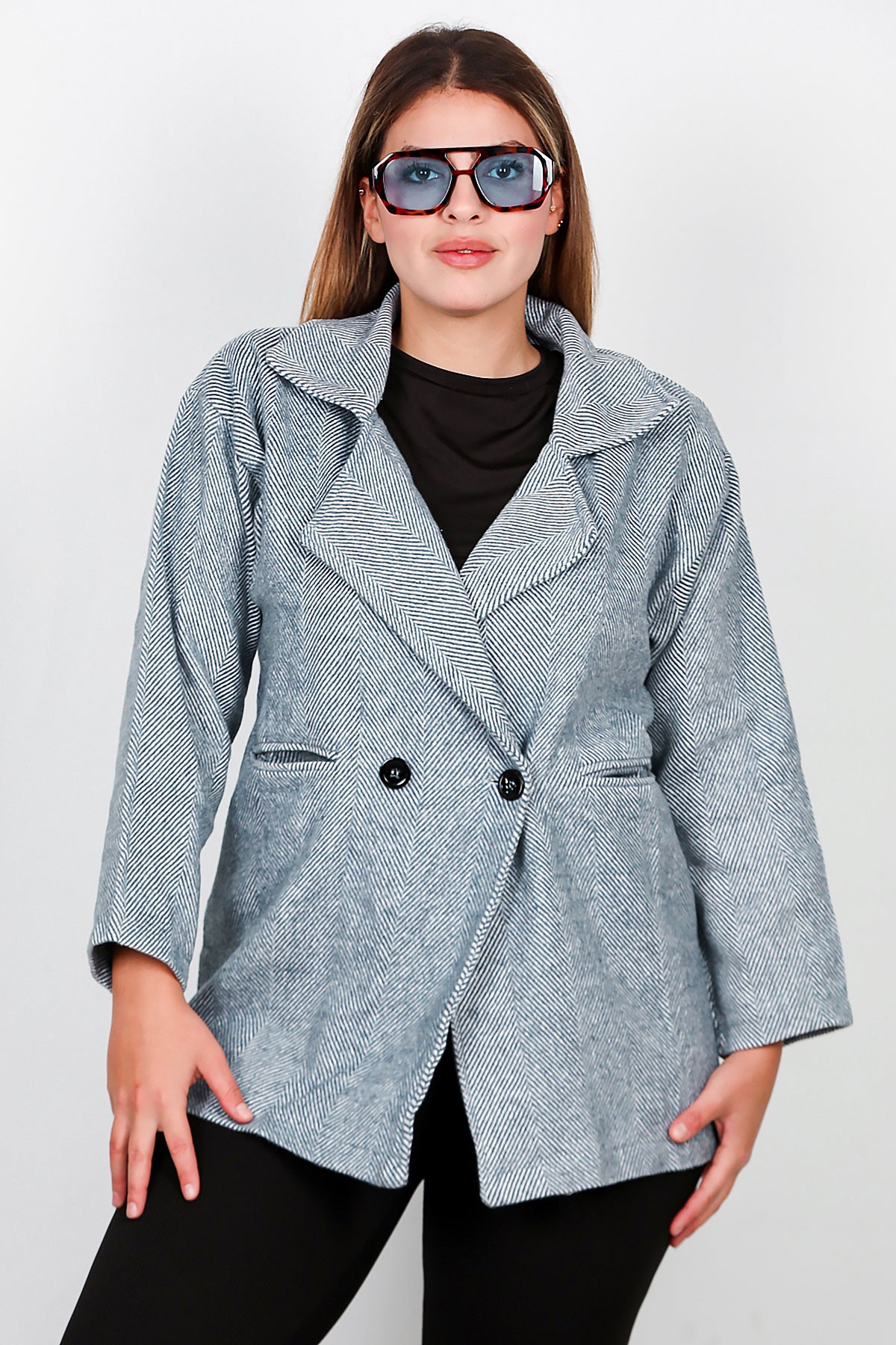 Büyük Beden Kısa Kaşe Kaban İndigo