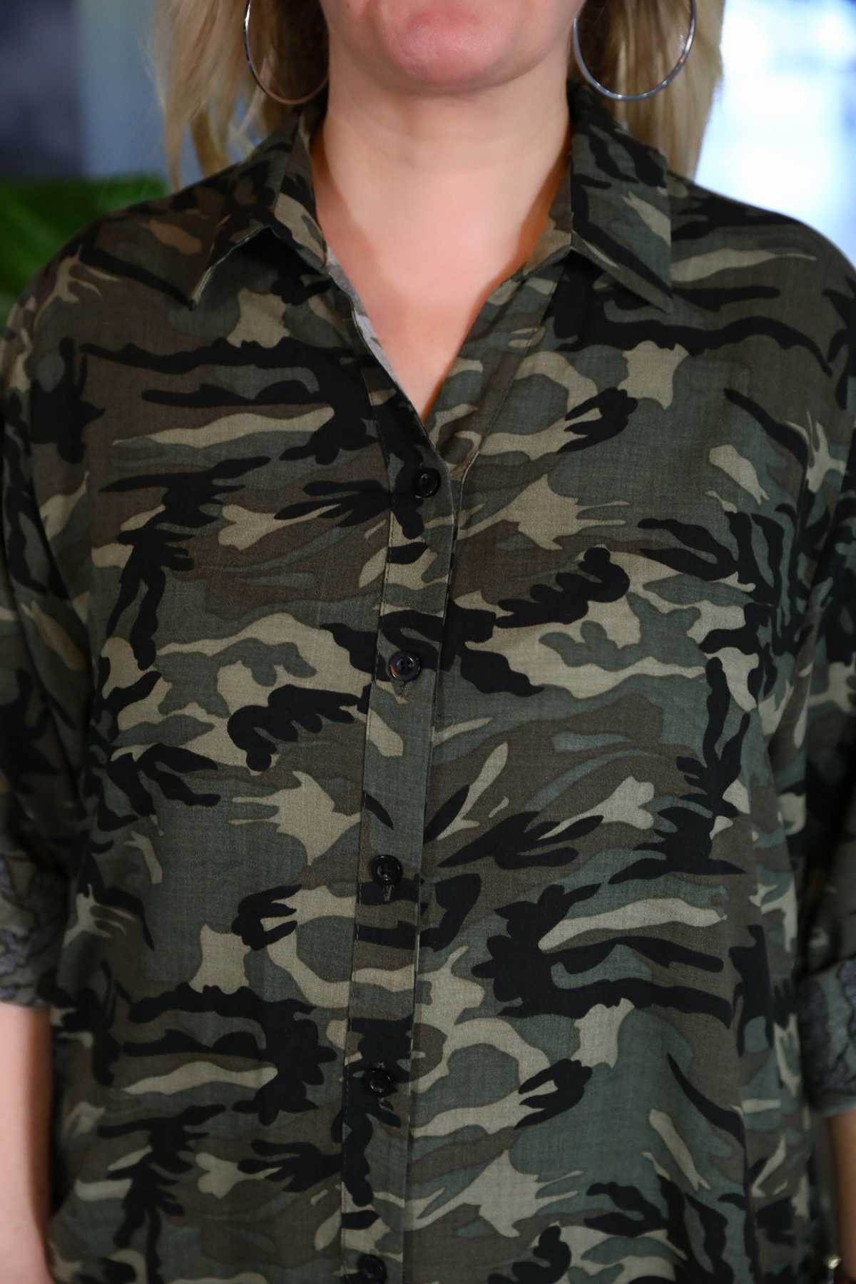Büyük Beden Kol Katlama Gömlek Yeşil