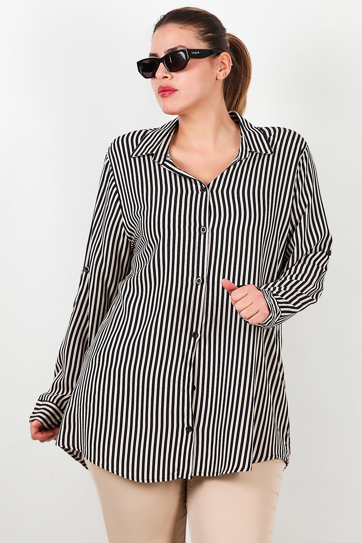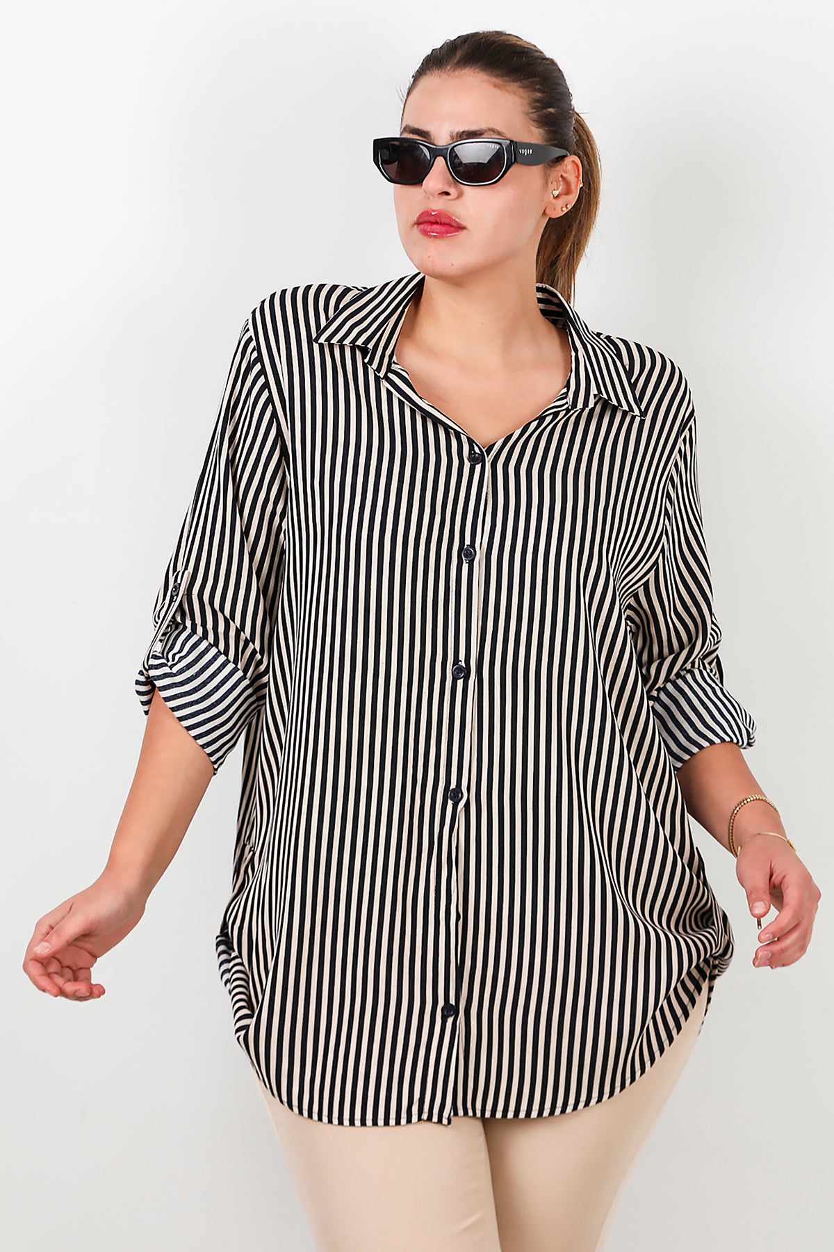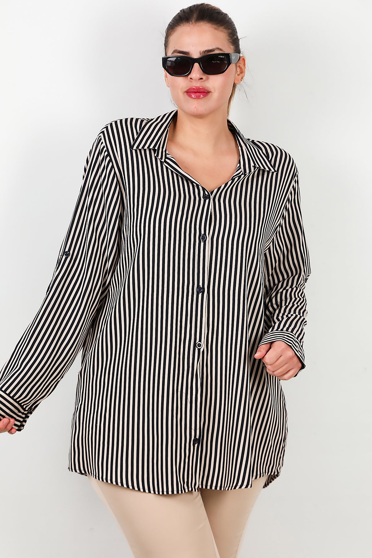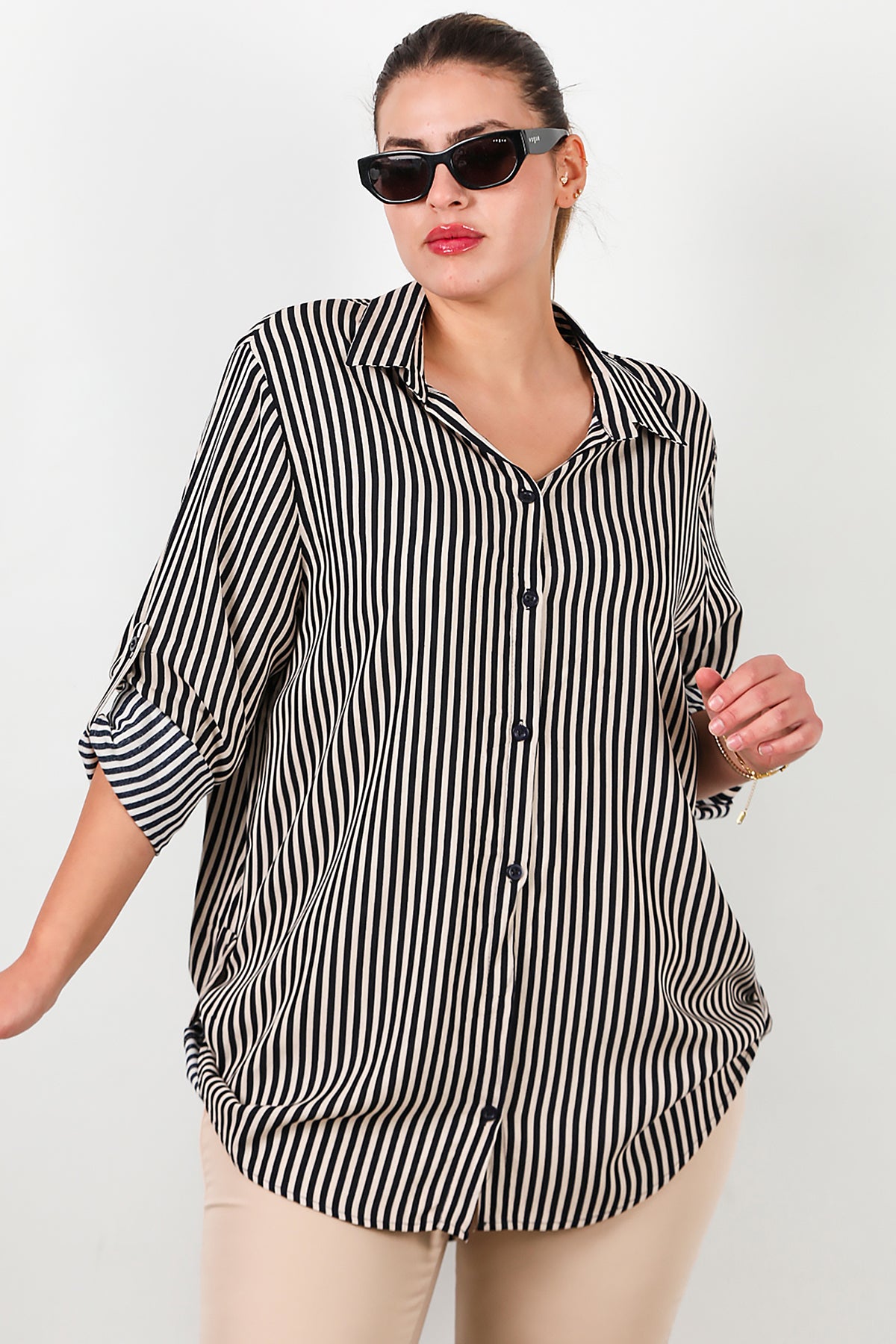 Büyük Beden Kol Katlamalı Gömlek Bej