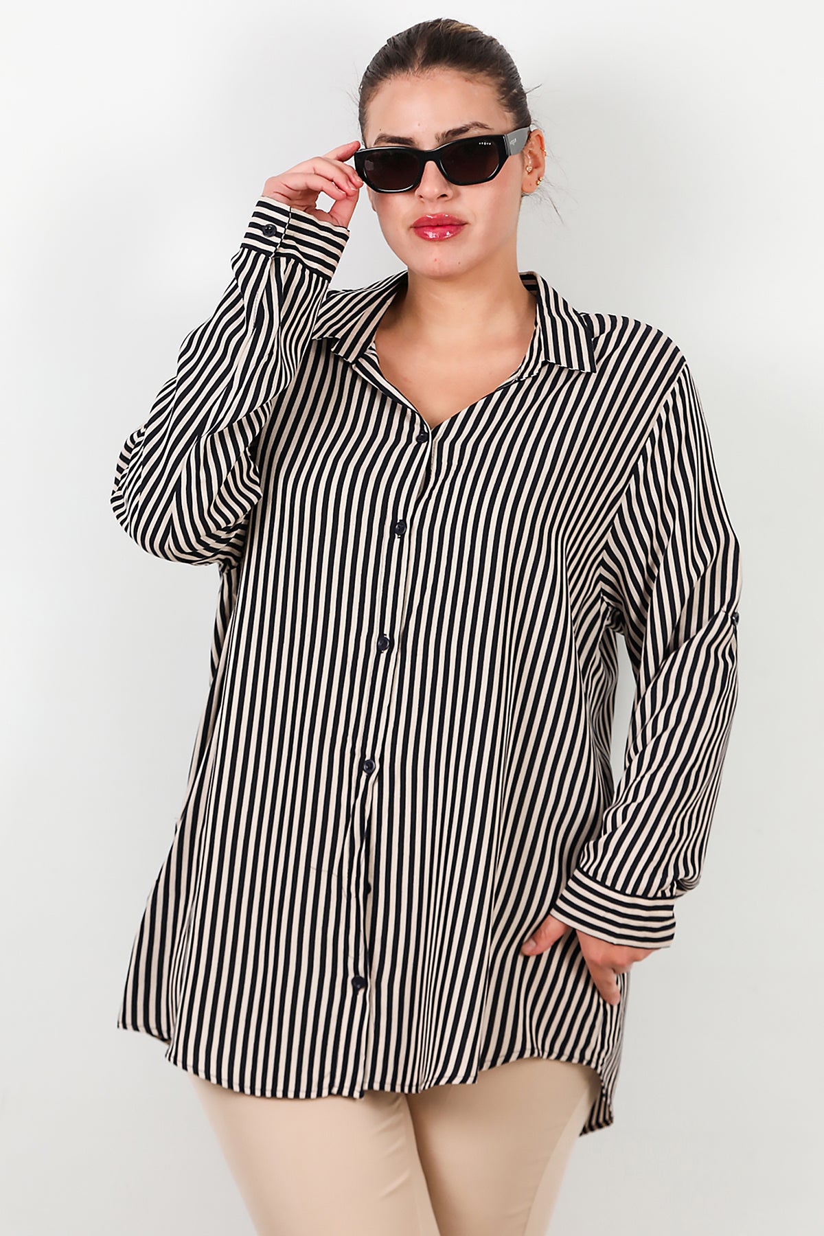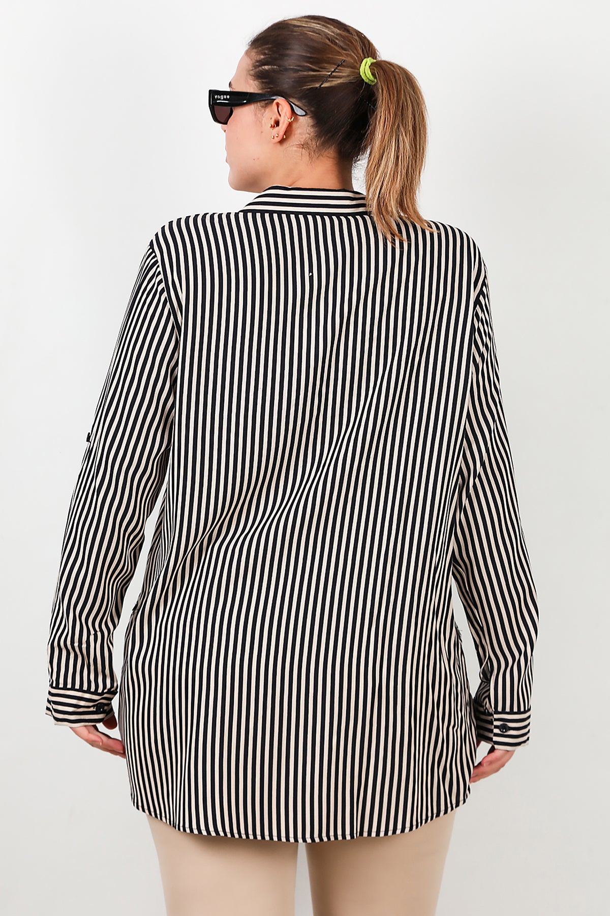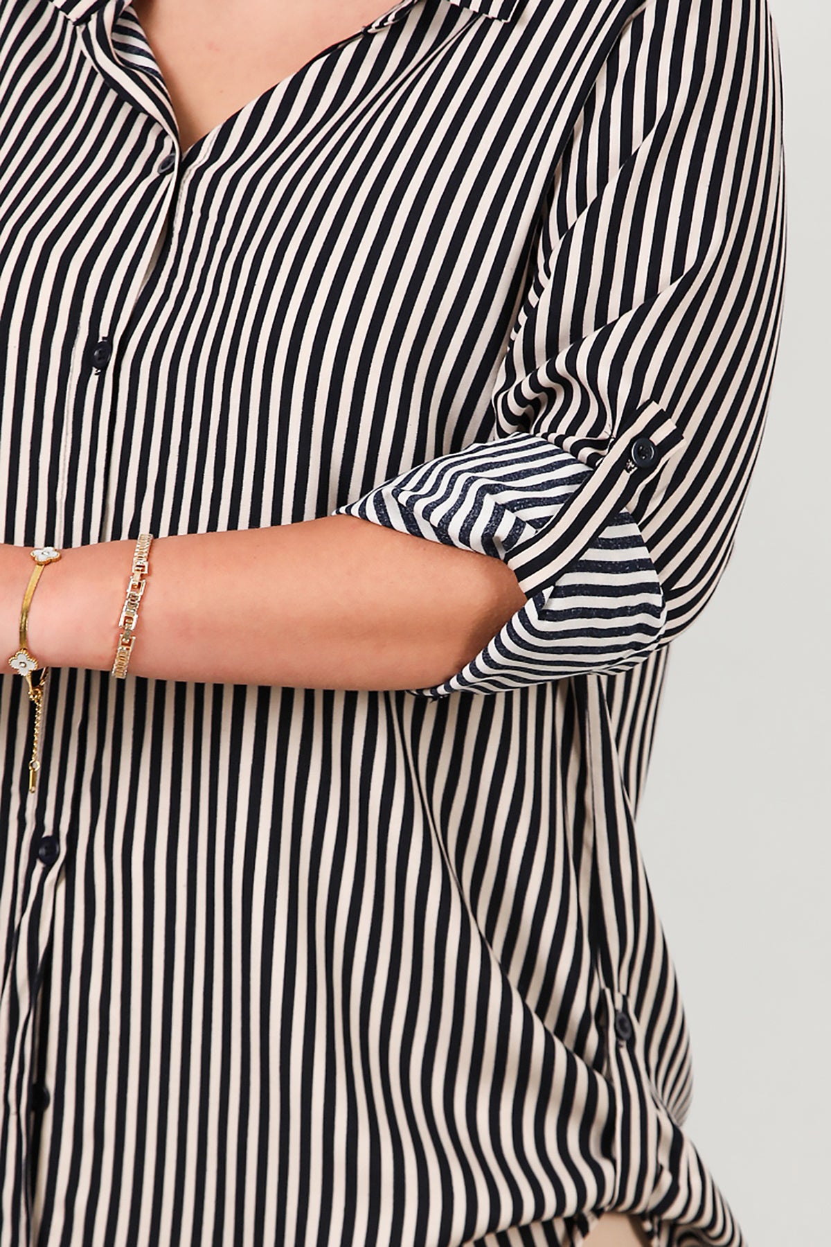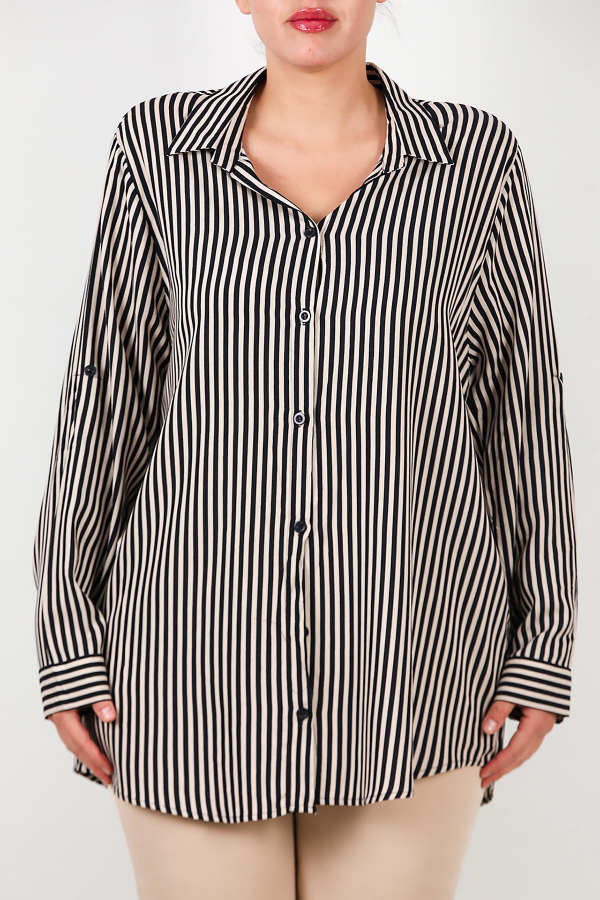 Büyük Beden Kol Katlamalı Gömlek Bej