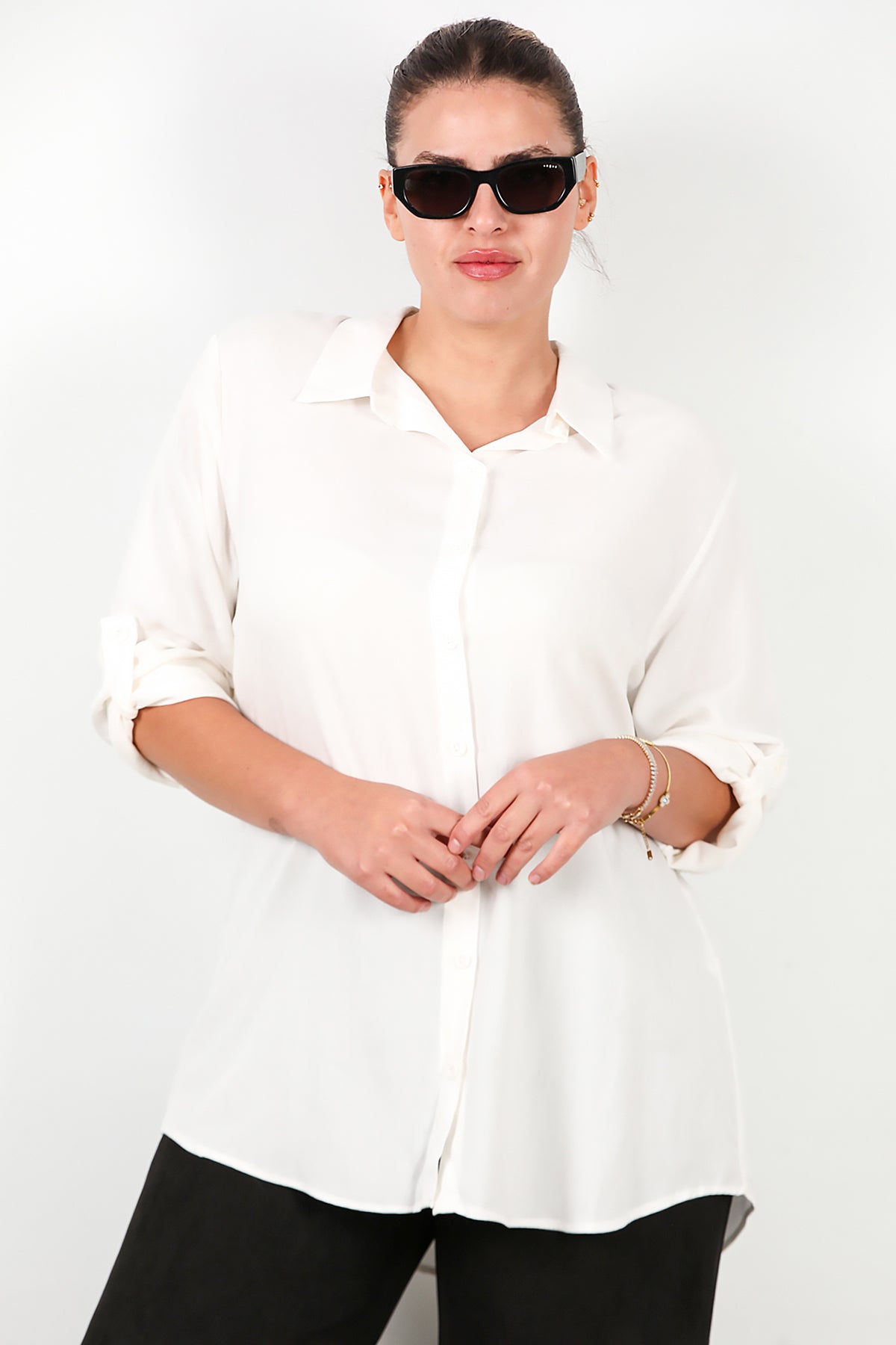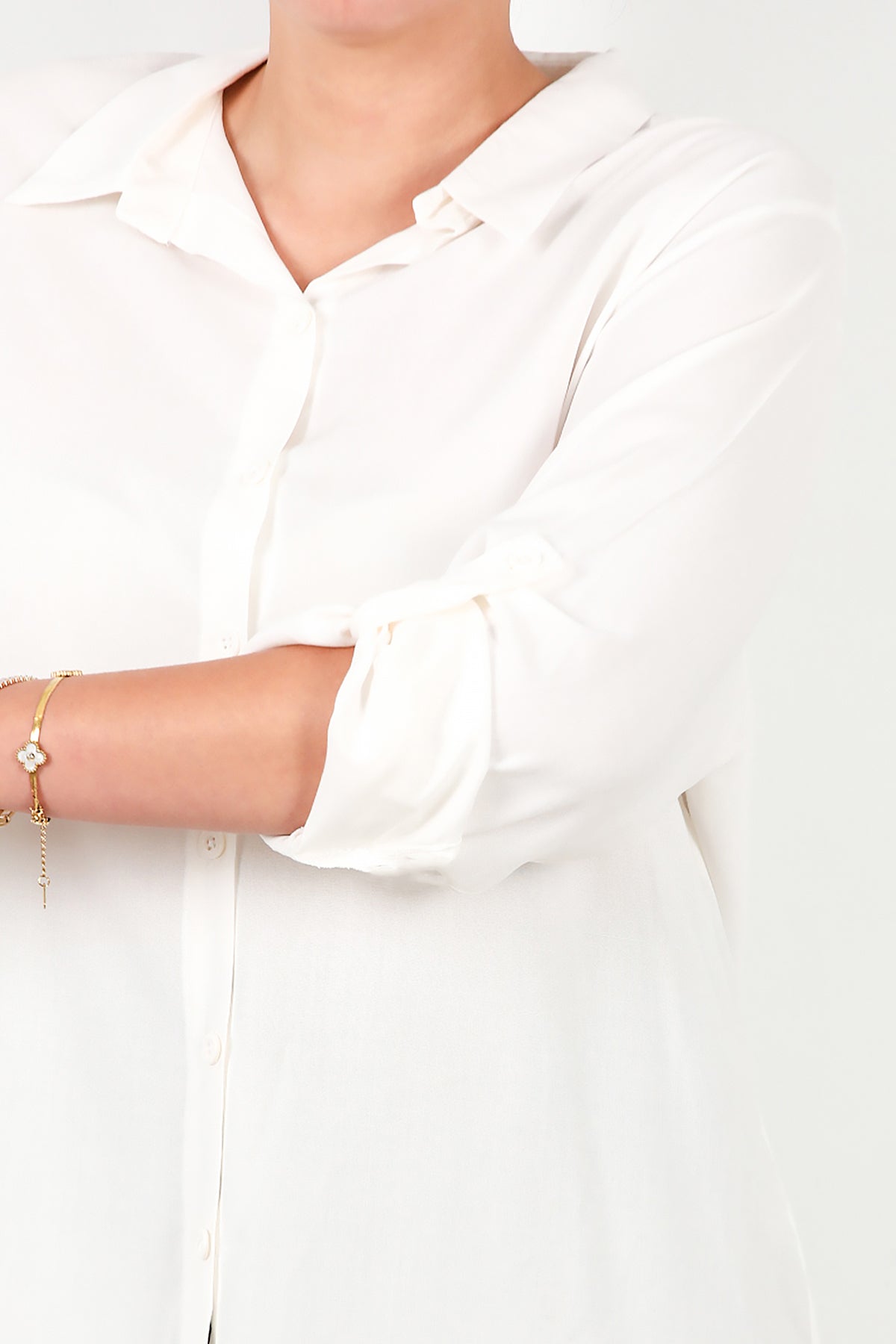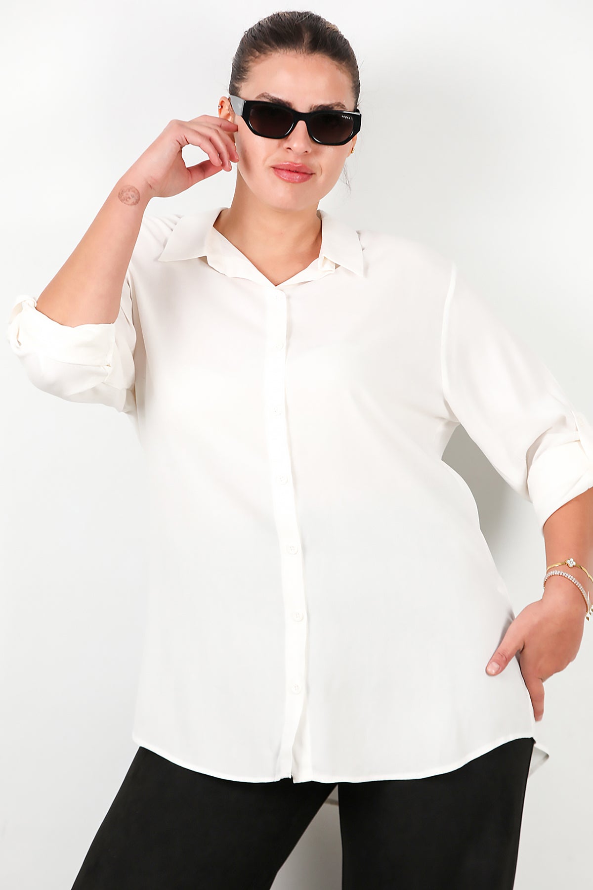 Büyük Beden Kol Katlamalı Gömlek Ekru
