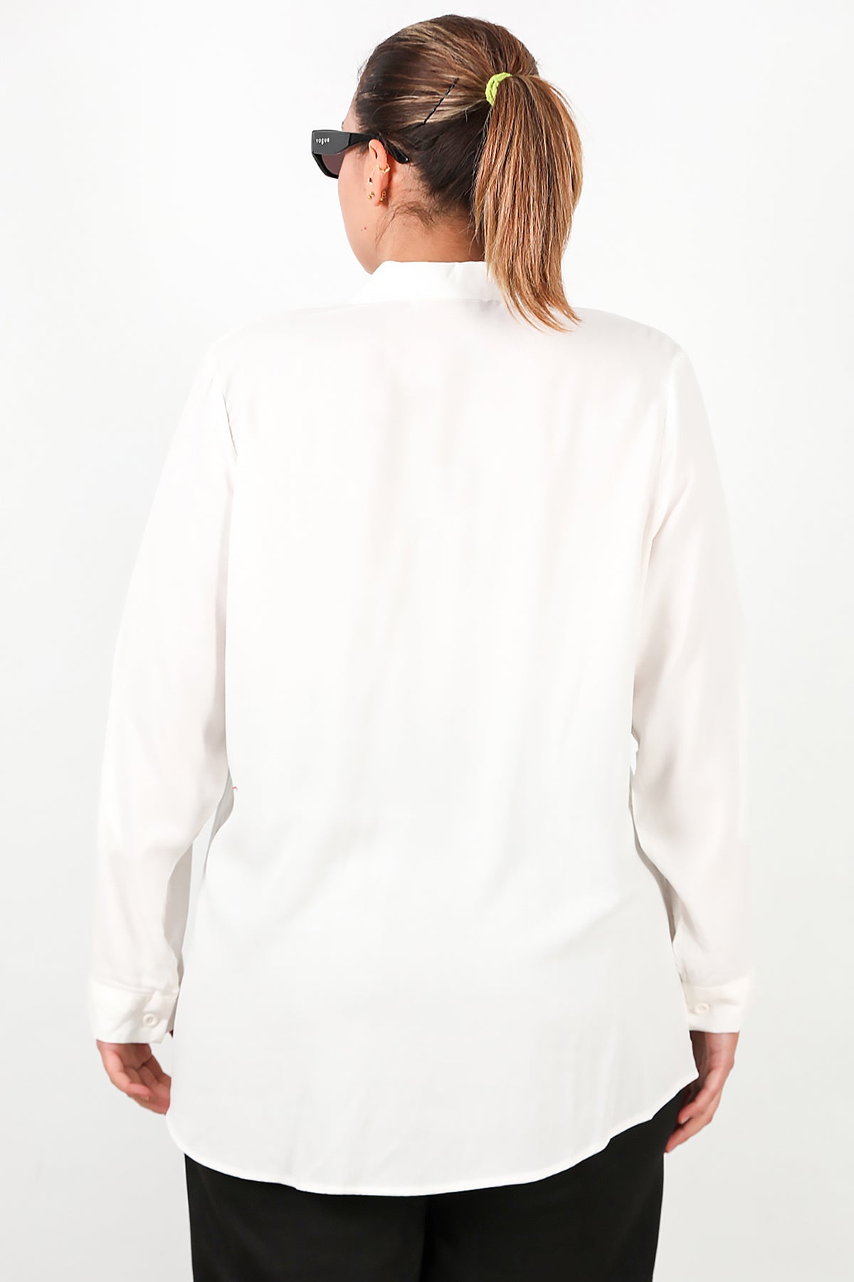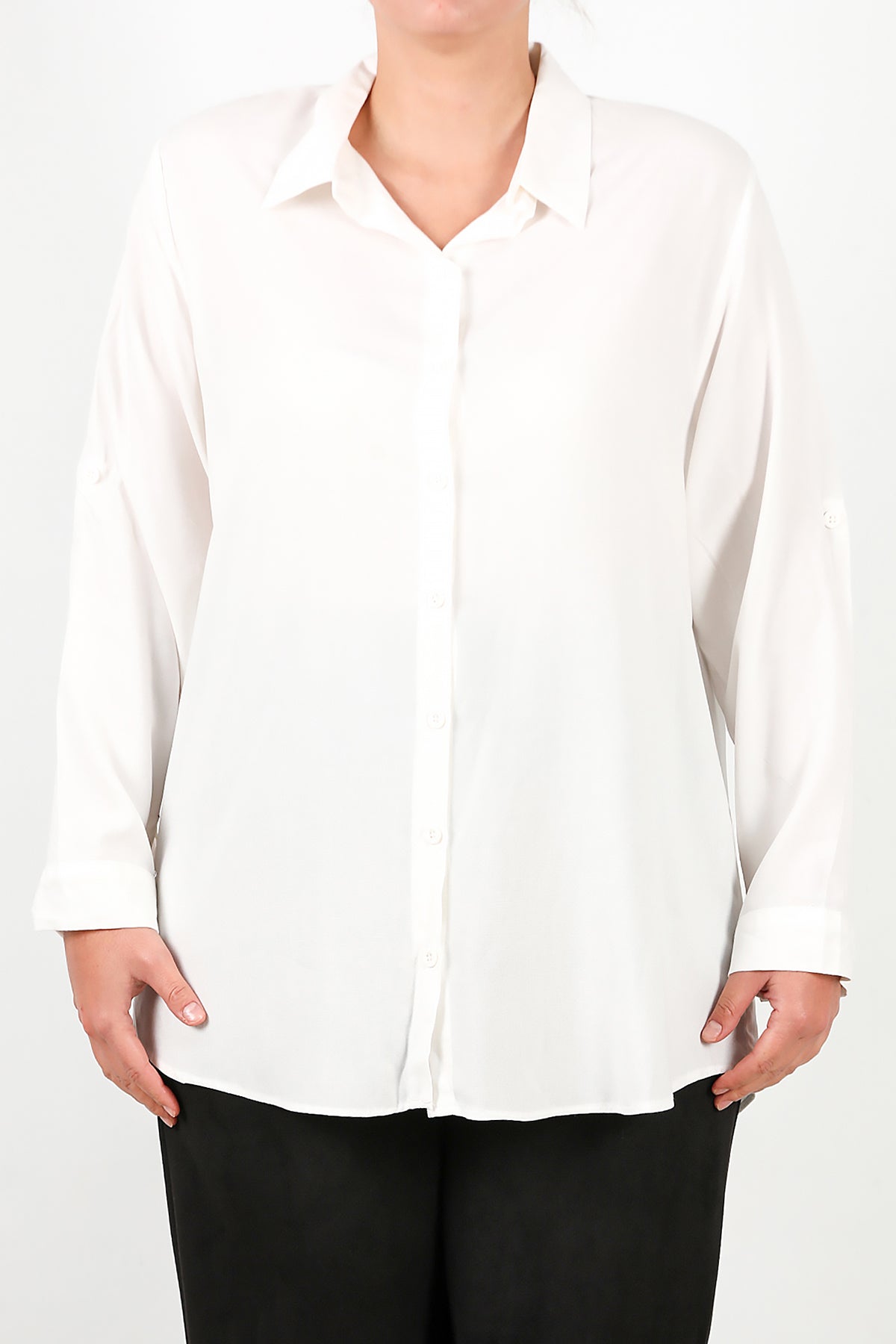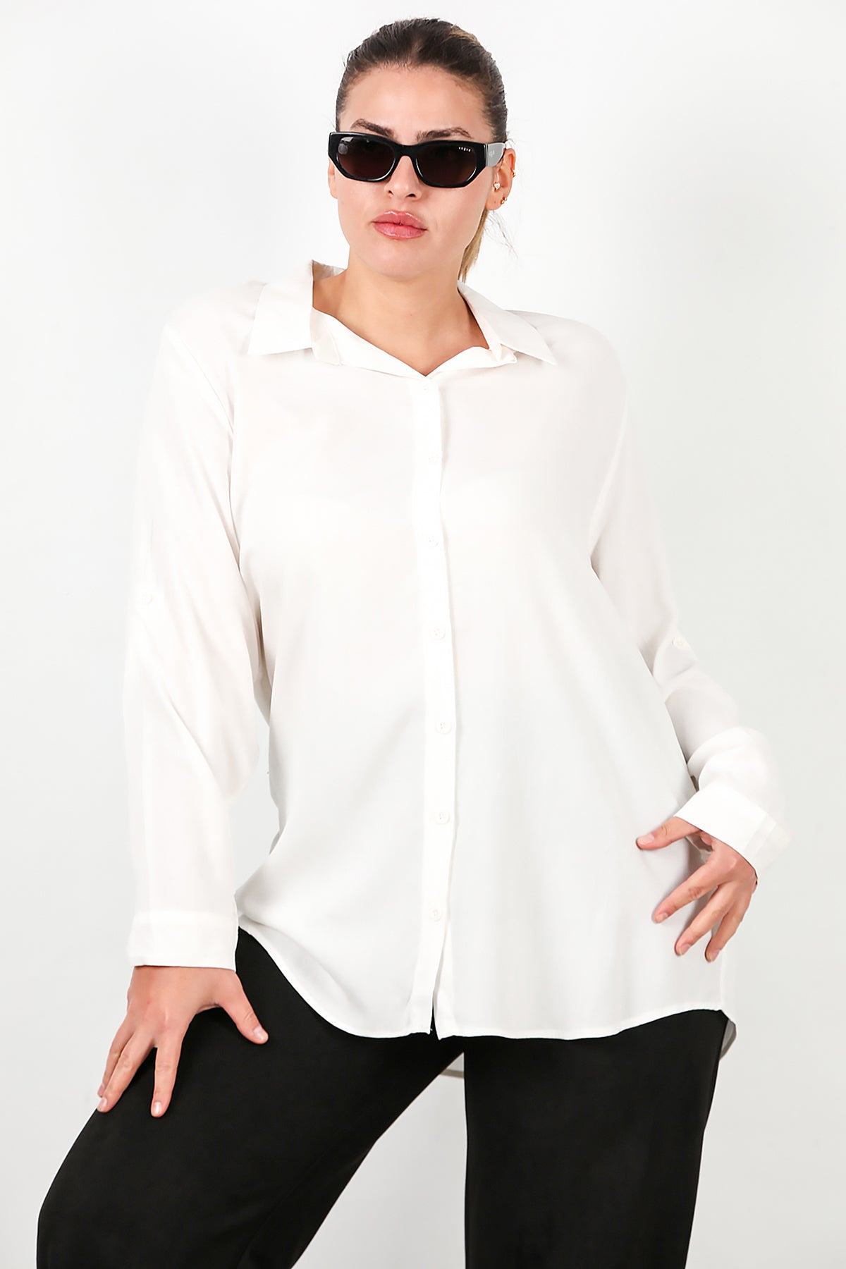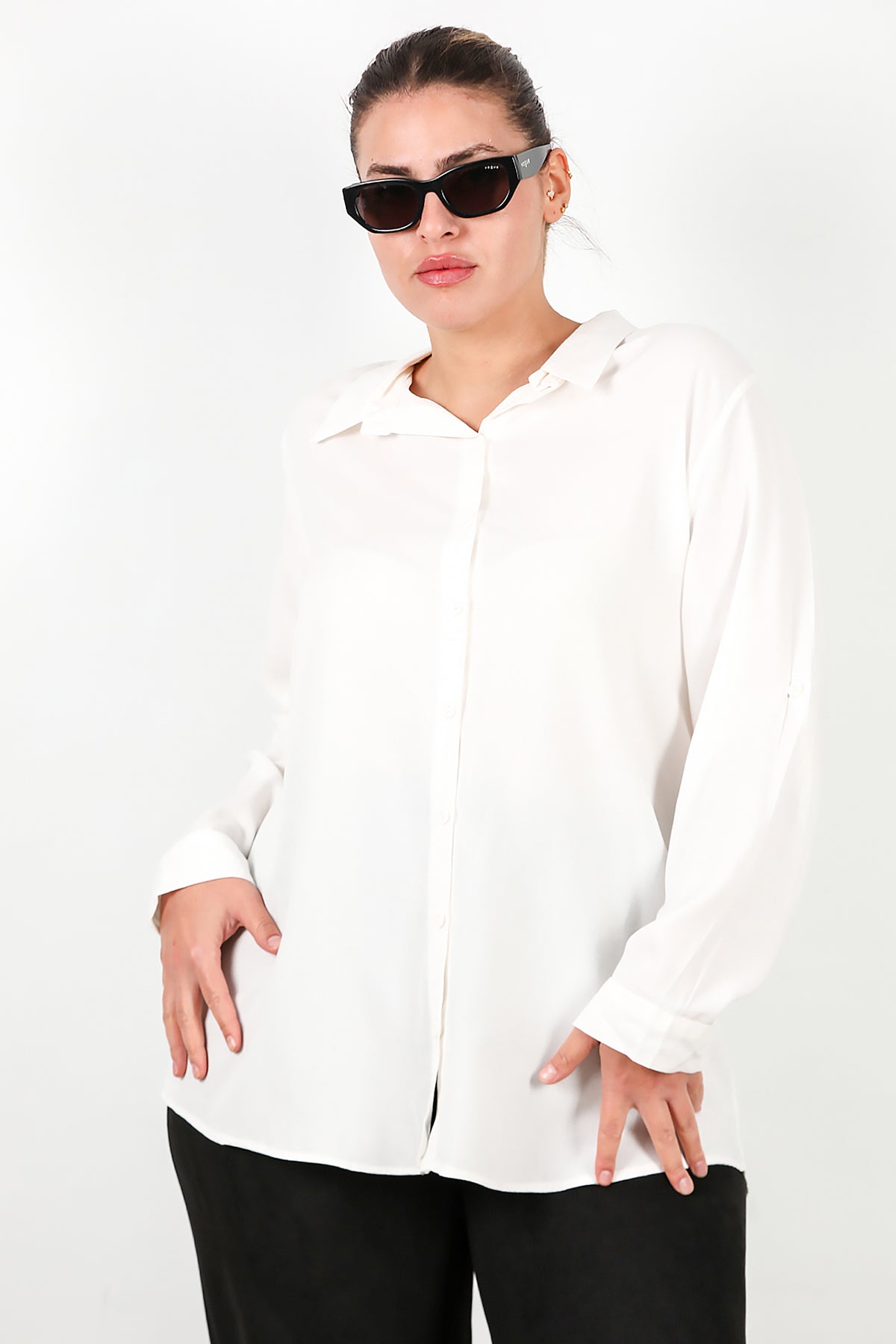 Büyük Beden Kol Katlamalı Gömlek Ekru
