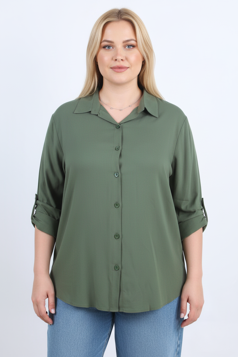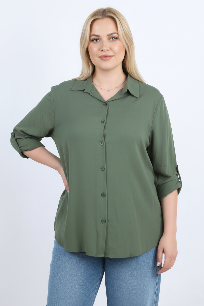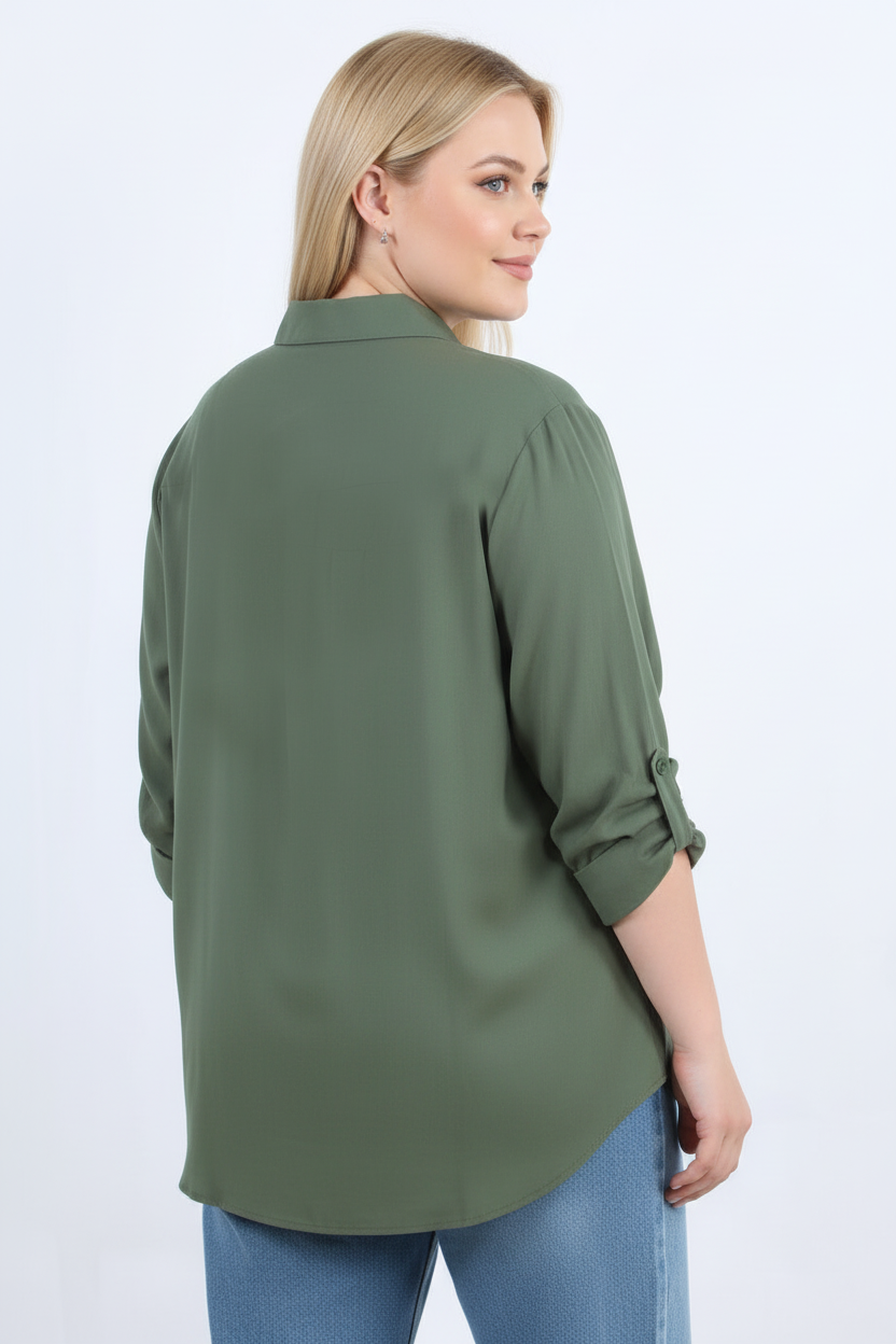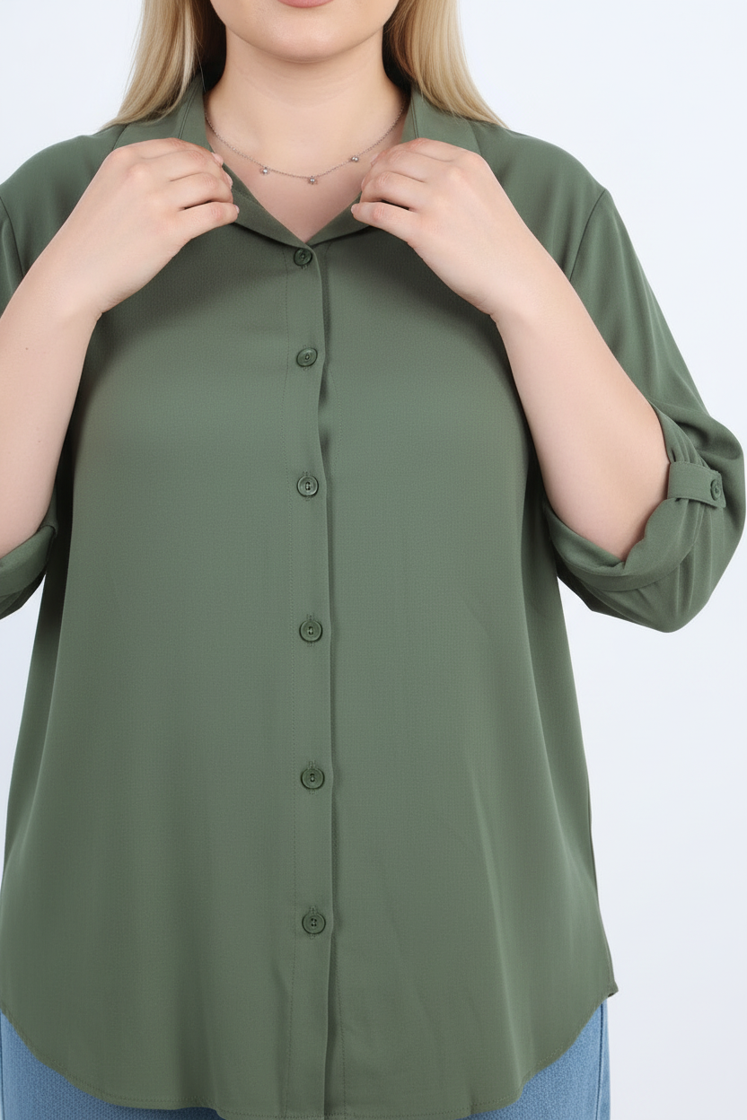 Serene Büyük Beden Kol Katlamalı Gömlek Haki