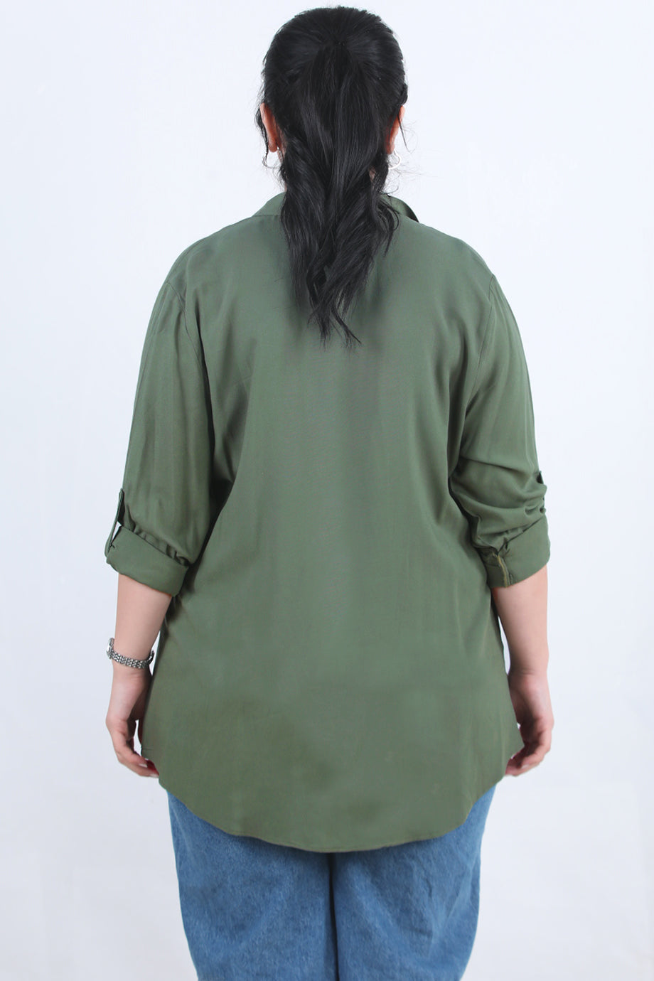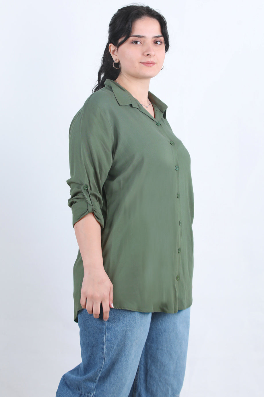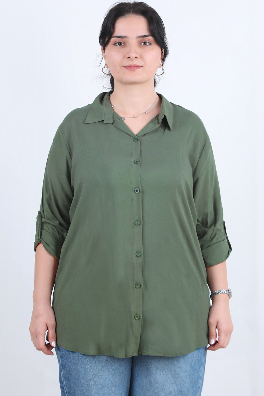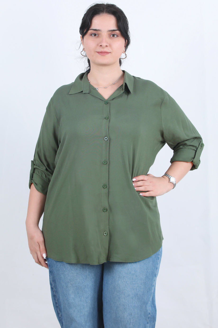 Serene Büyük Beden Kol Katlamalı Gömlek Haki
