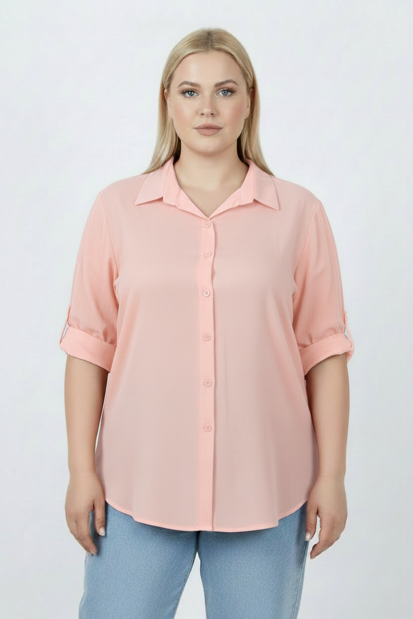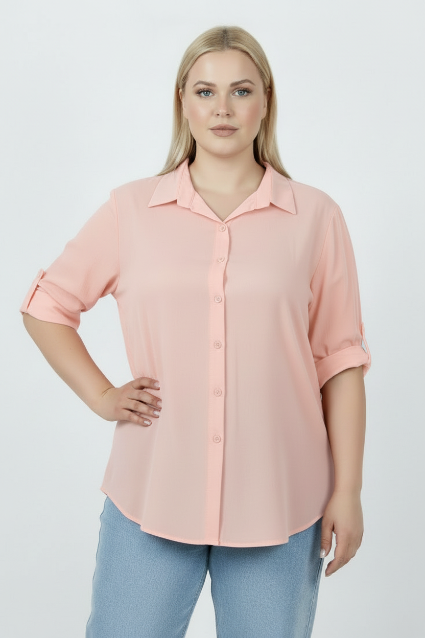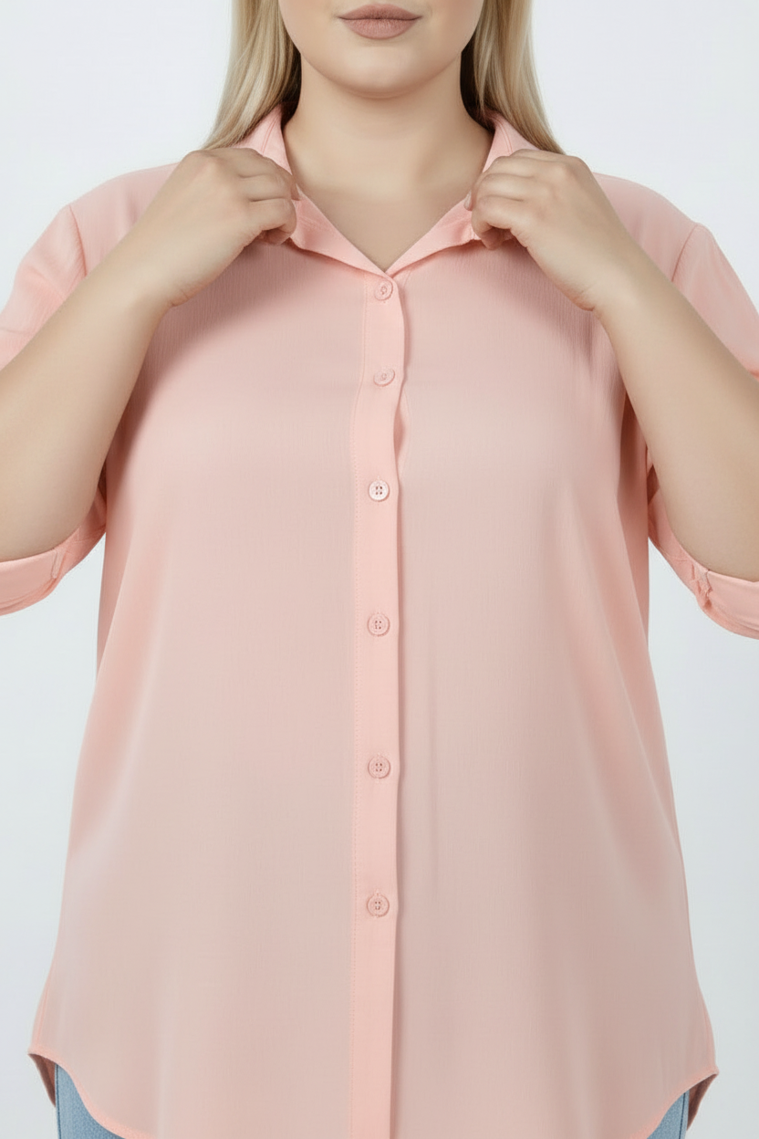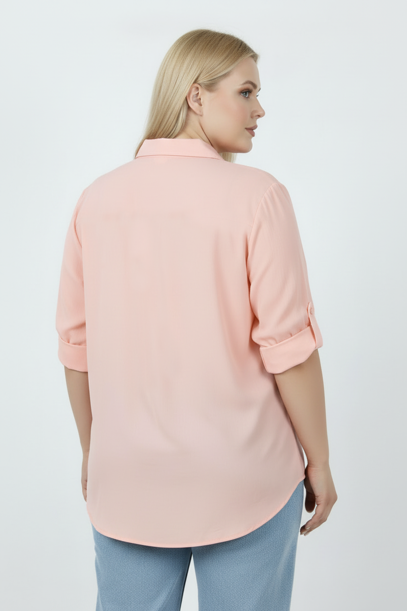 Serene Büyük Beden Kol Katlamalı Gömlek Pudra