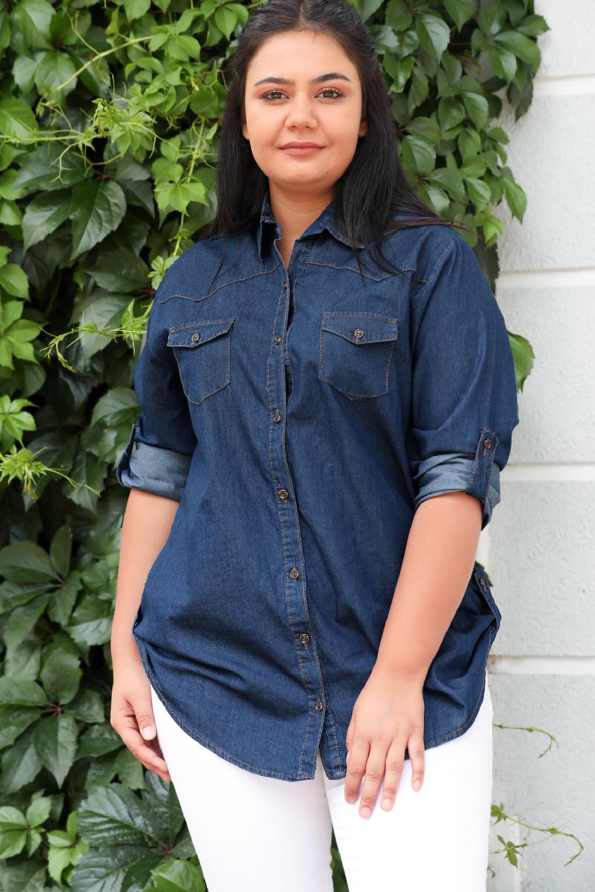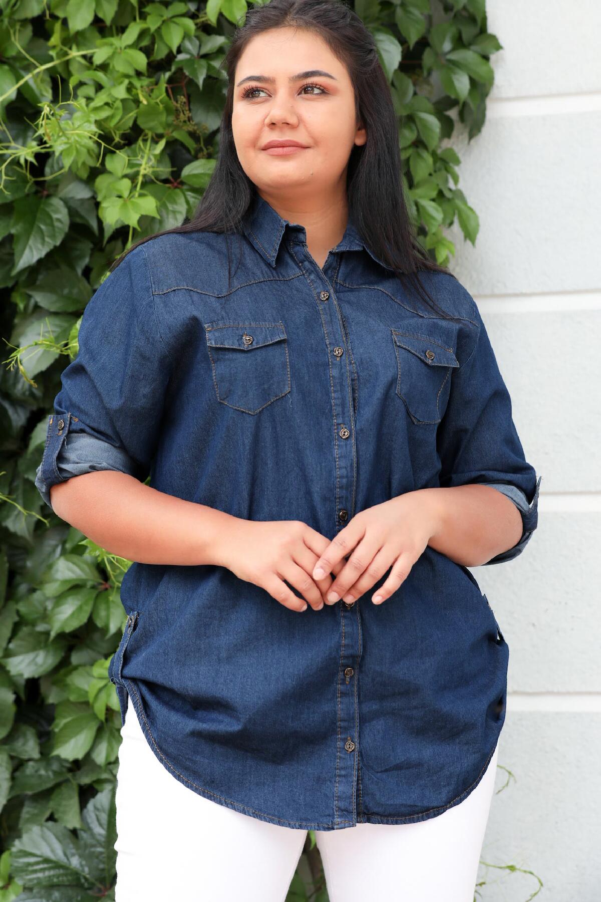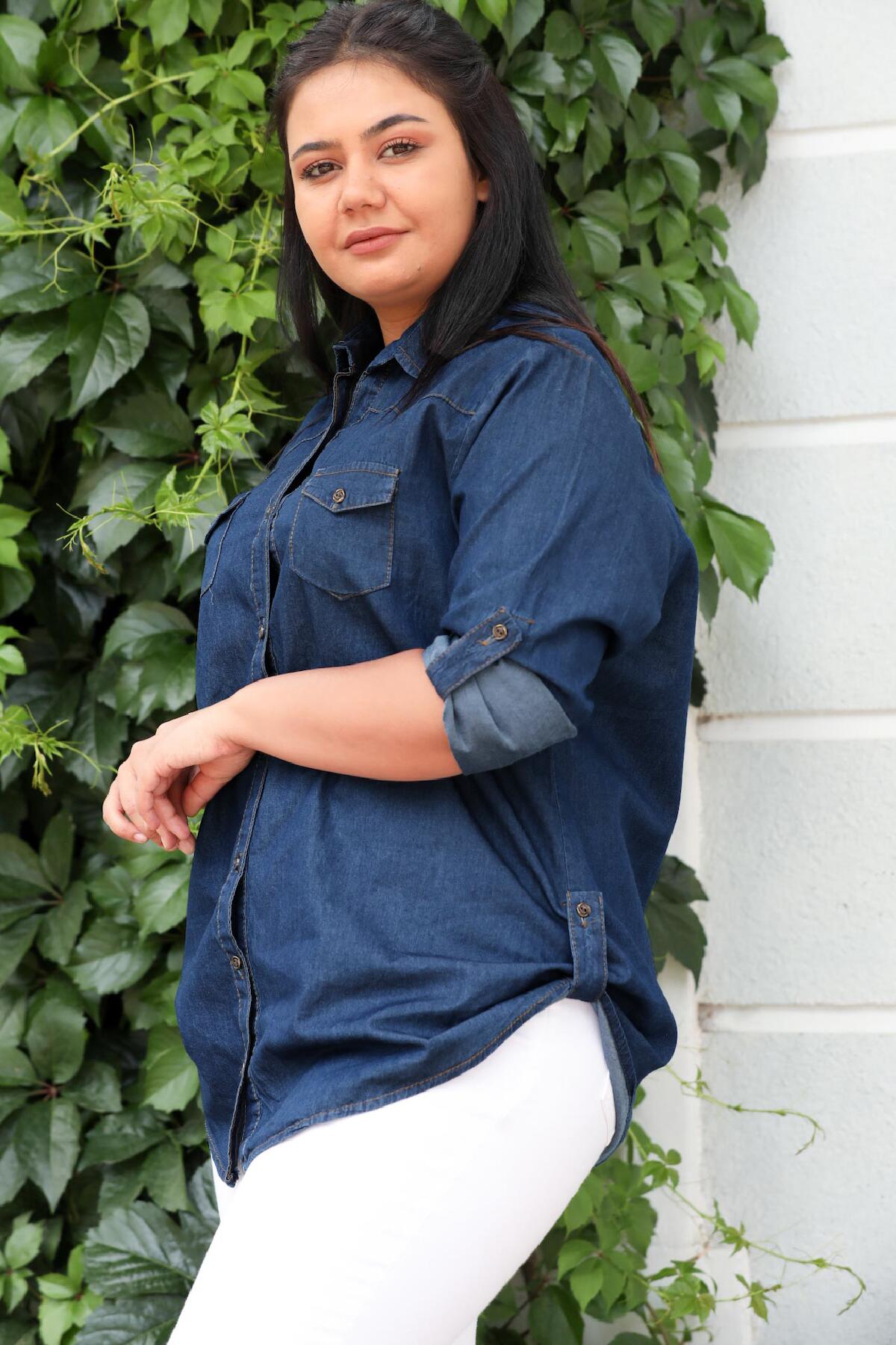 Büyük Beden Kol Katlamalı Kot Gömlek
