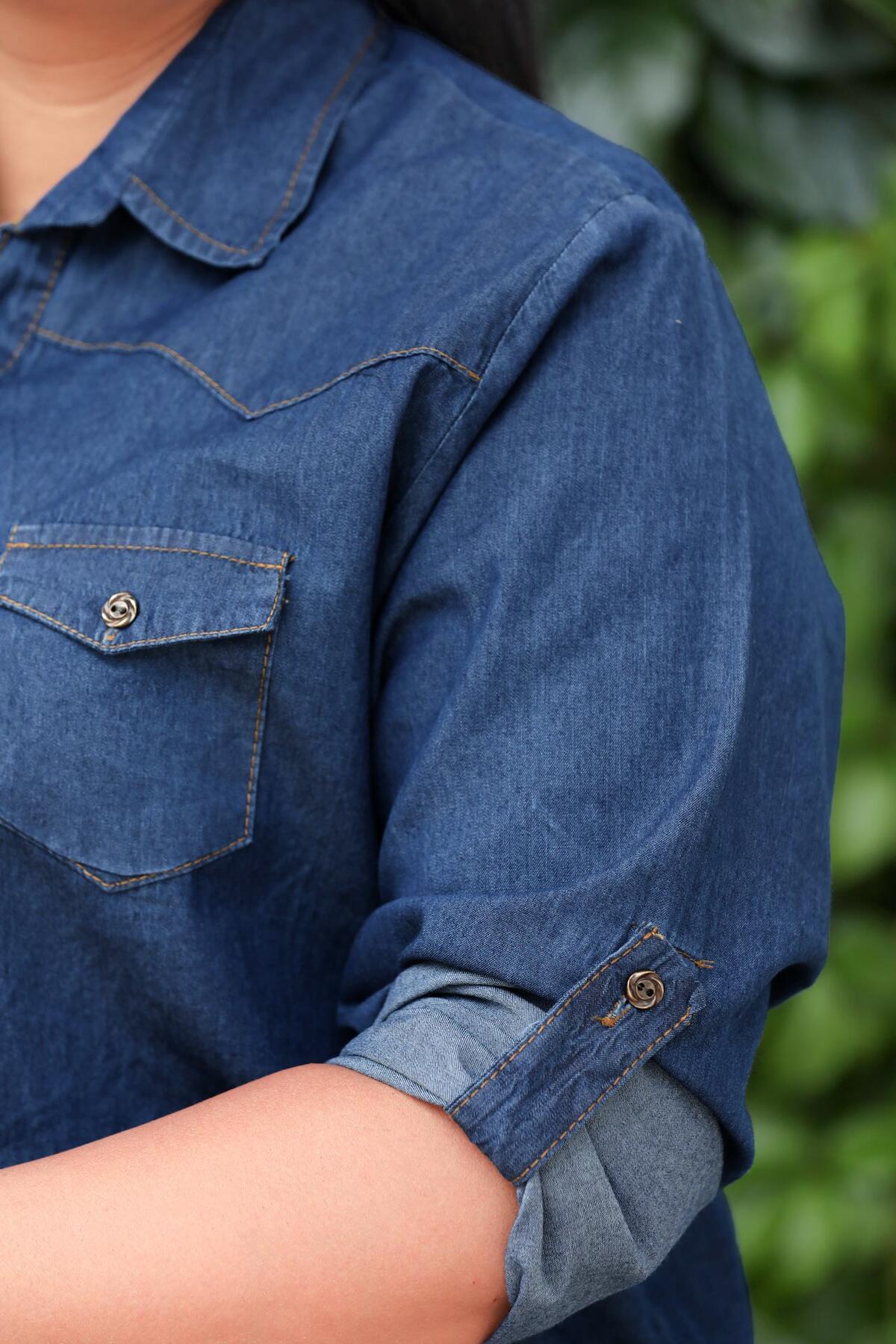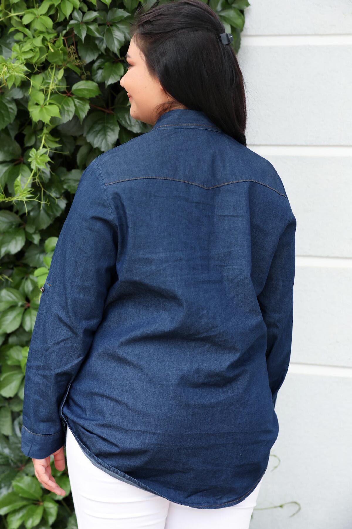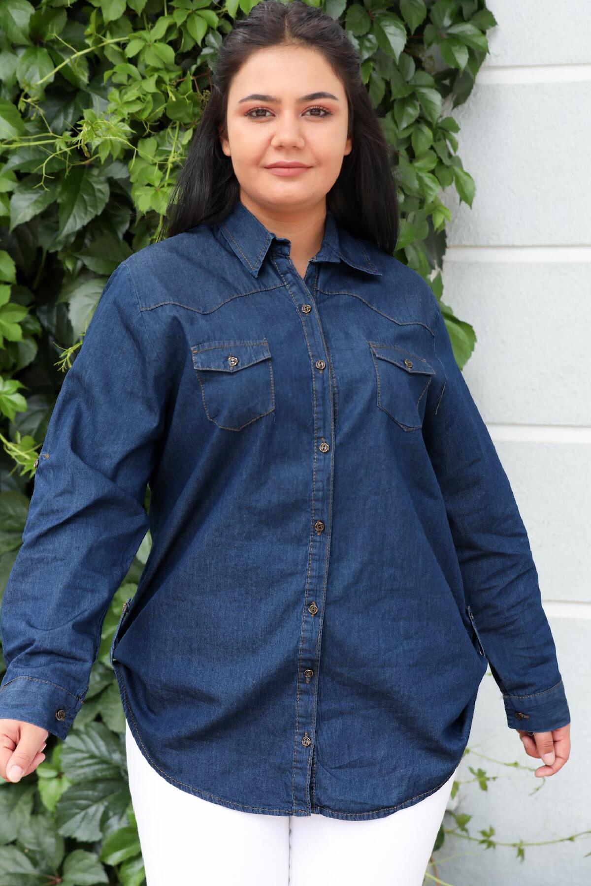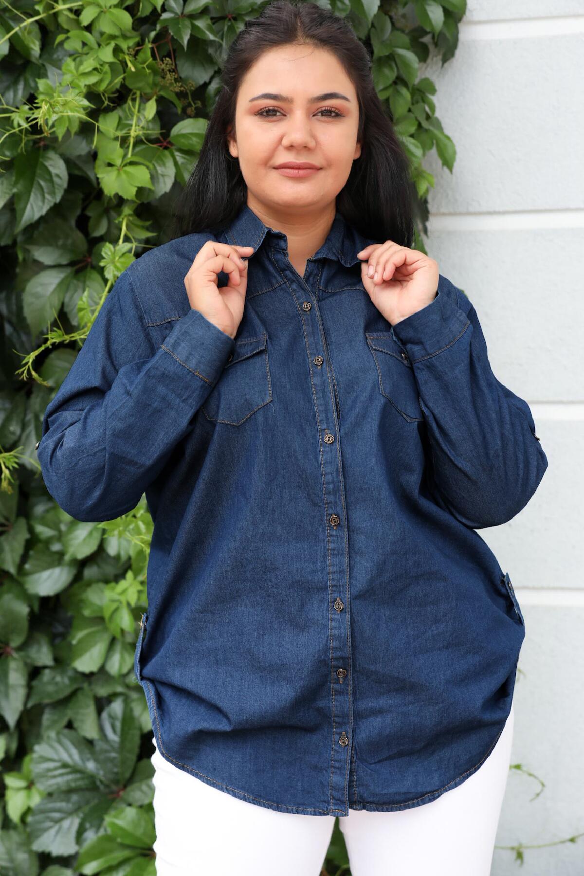 Büyük Beden Kol Katlamalı Kot Gömlek
