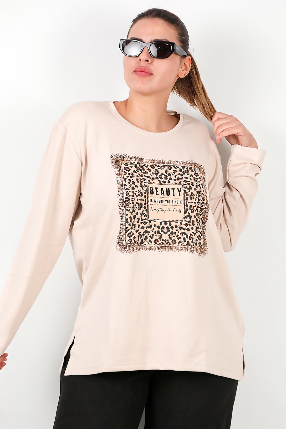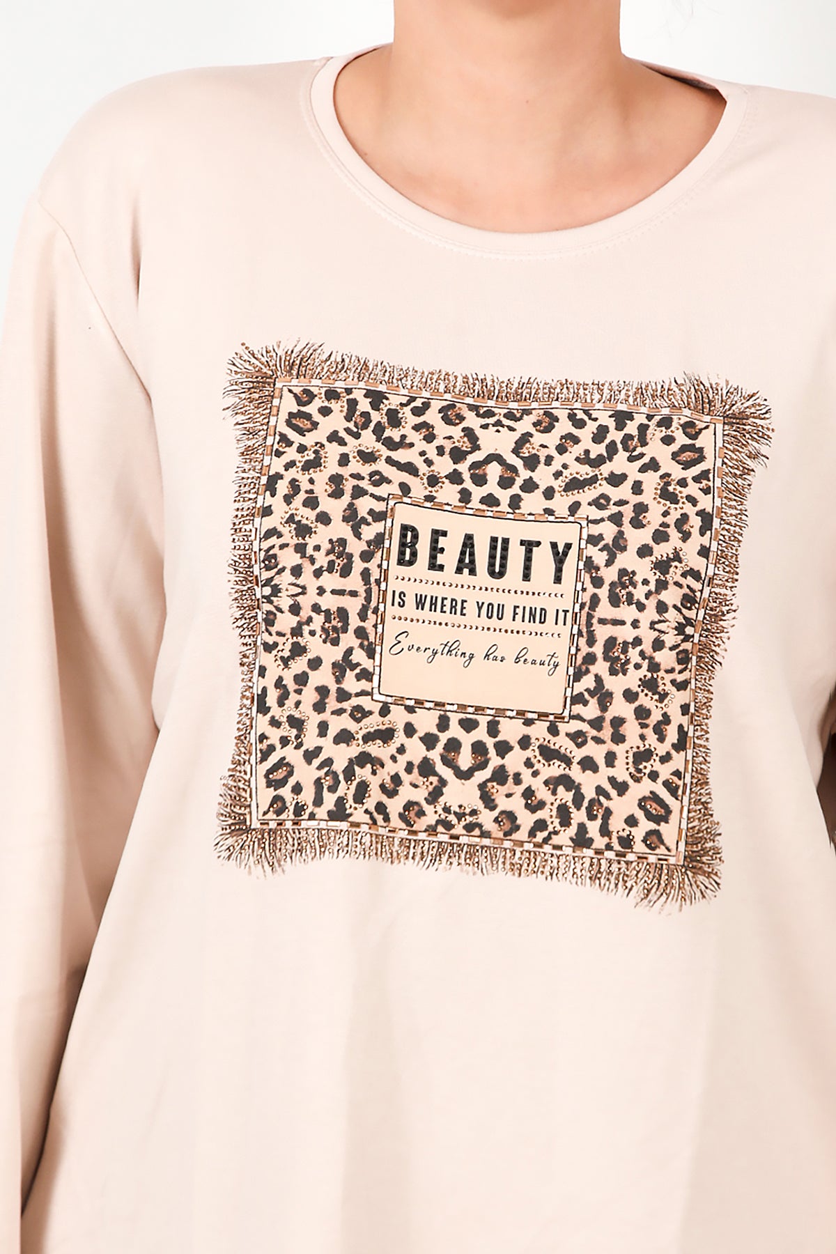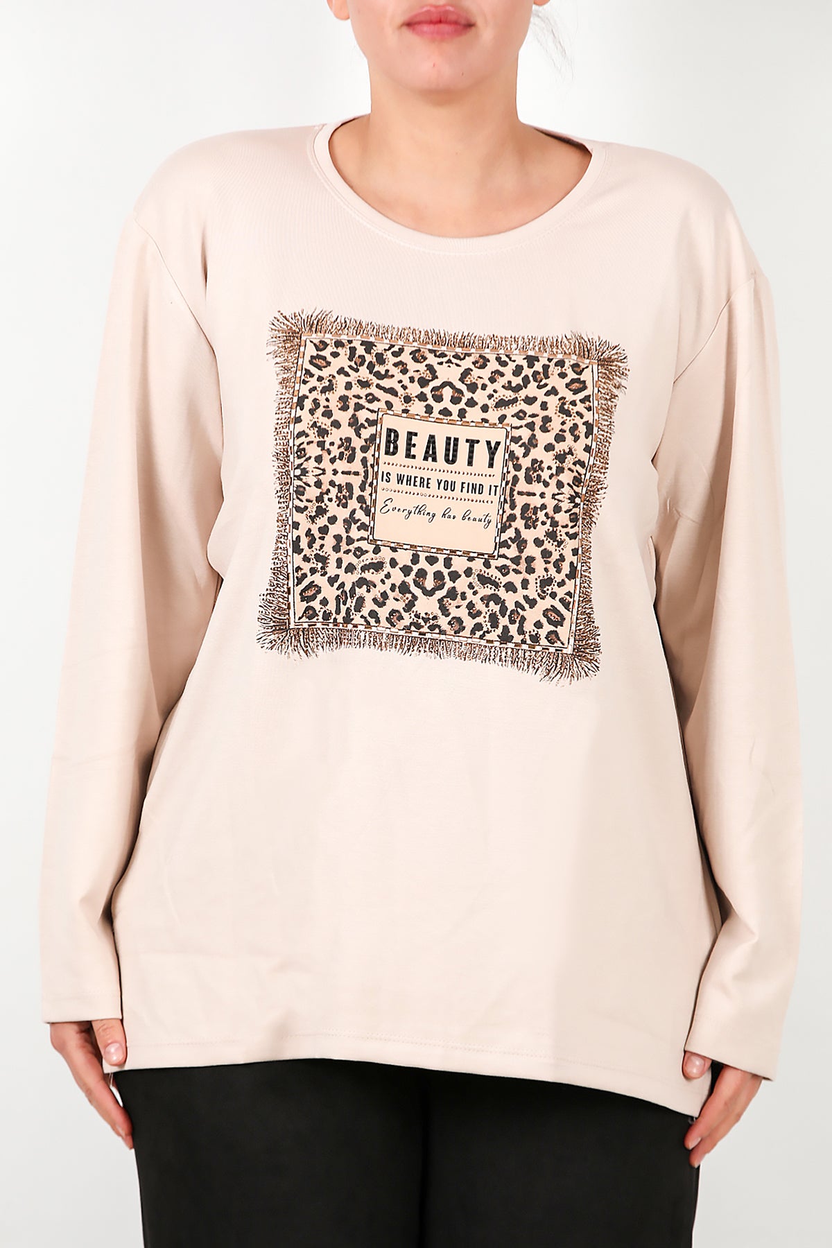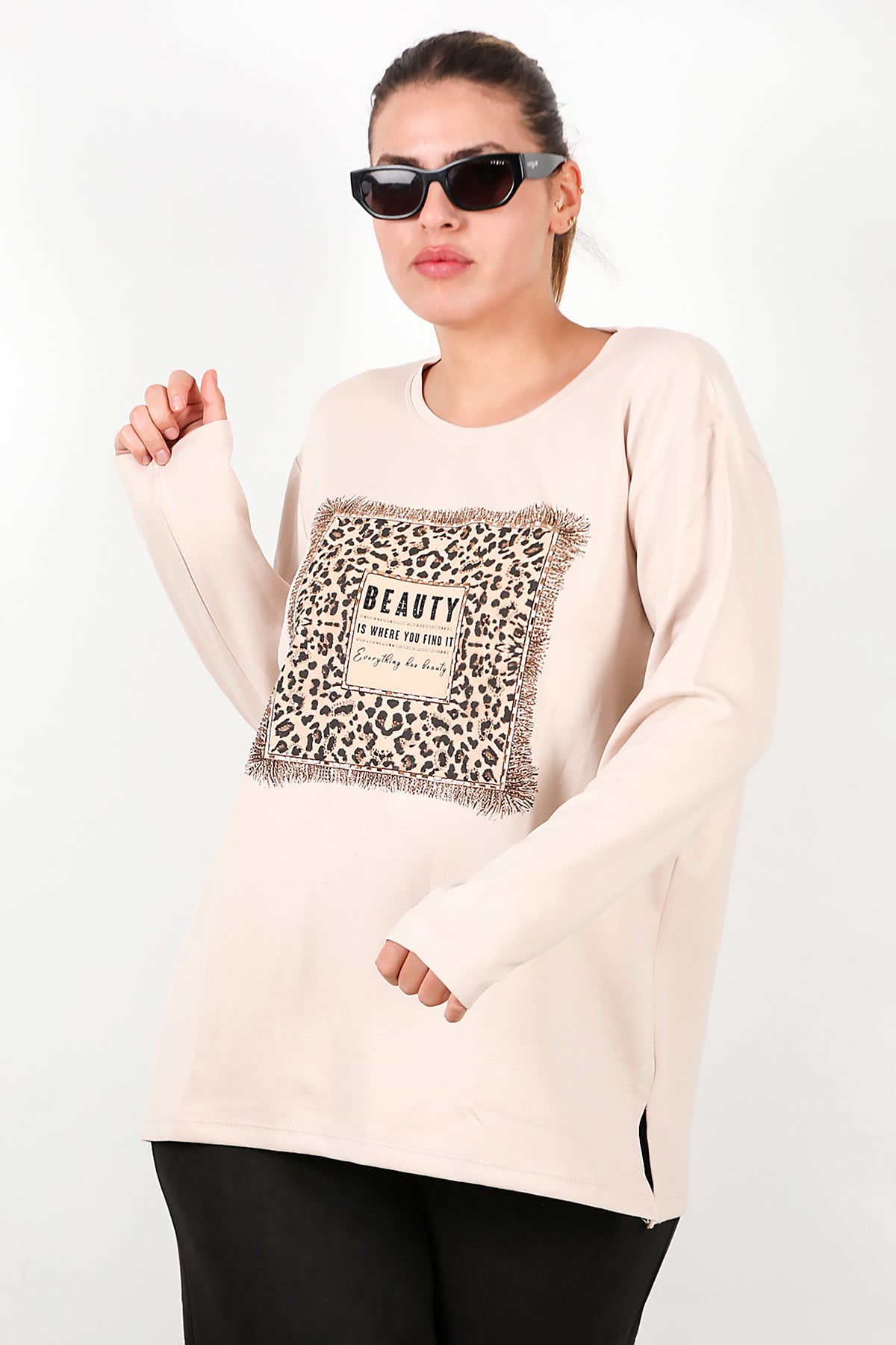 Büyük Beden Leopar Taş İşlemeli Bluz Taş