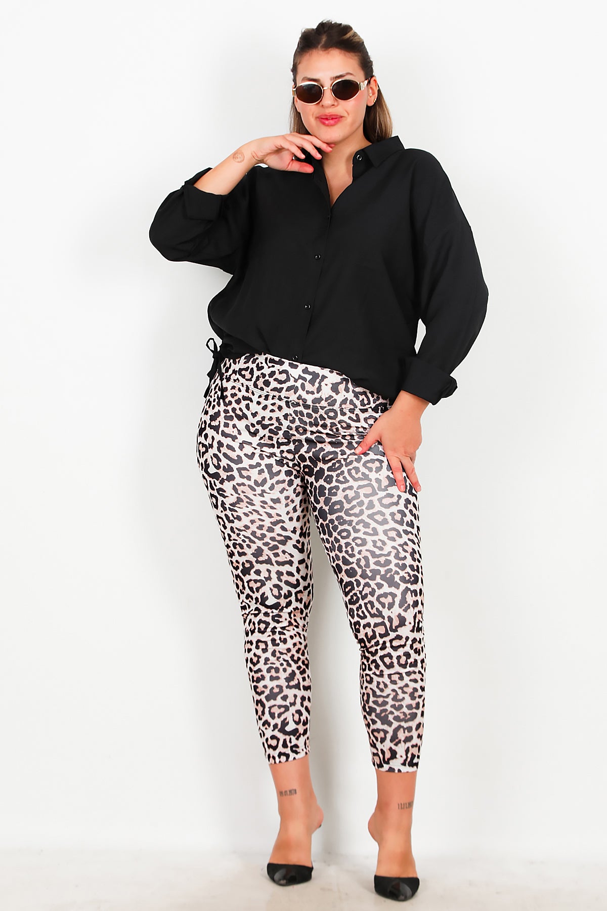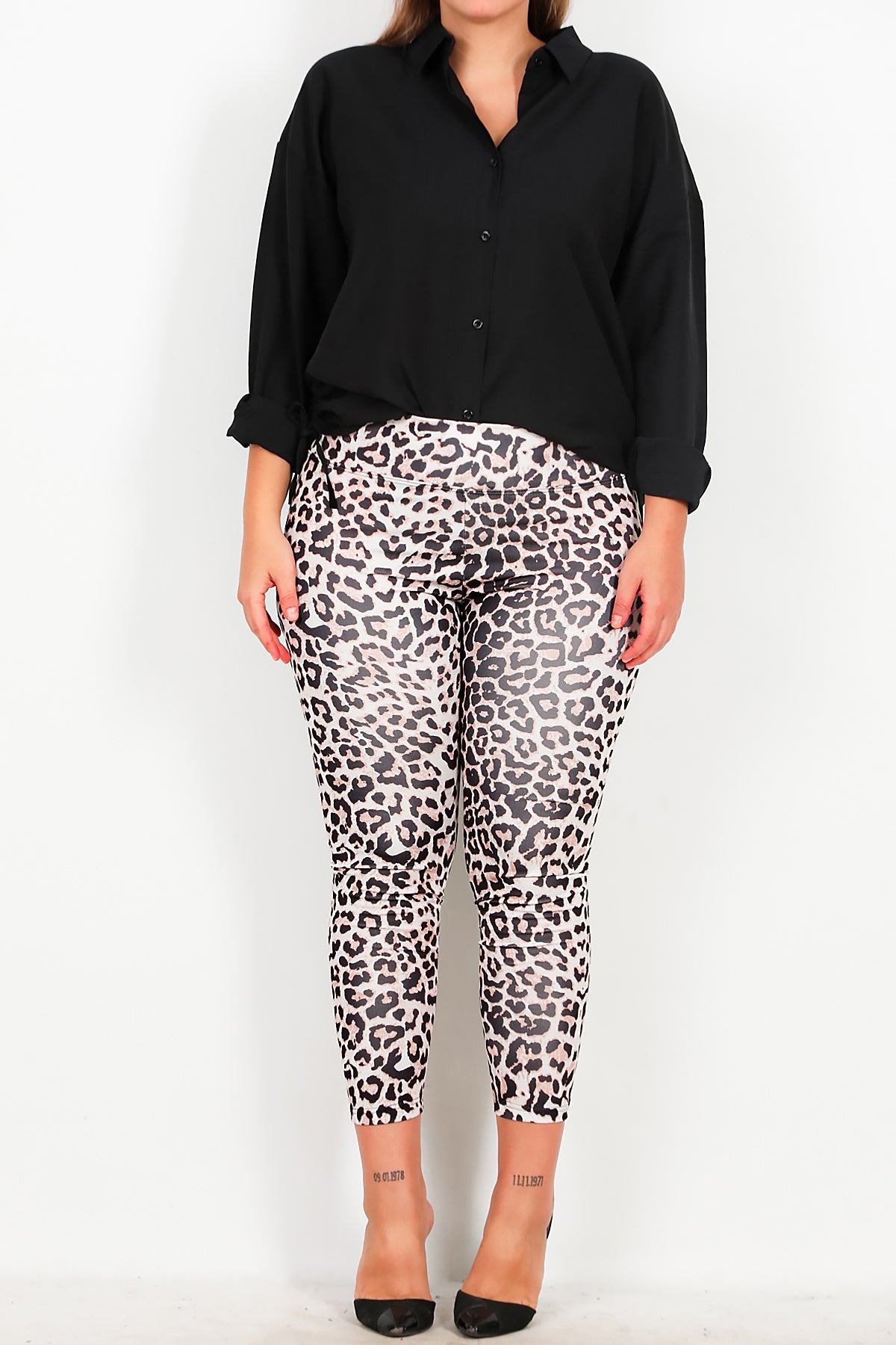 Büyük Beden Leoparlı Tayt Krem