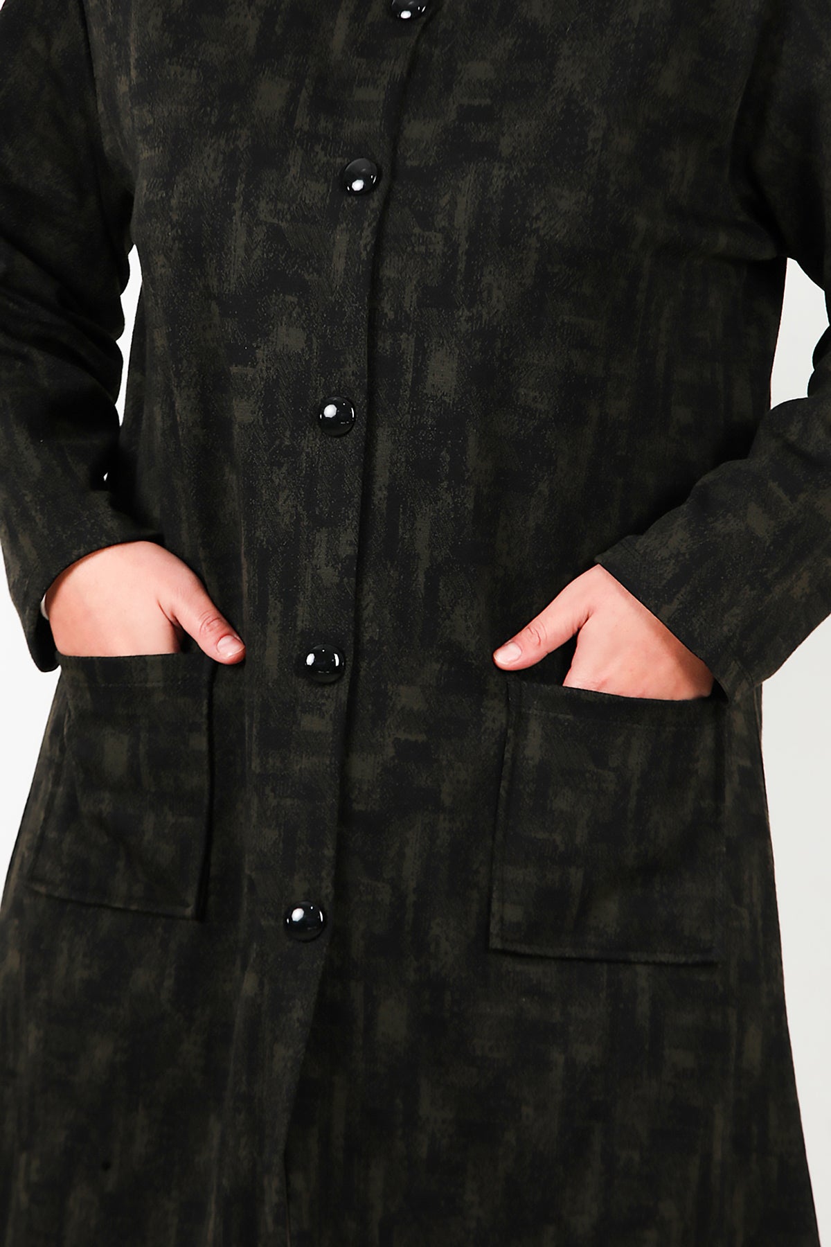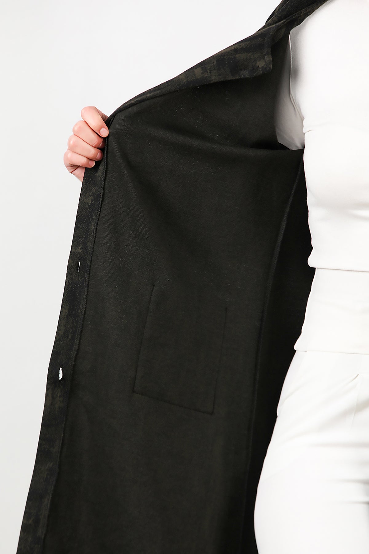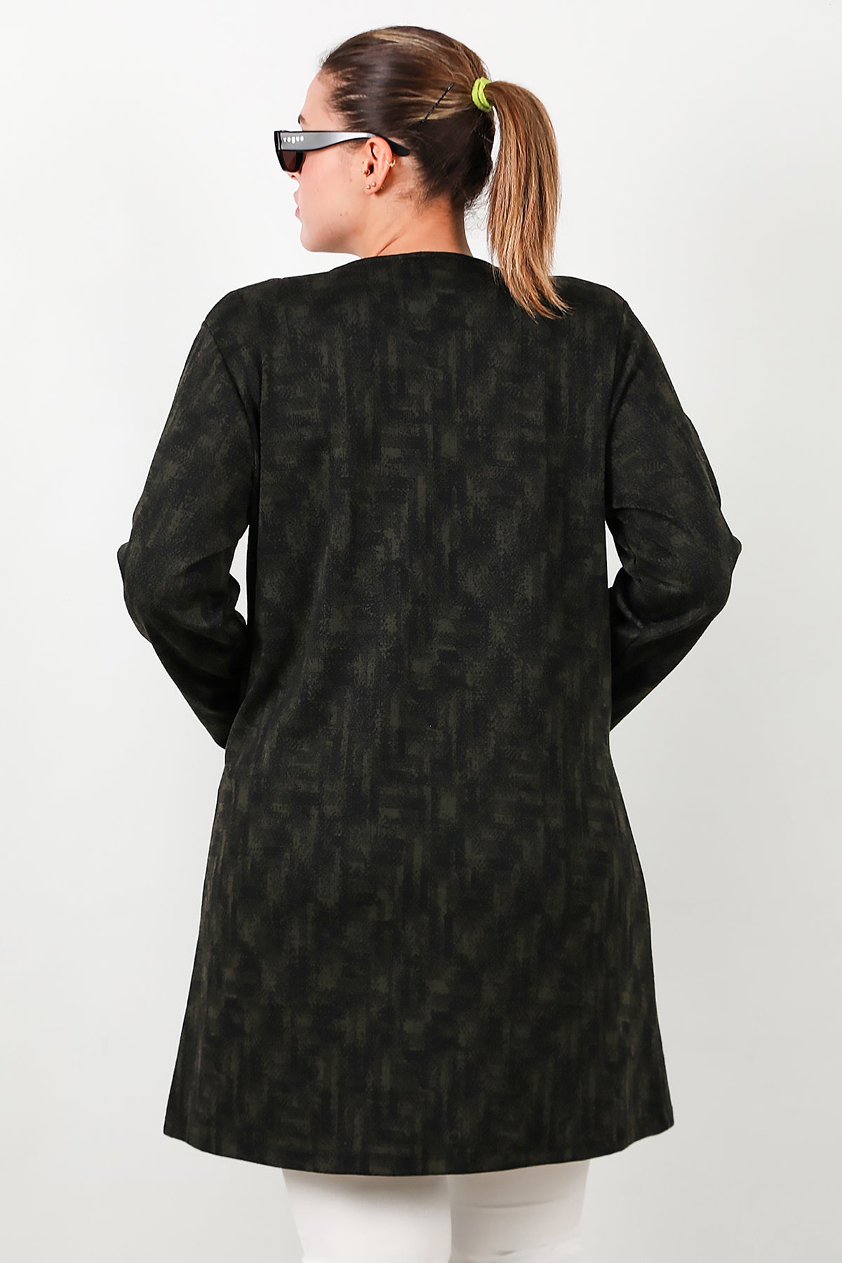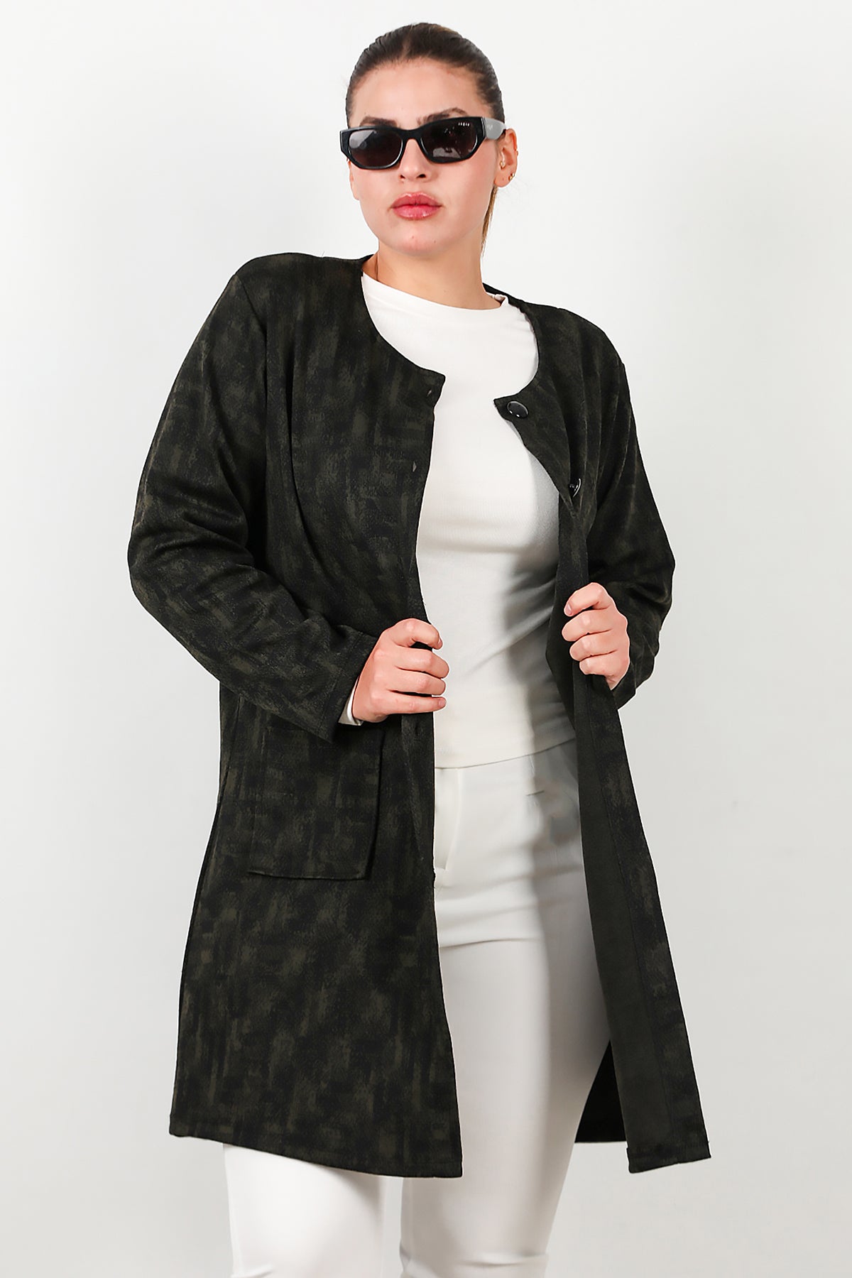 Büyük Beden Likralı Önü Düğmeli Cepli Ceket Haki