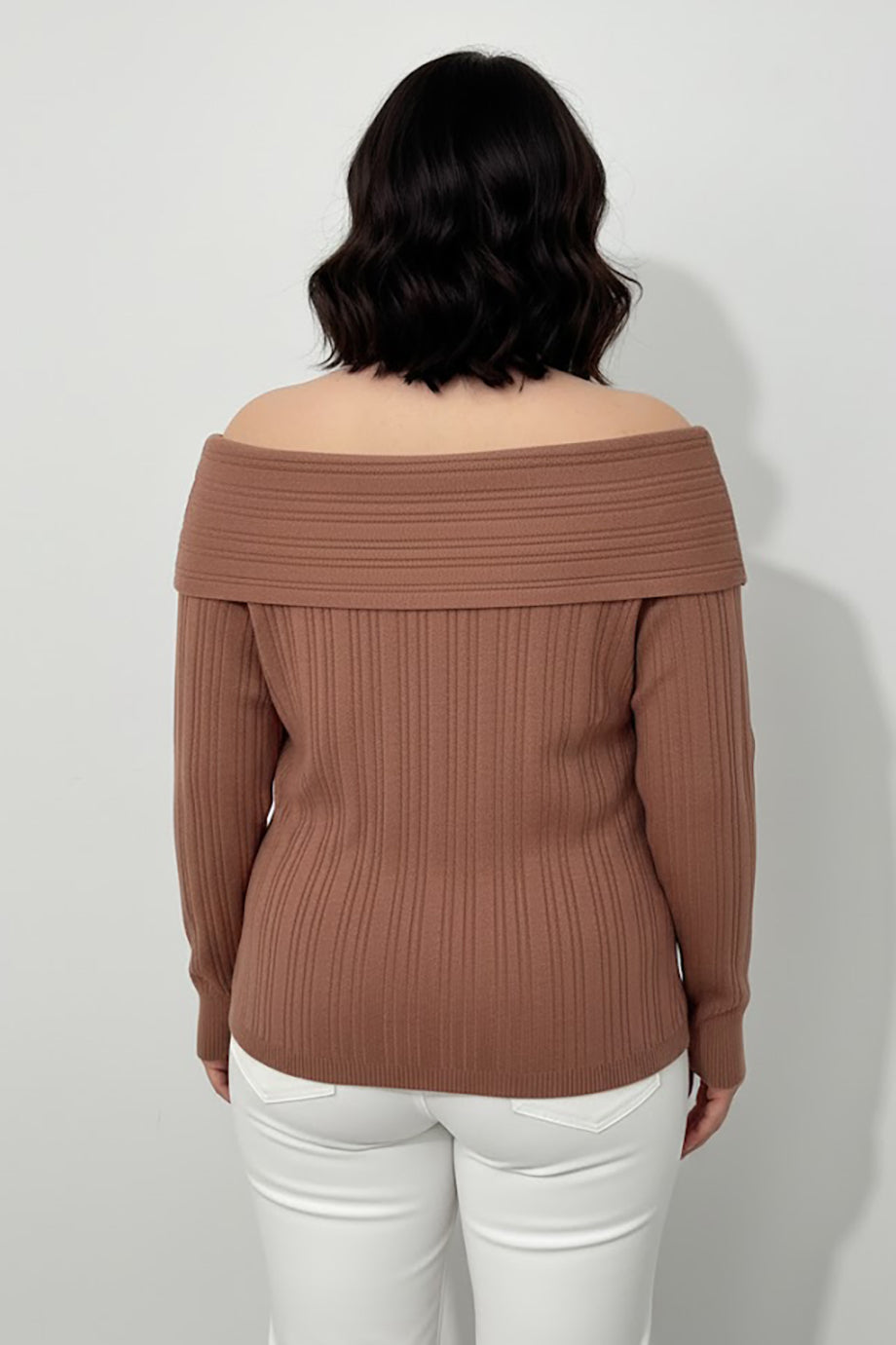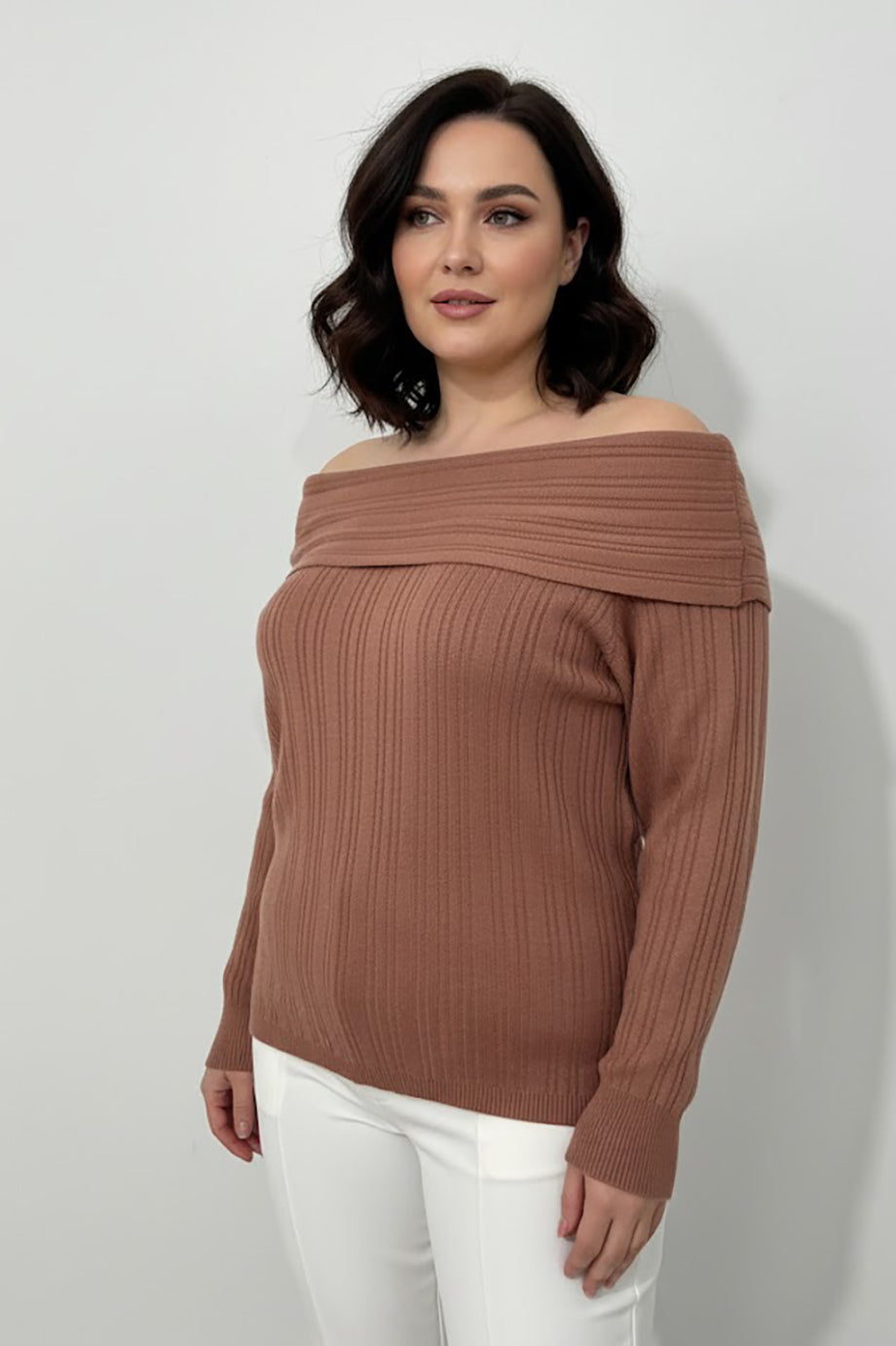 Büyük Beden Madonna Yaka Triko Bluz Gül Kurusu