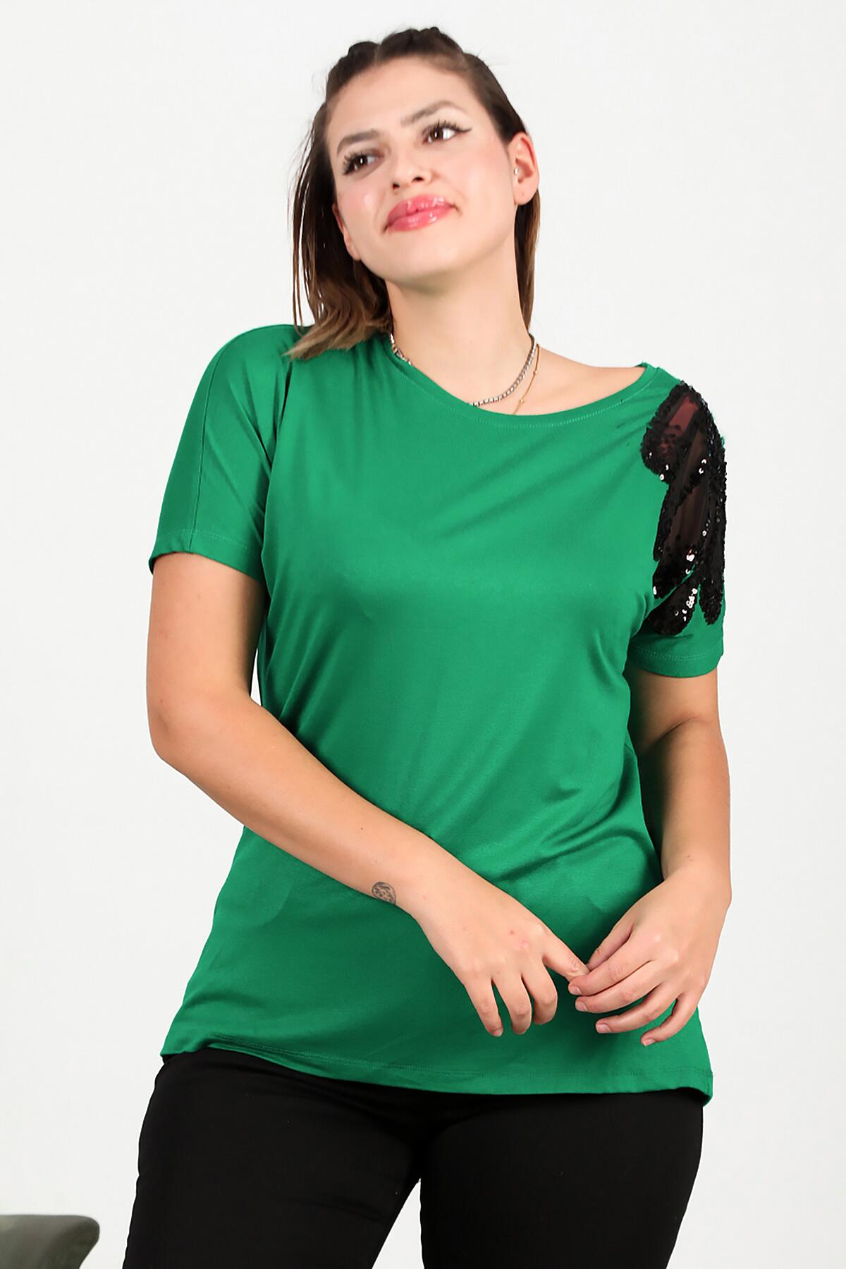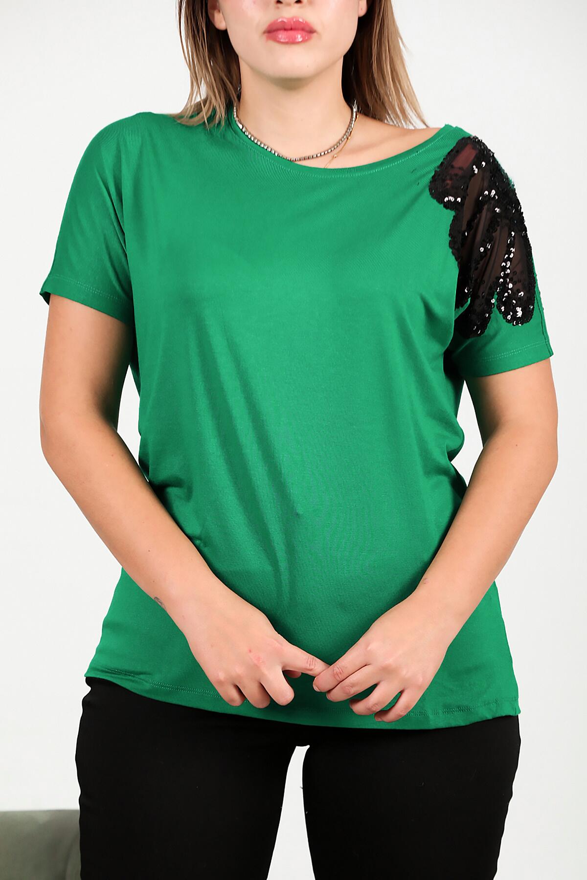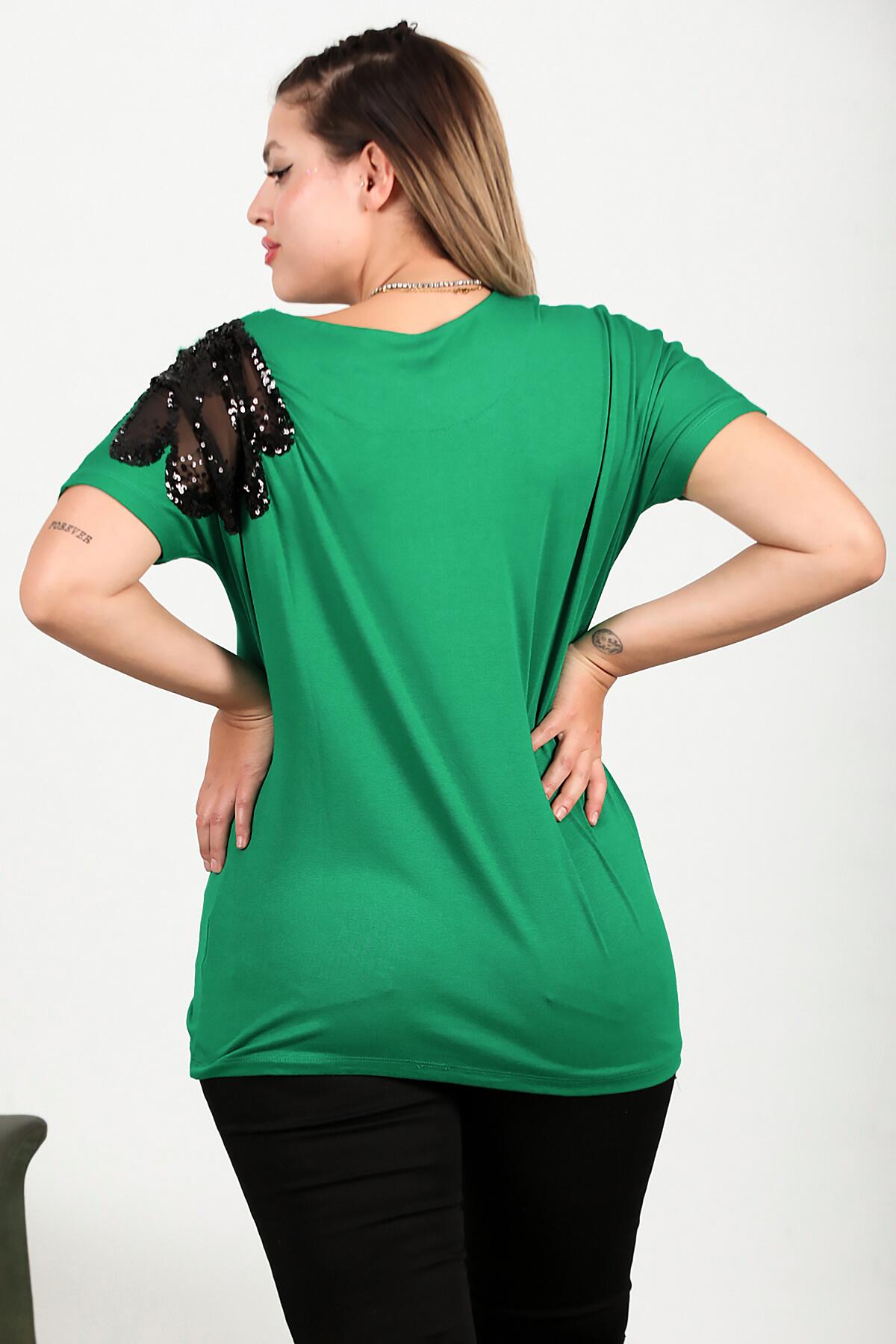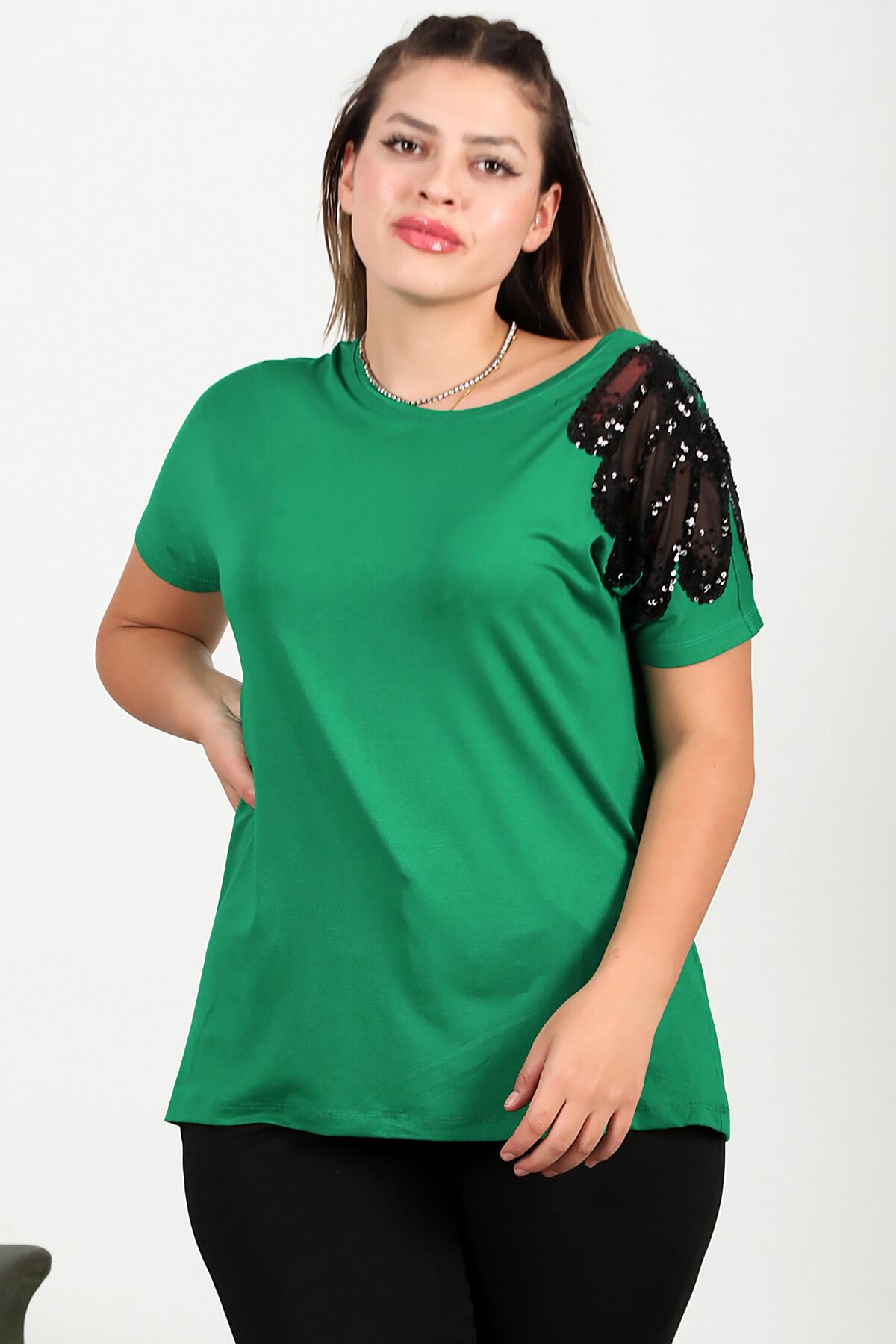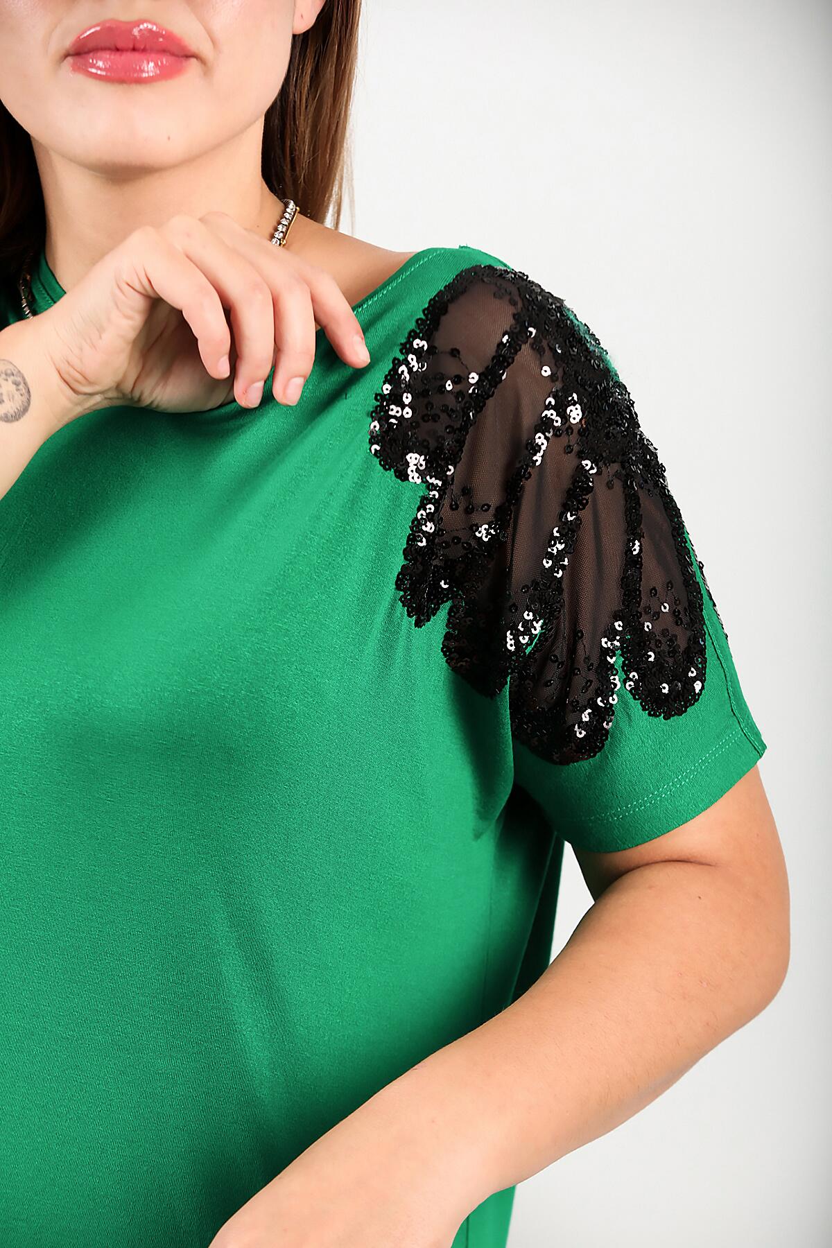 Büyük Beden Omuz Nakışlı Bluz Yeşil