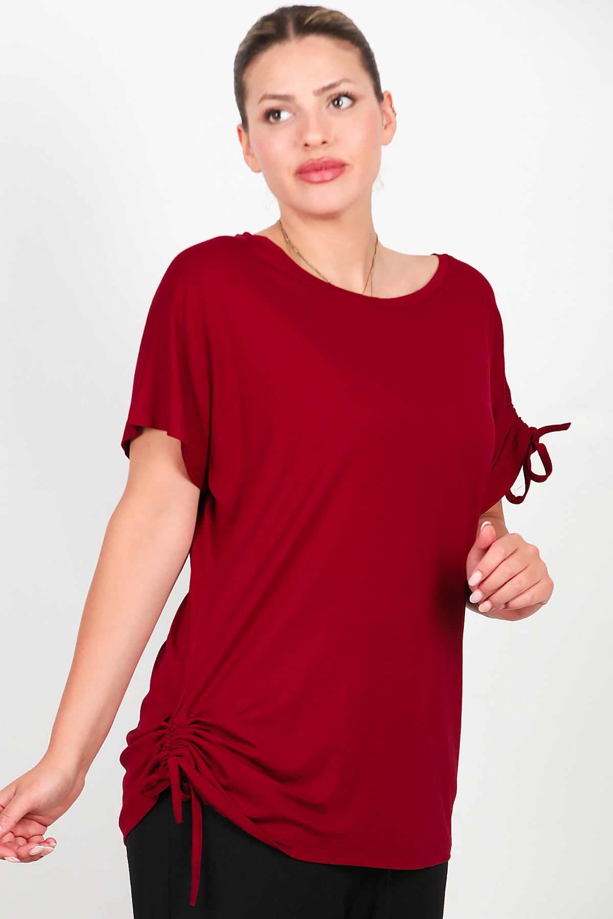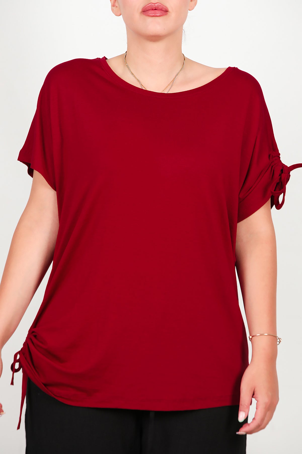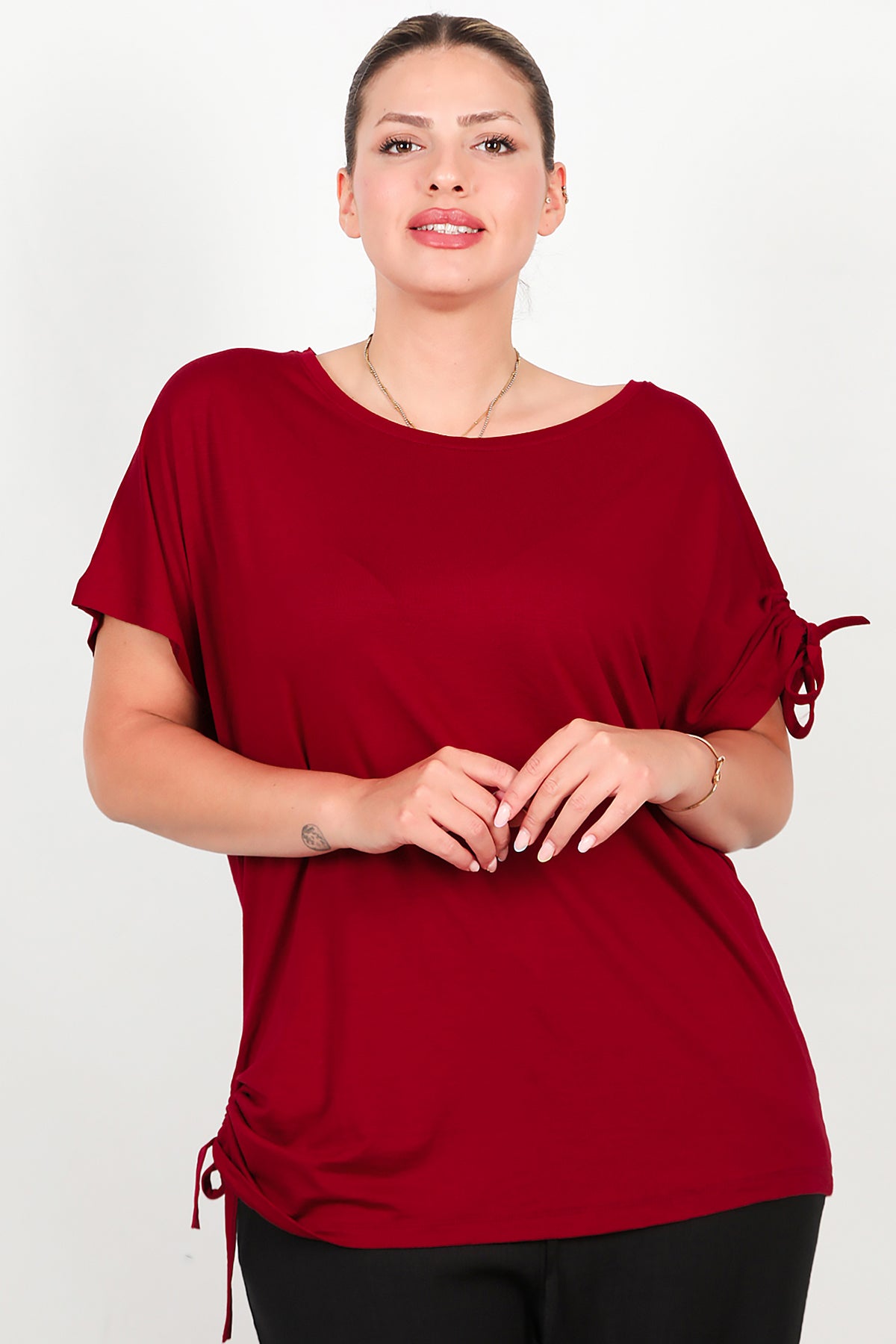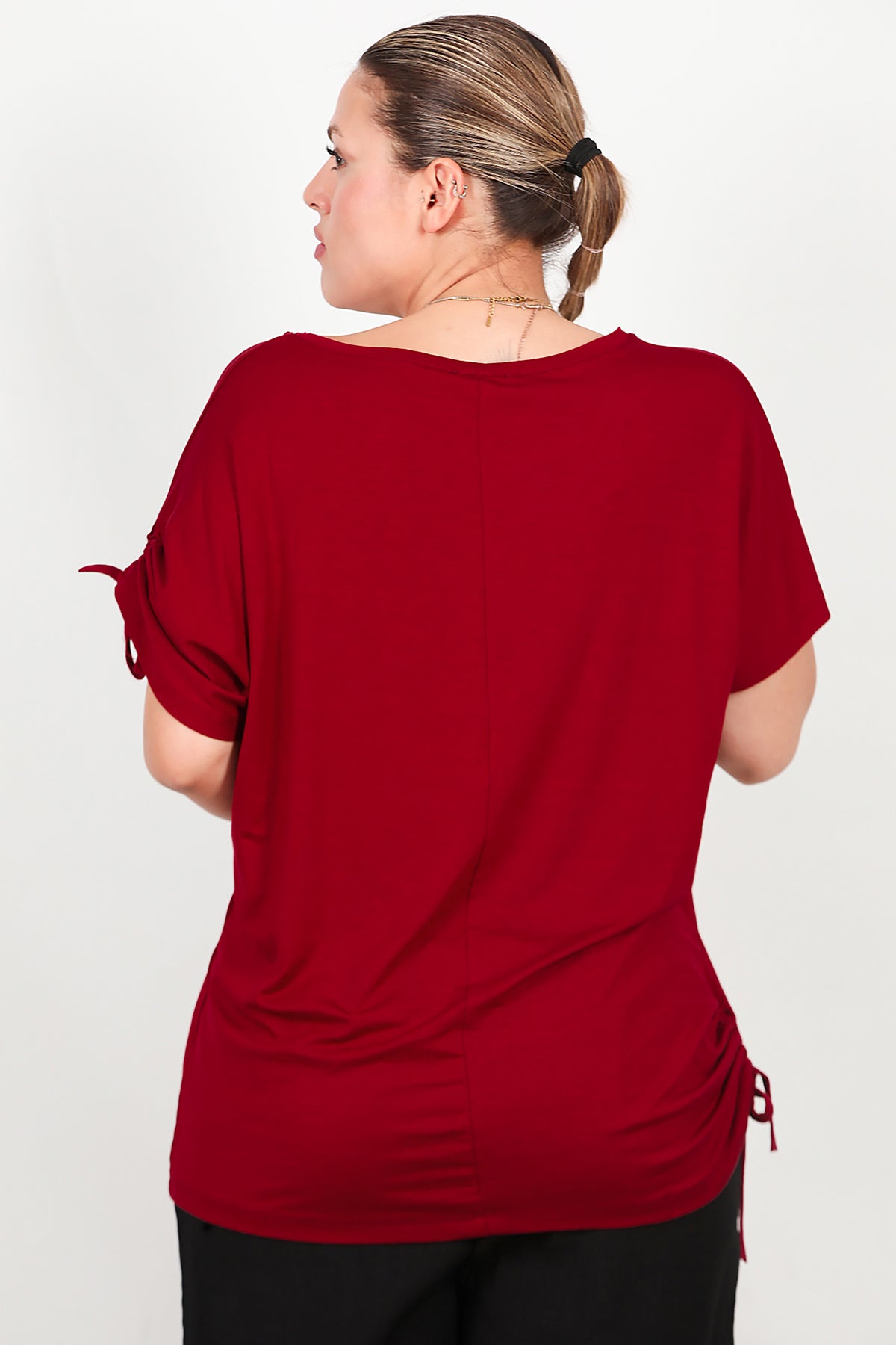 Büyük Beden Omuz Ve Yanı Büzgülü Bluz Bordo
