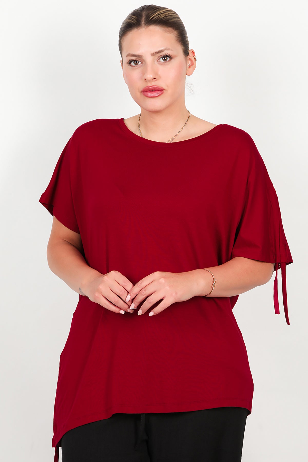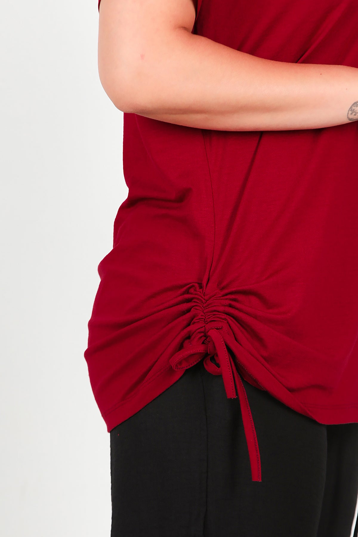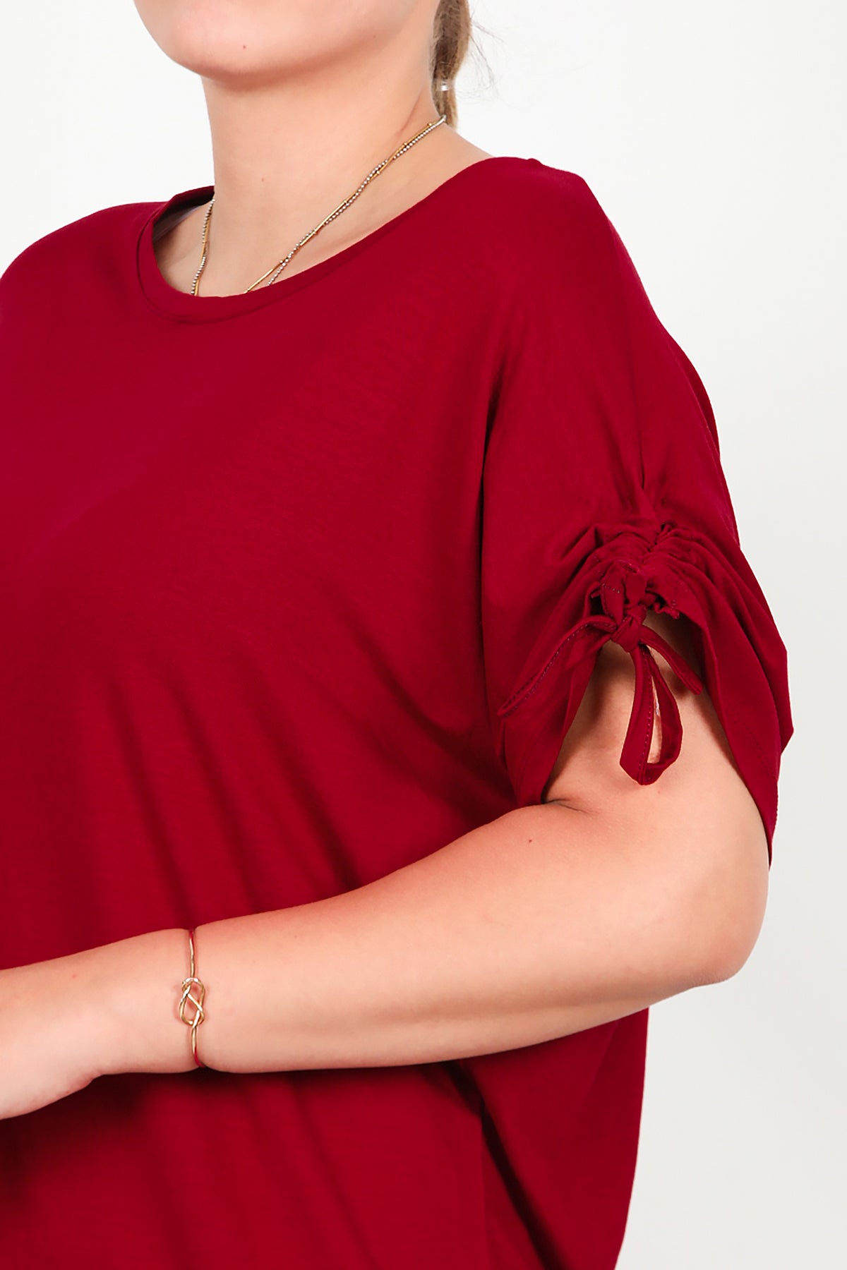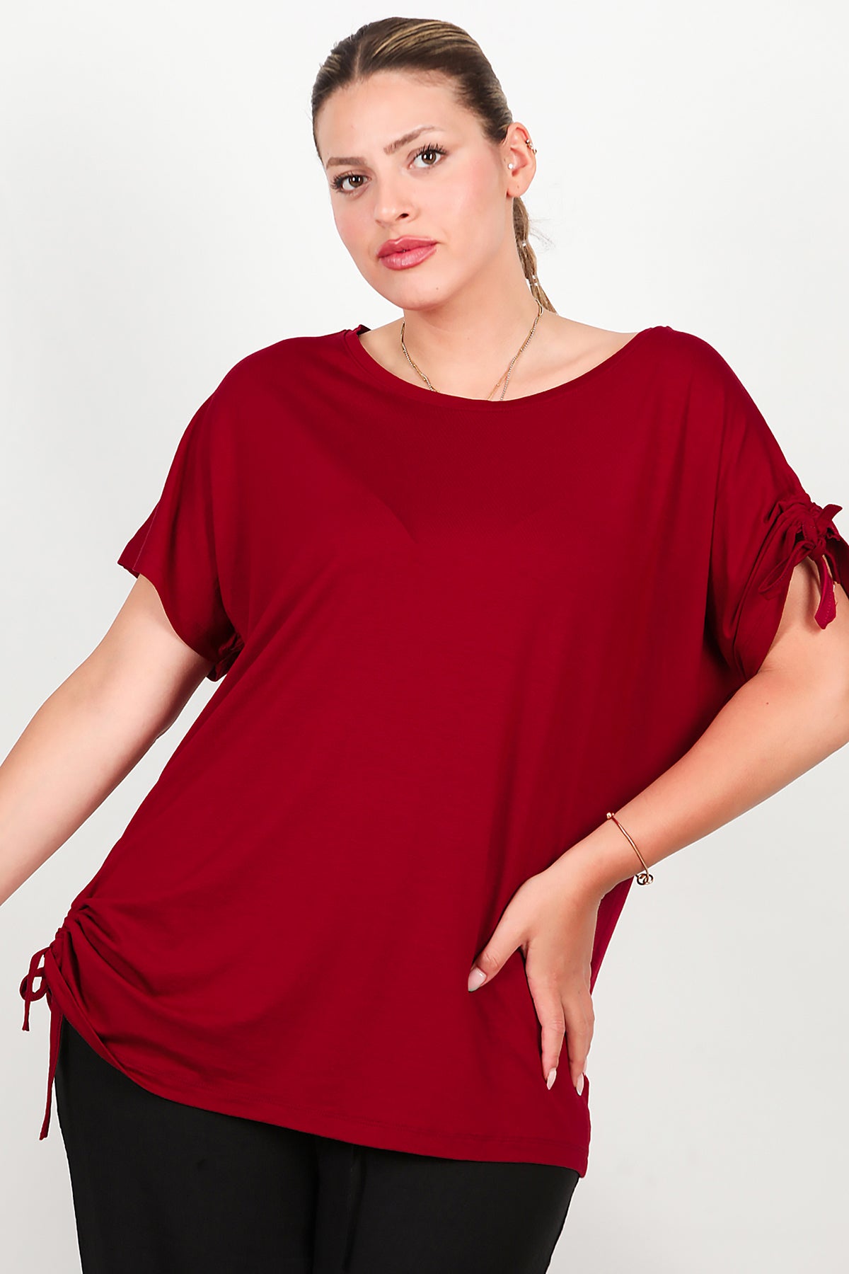 Büyük Beden Omuz Ve Yanı Büzgülü Bluz Bordo